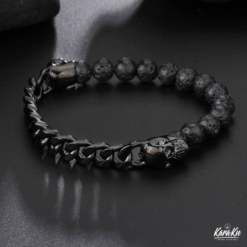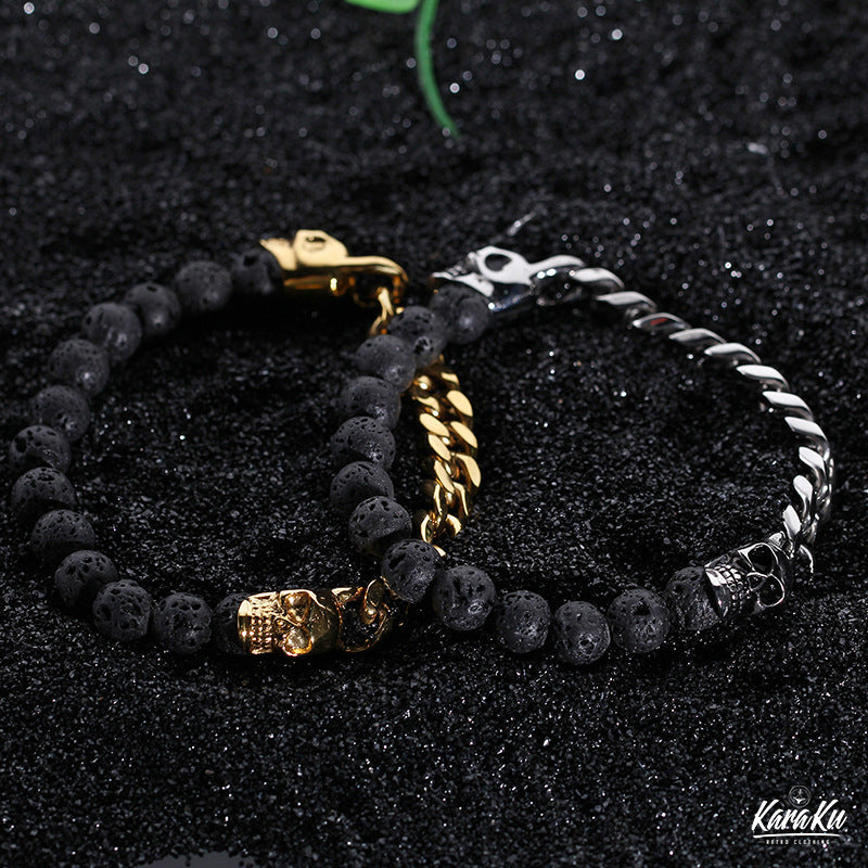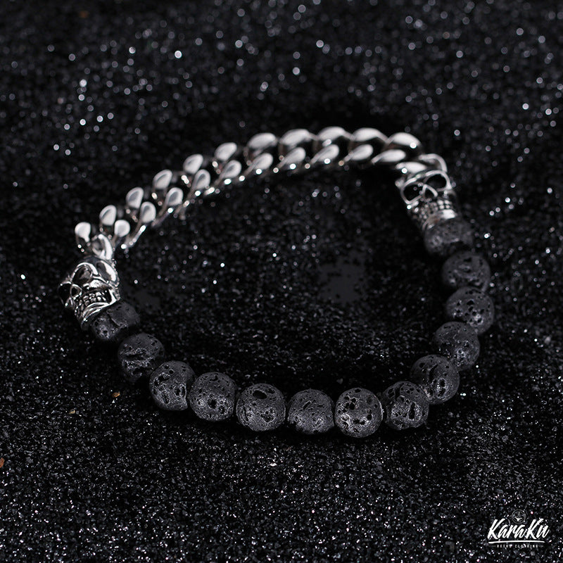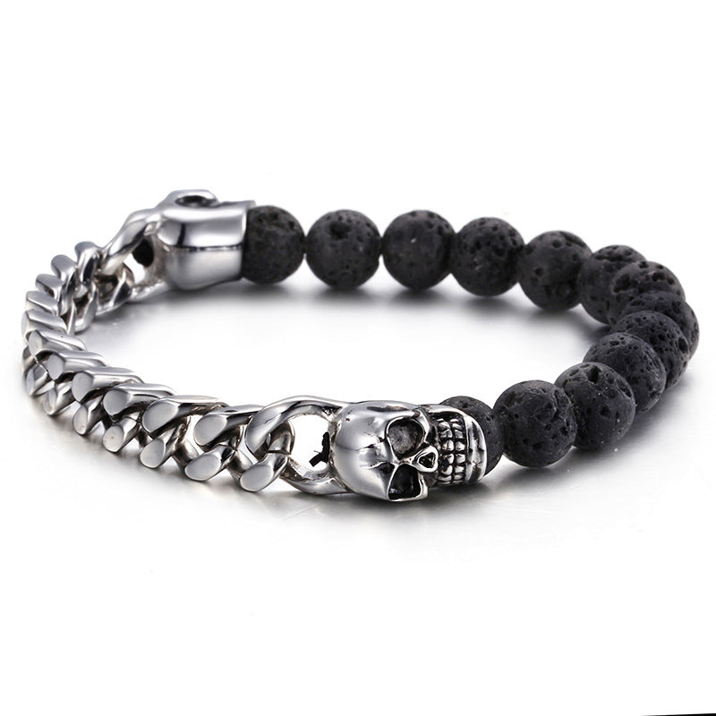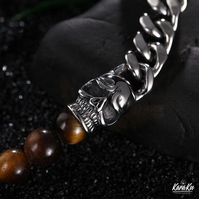 The skull and natural stone beads are connected to create a solid, dark, gothic style that gives it a unique feel.