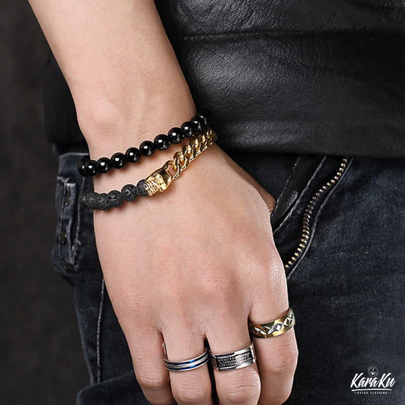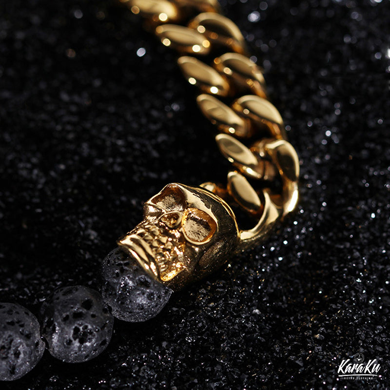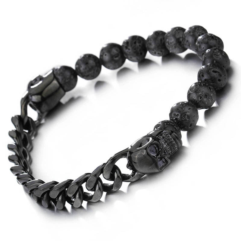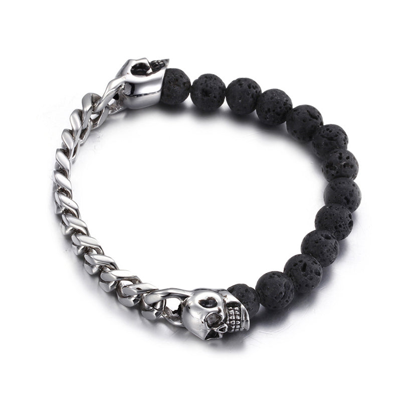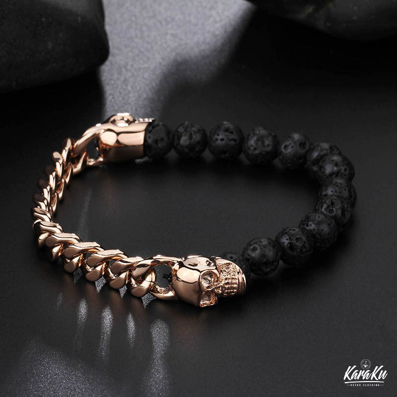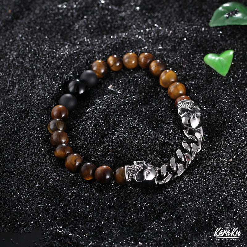The skull and natural stone beads are connected to create a solid, dark, gothic style that gives it a unique feel.
