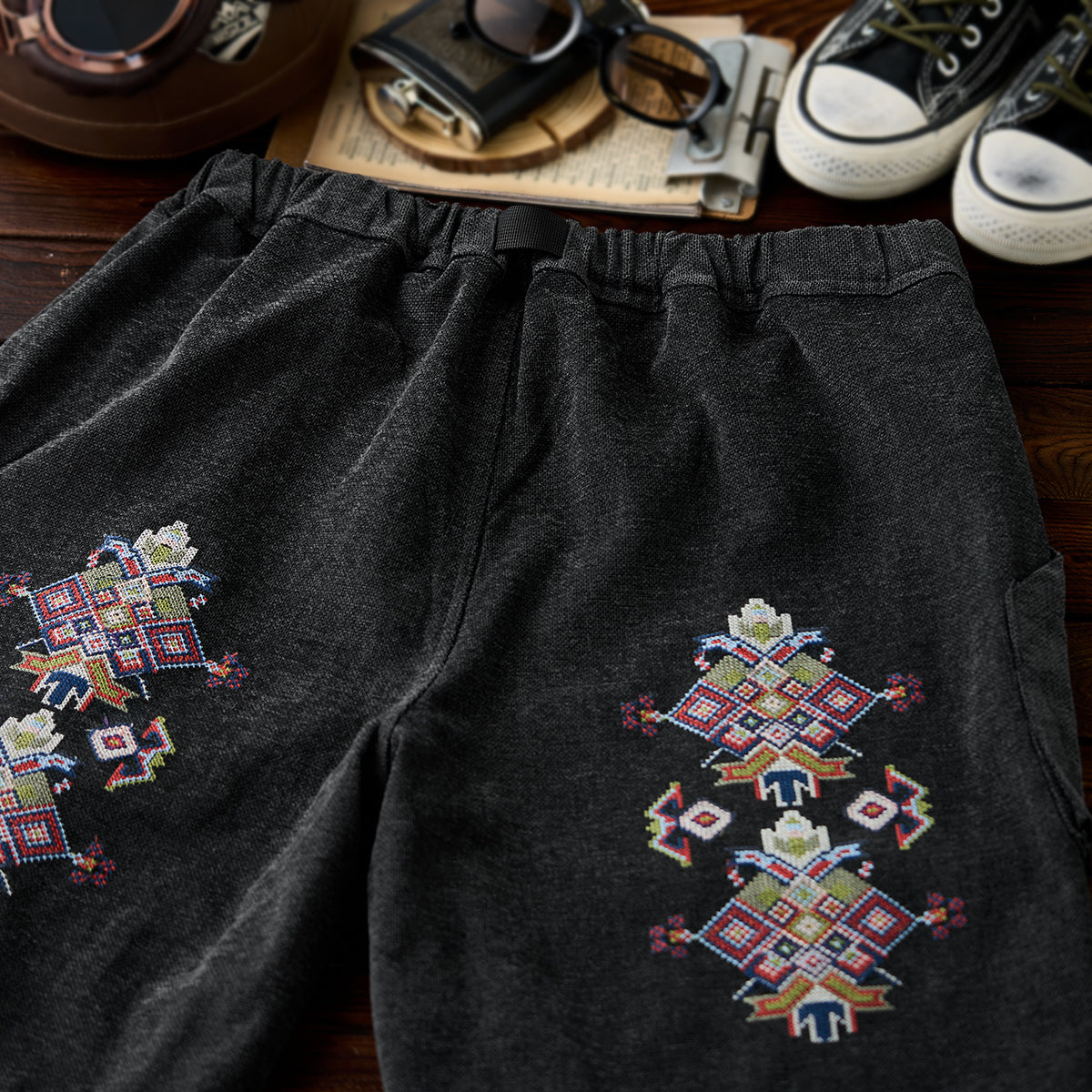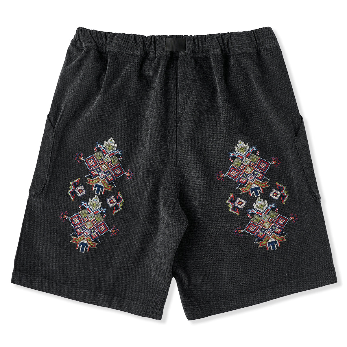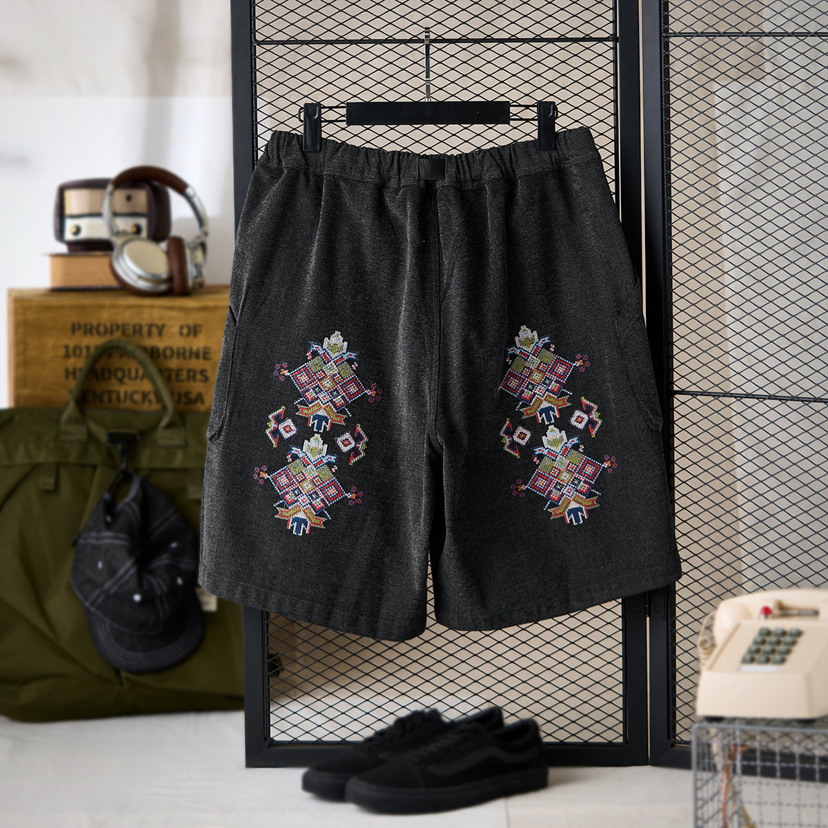 에스닉 자수와 입체 포켓으로 디자인성과 기능성을 갖춘 아이템이며 고무 허리와 조절 가능한 벨트로 편안한 착용감을 제공합니다.