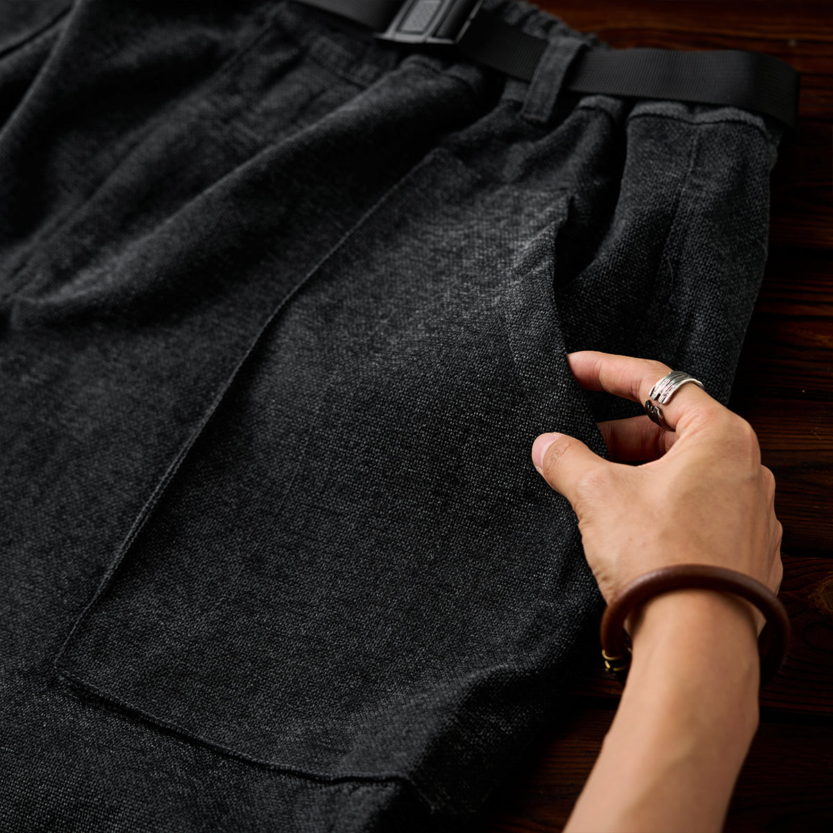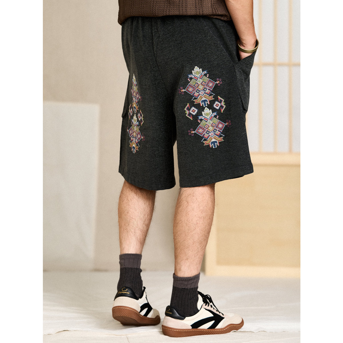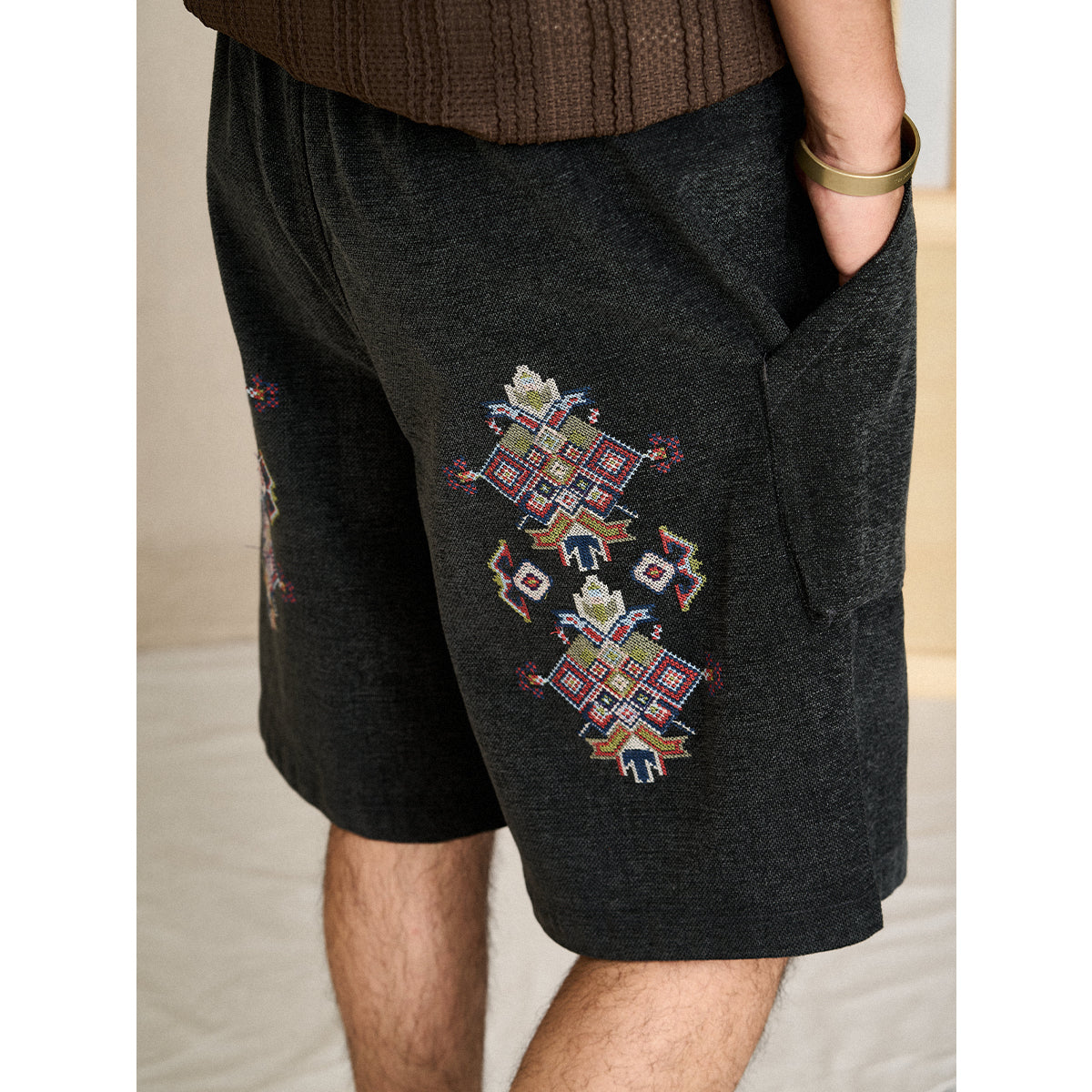 에스닉 자수와 입체 포켓으로 디자인성과 기능성을 갖춘 아이템이며 고무 허리와 조절 가능한 벨트로 편안한 착용감을 제공합니다.