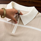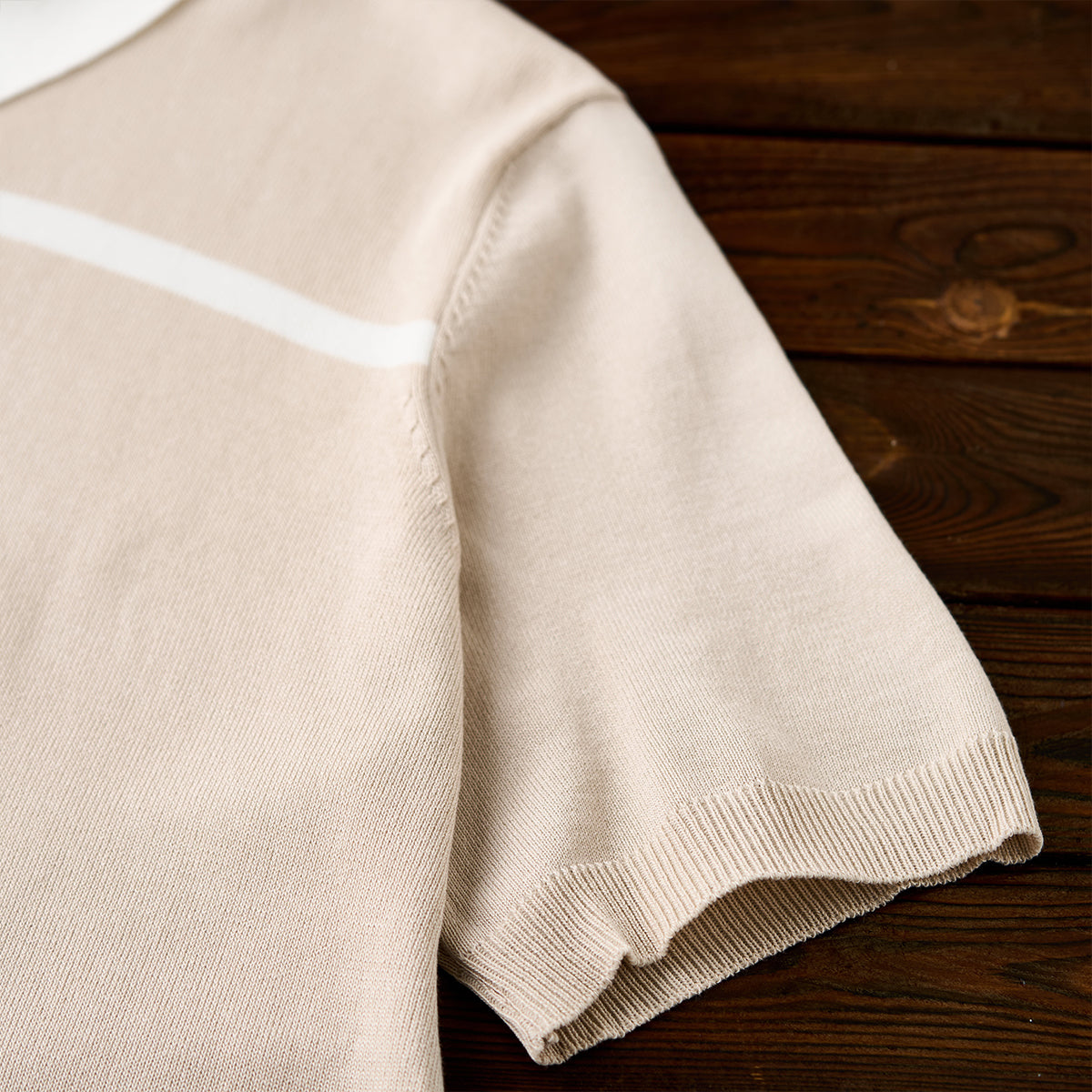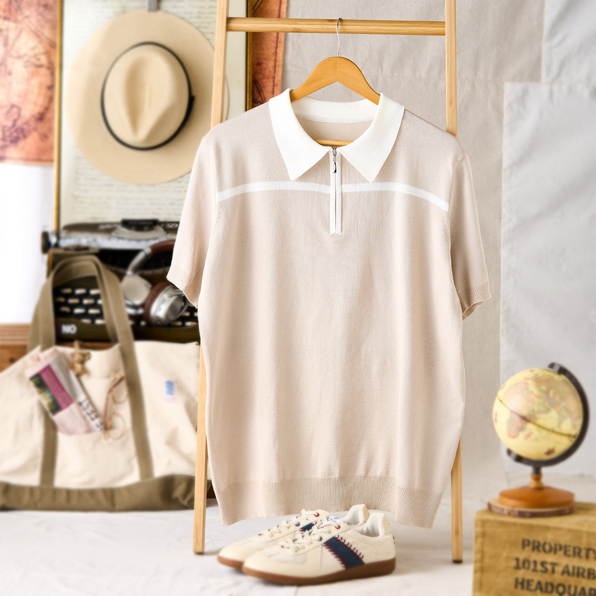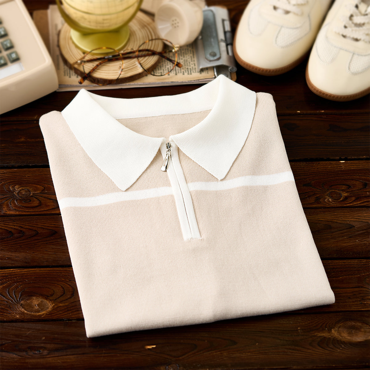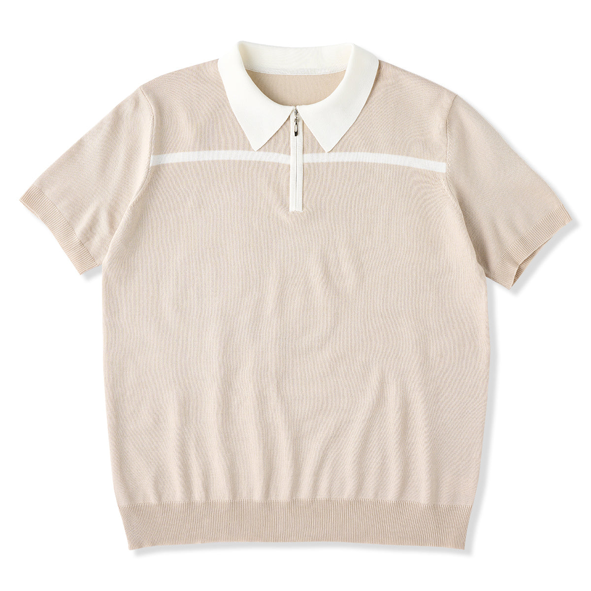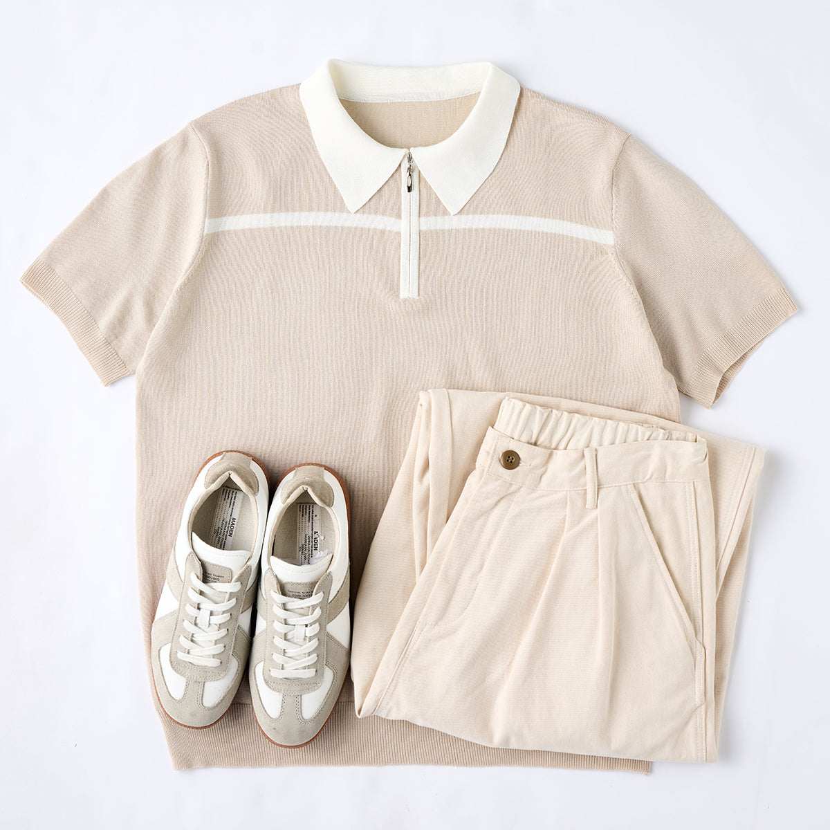 지퍼 카라와 비코스 소재로 시원하고 세련된 핏을 연출하며, 여름 캐주얼룩에 잘 어울립니다.