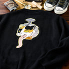 왼쪽 가슴에는 ‘독버섯 덩굴(毒つる茸)’ 자수가 새겨져 있으며, 오렌지색 태그 디자인이 검은 배경과 대비되어 포인트를 줍니다.