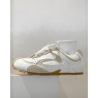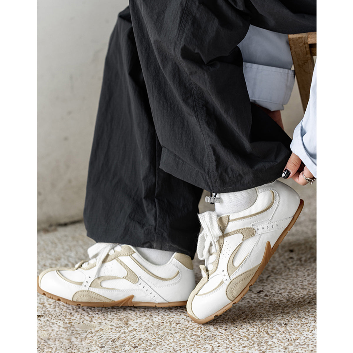 미니멀한 독일군 스타일의 스니커즈로, 고급 소재와 클래식한 디자인이 특징입니다.