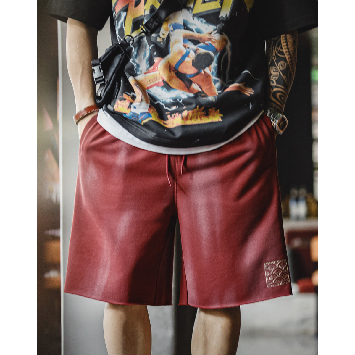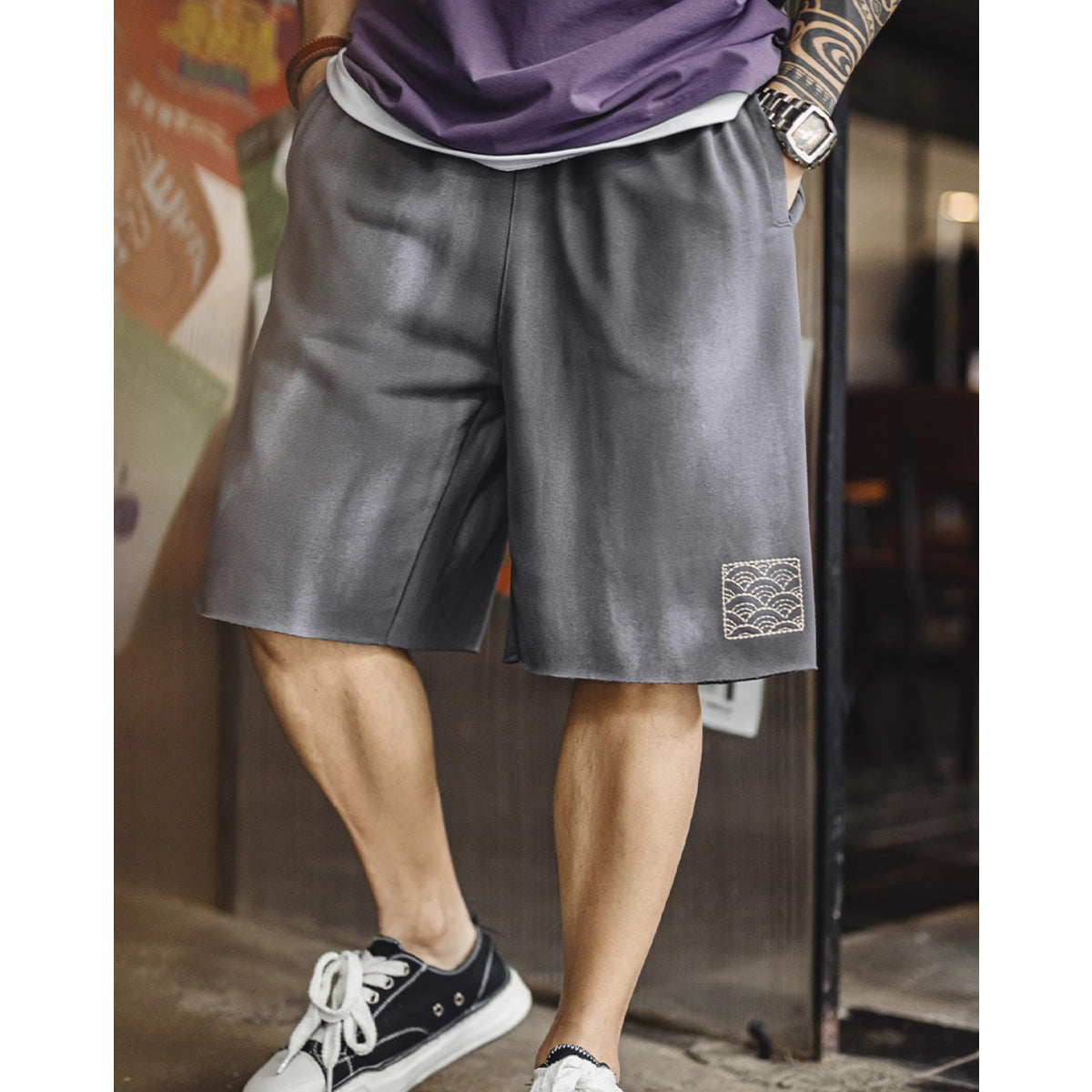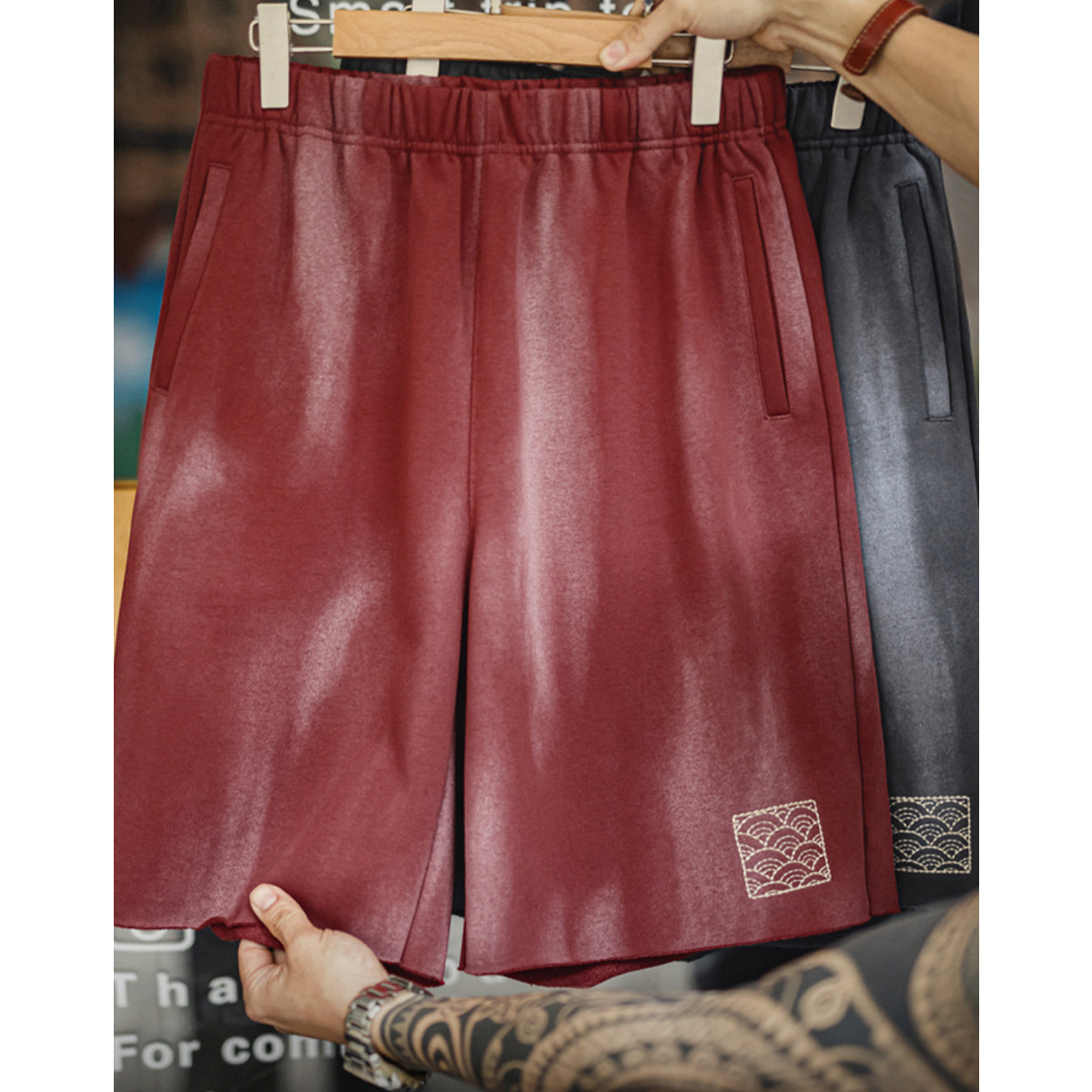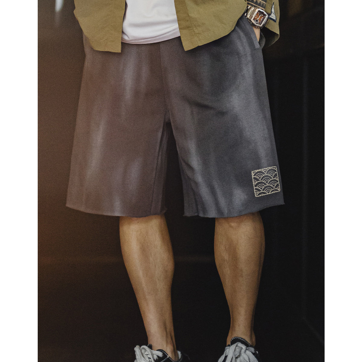 파도무늬 자수 헤비웨이트 짜임 염색 쇼츠