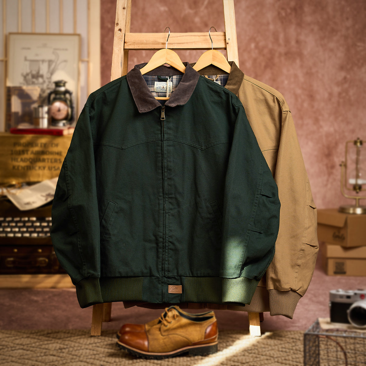 The use of cotton canvas fabric emphasizes the vintage feel and also provides excellent wind blocking effect.