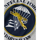 낙하산, 호랑이, 별, 번개 등 상징적 요소들이 용기와 속도감, 승리를 표현해 강렬한 인상을 줍니다.