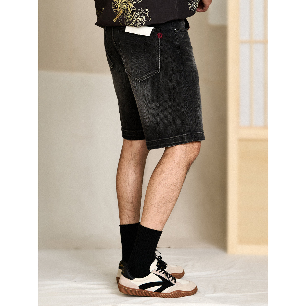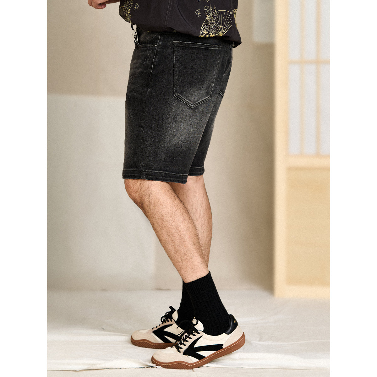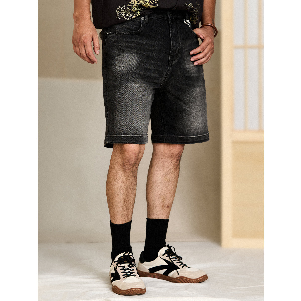 빈티지한 워싱 디테일과 편안한 착용감이 돋보이는 여름 데님 쇼트 팬츠. 무릎이 살짝 보이는 길이감으로 다리를 슬림하게 연출해줍니다.