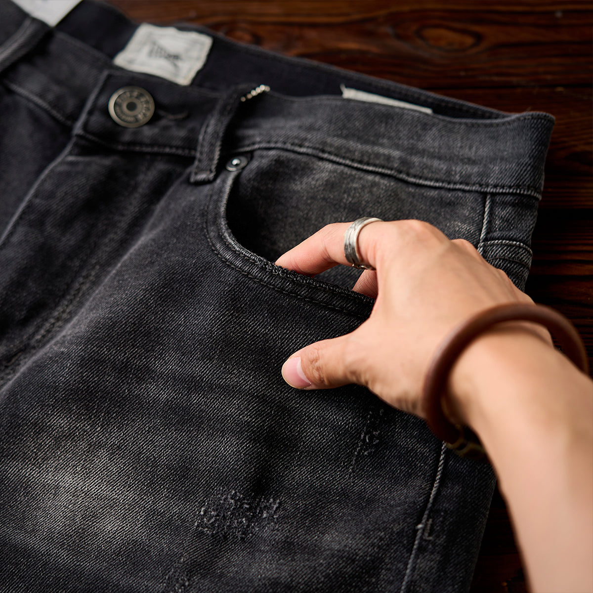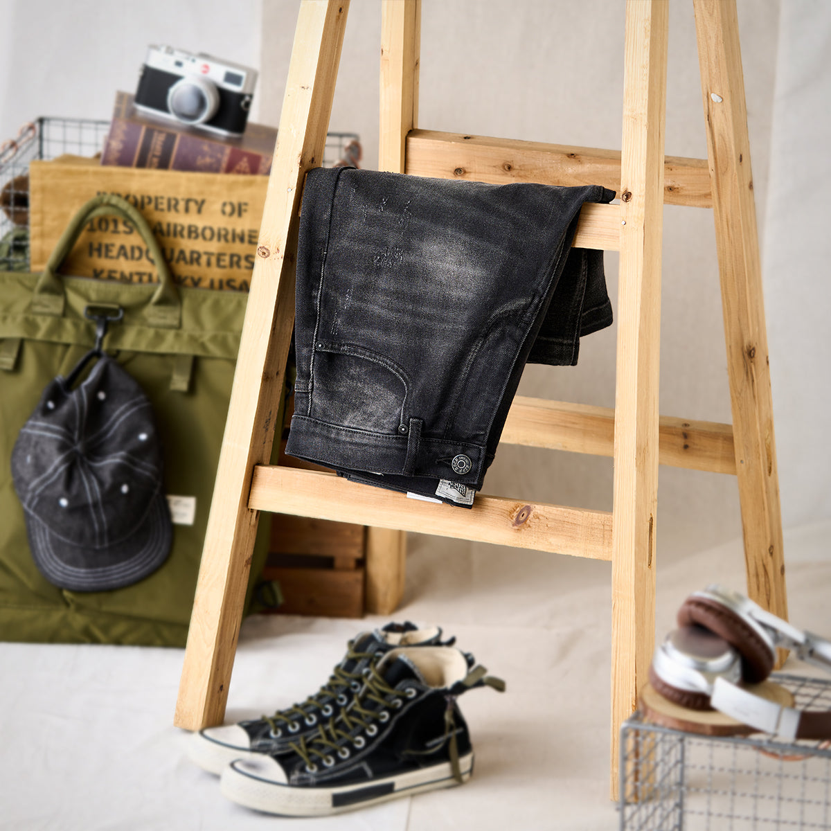 허벅지와 힙 부분의 워싱에 허리 주변 캣브러쉬 디테일까지 더해져, 자연스러운 빈티지 감성이 느껴집니다.