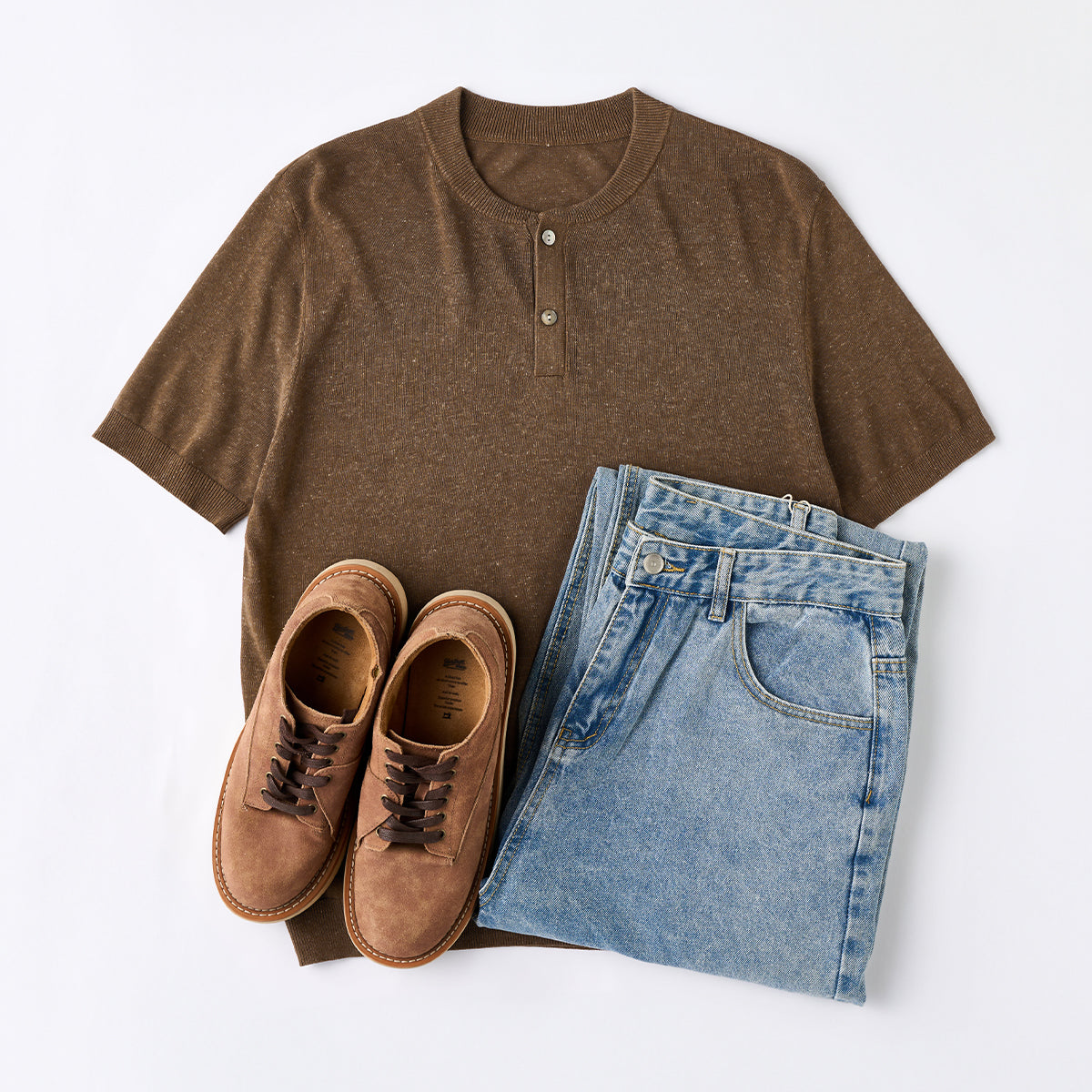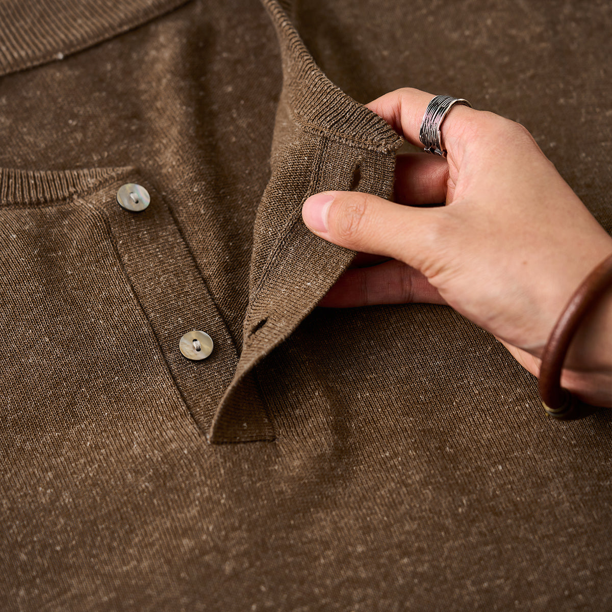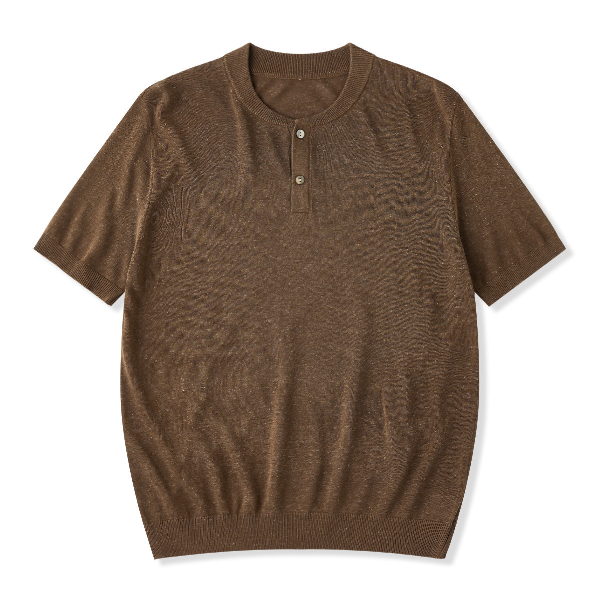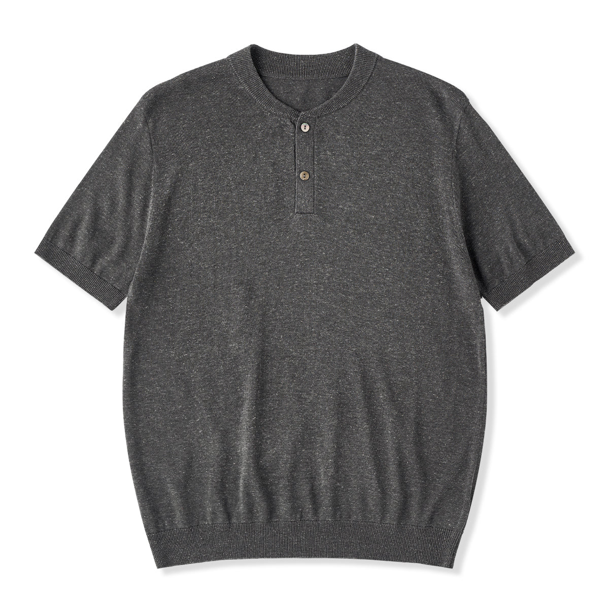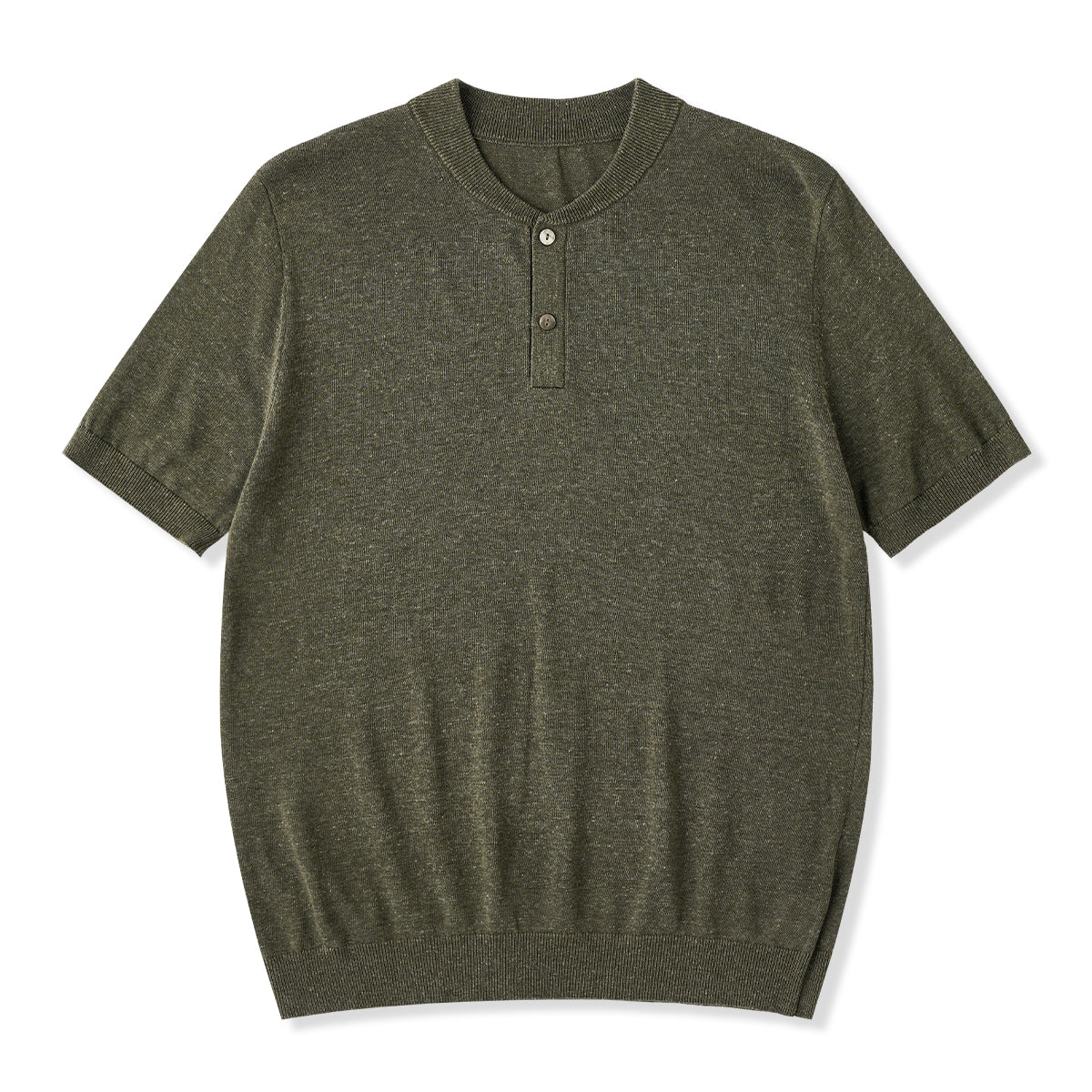 Clean Fit 린넨 혼방 니트 짜임 헨리넥 티셔츠