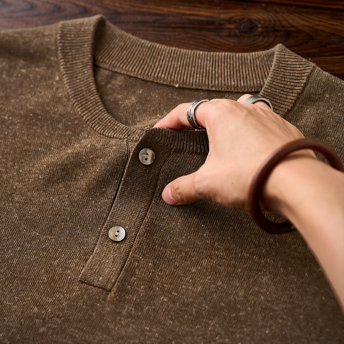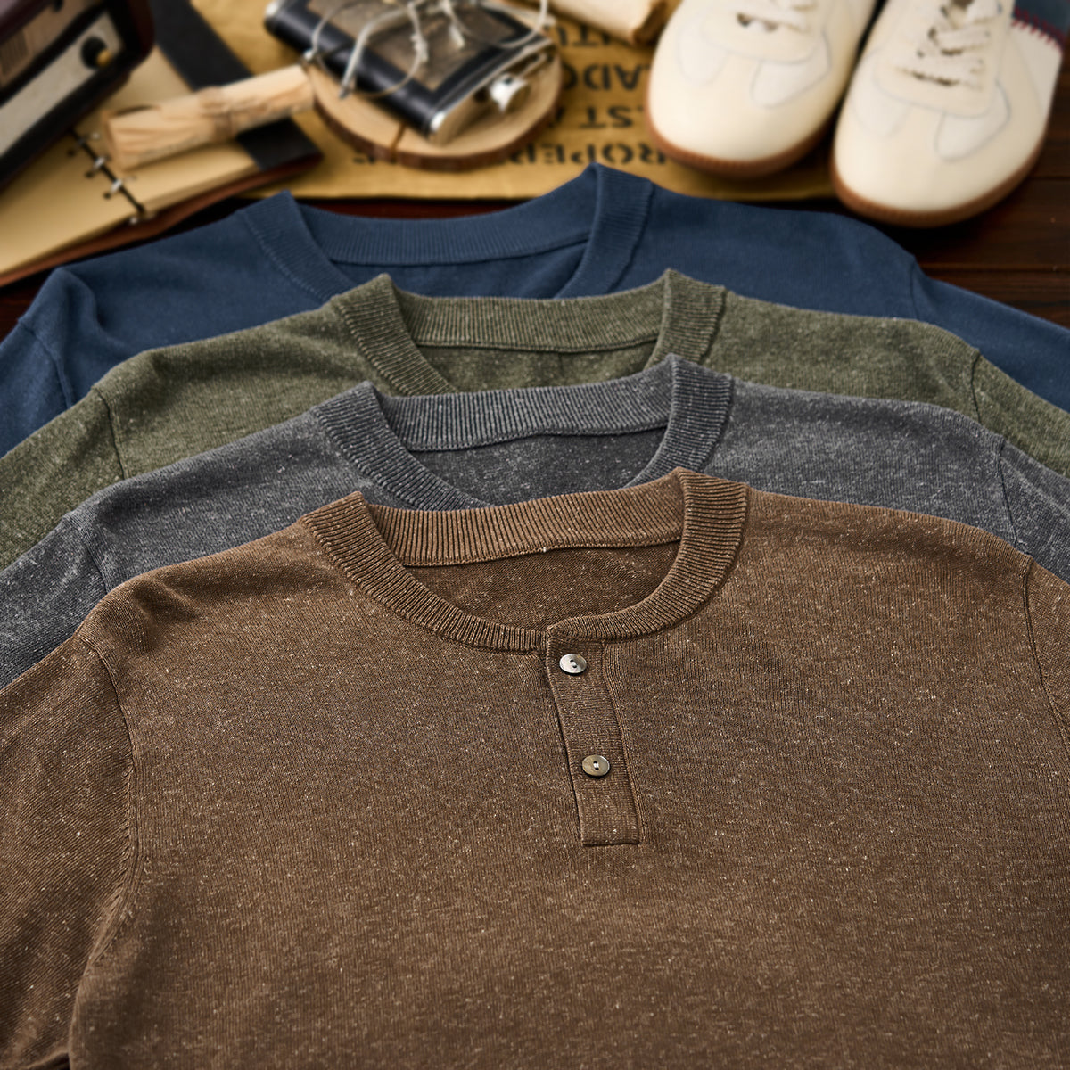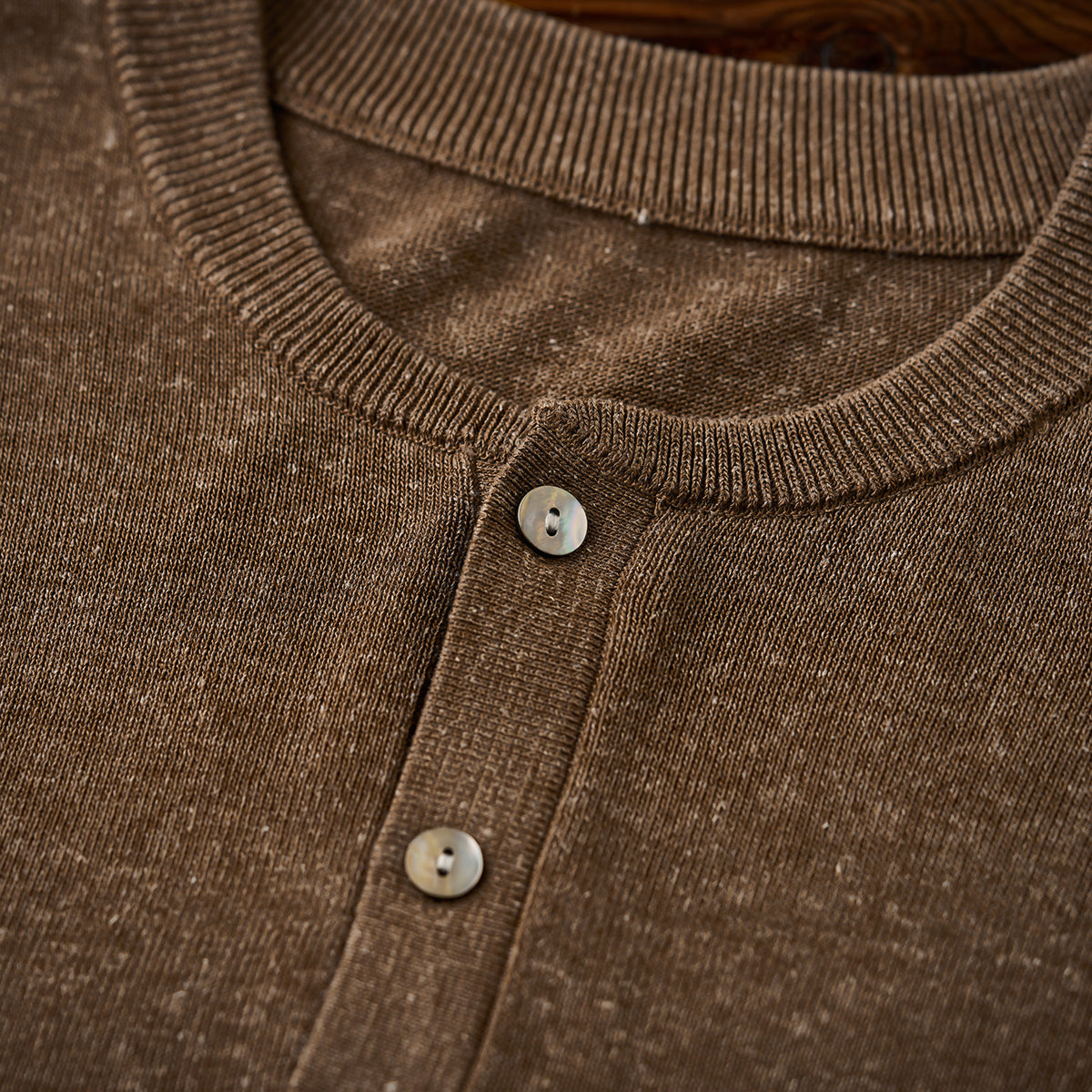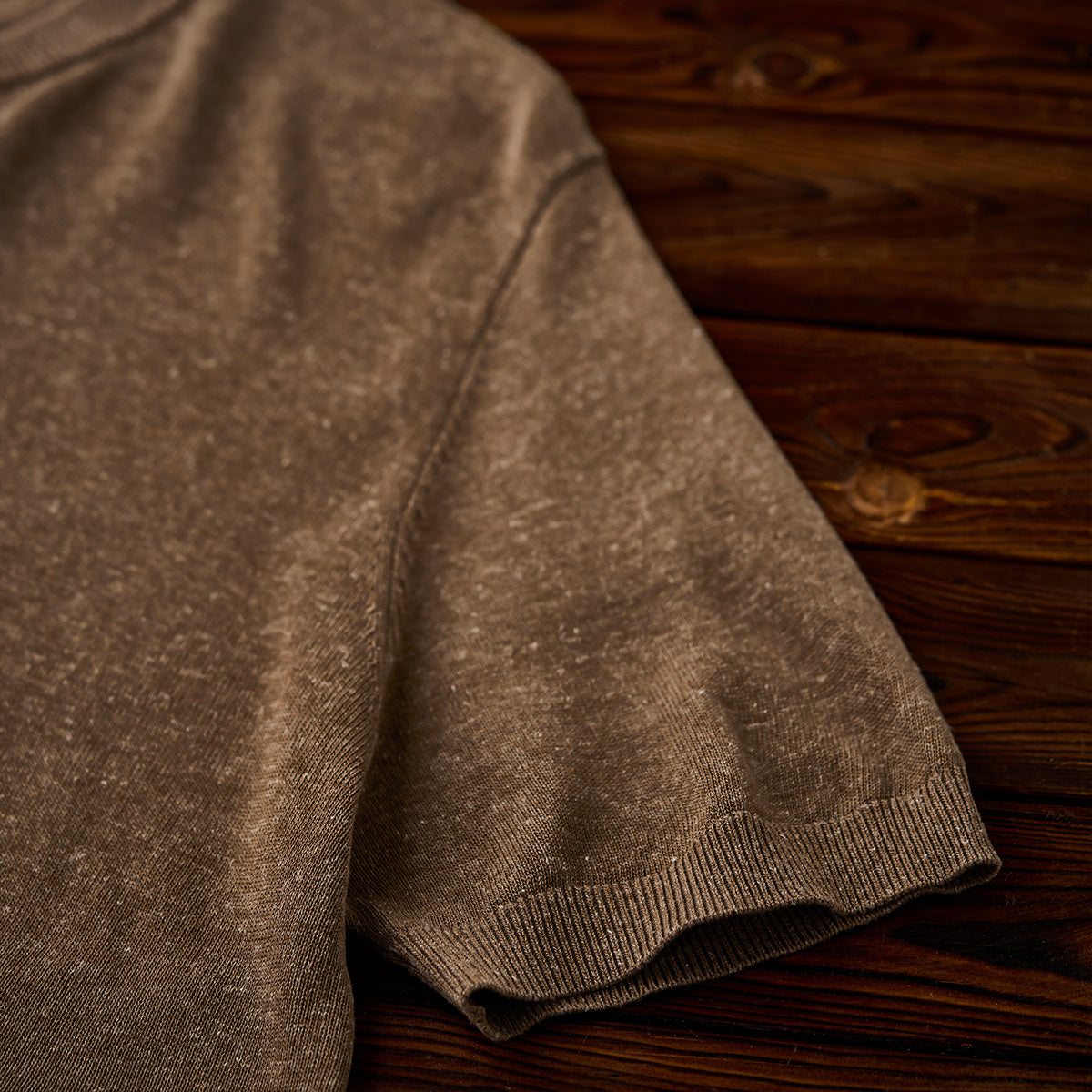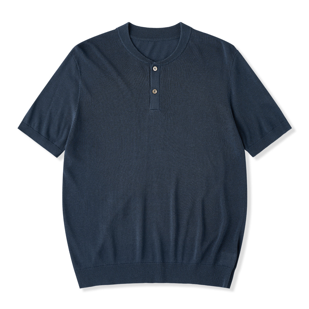 Clean Fit 린넨 혼방 니트 짜임 헨리넥 티셔츠