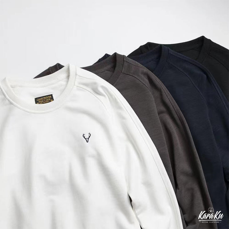 This item has a relaxed shoulder shape and a diagonal design from the neck to the armpits that is its biggest point. It has a common sportswear design that allows you to easily raise and move your arms. The raglan sleeves with a collar, sleeve hem, and tutu line add a sporty feel. The simple deer embroidery on the left chest is a special design that gives it an authentic feel and gives it a sense of moderate assertion and trend. The 350g fabric + lining fleece fabric was used to express softness and texture so that air can pass well between the fibers, and it is characterized by having both sturdiness and warm texture, and has excellent absorbency and elasticity. It provides the best comfort with a sense of fit and durability as well as a soft touch!