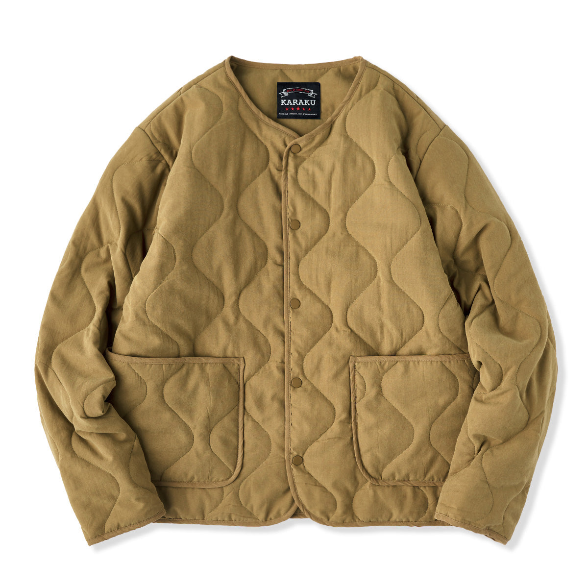 This item is an improvement on the quilted liner design for the M-65 field jacket, and can be used as both an outer and a liner, allowing for a variety of styling options. While maintaining the appeal of the existing quilted liner, updates have been reflected in the material and details. The high-quality material used on the body and the patch pockets on both sides have been designed to be comfortable and practical to wear alone.
