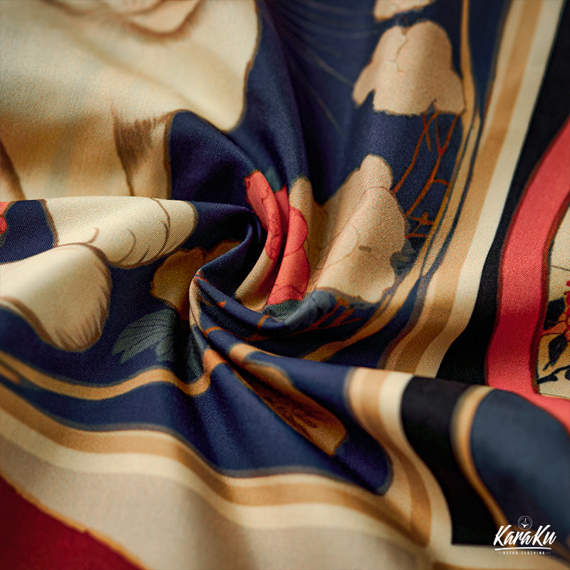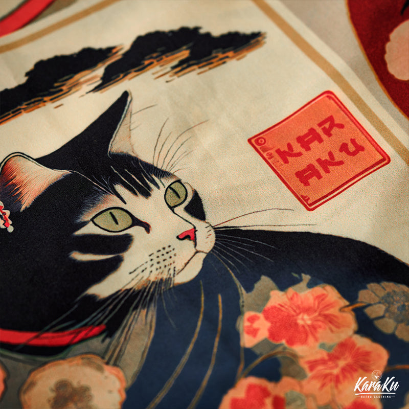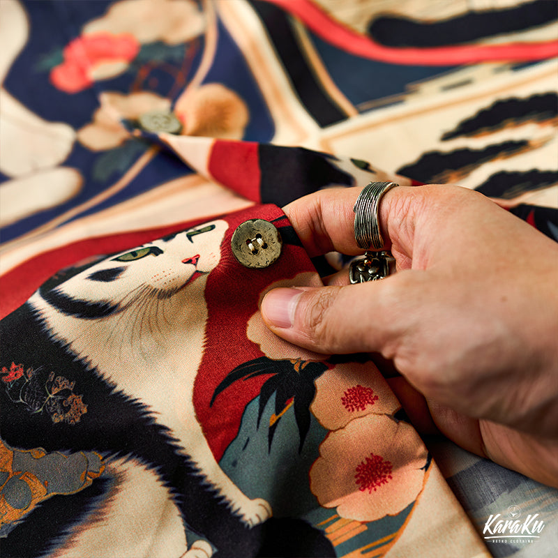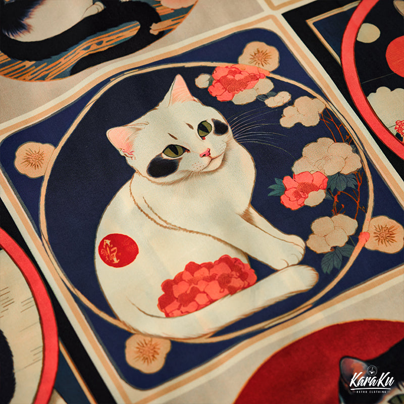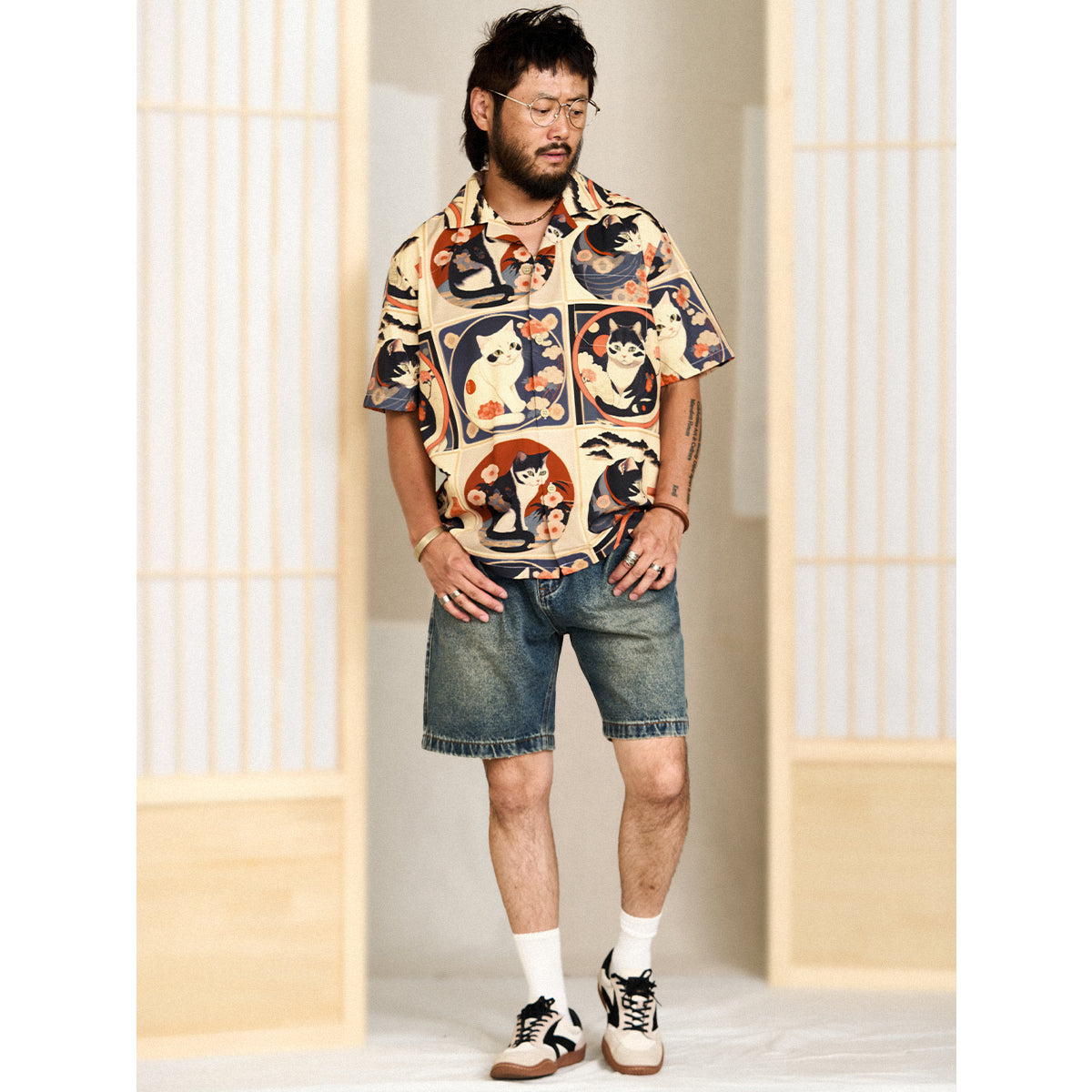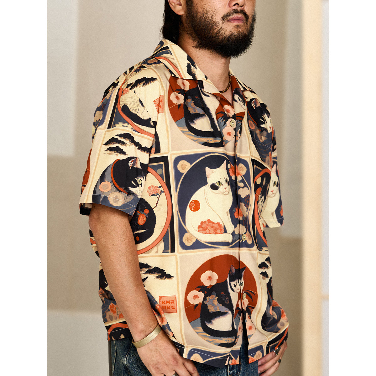 Aloha shirt with a cat pattern in the Ukiyo-e style from the Meiji period