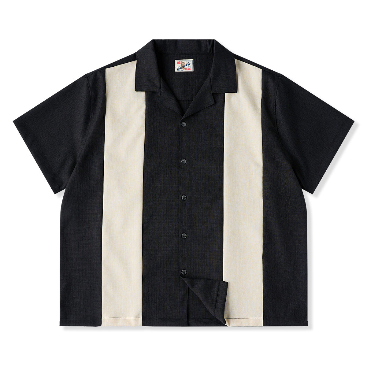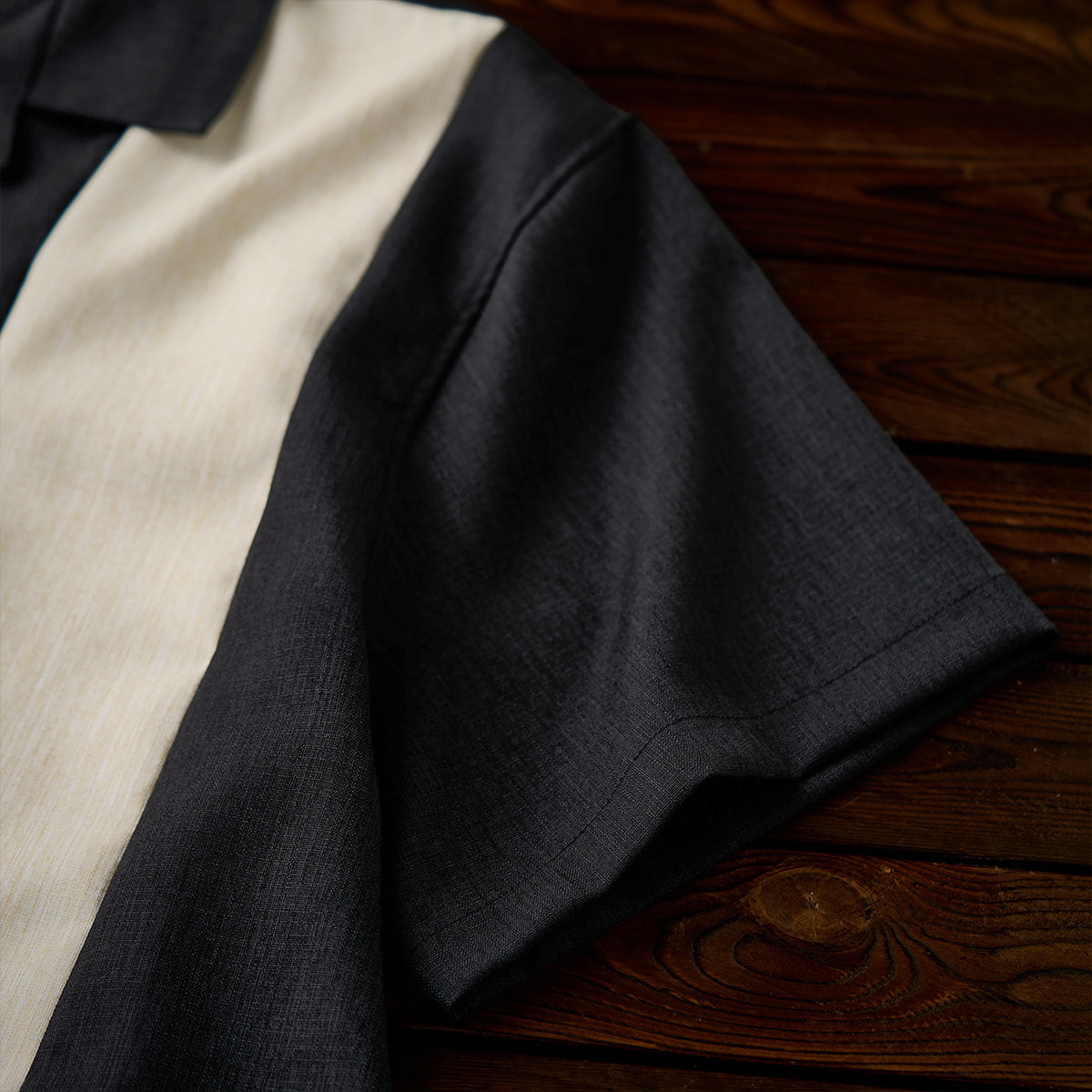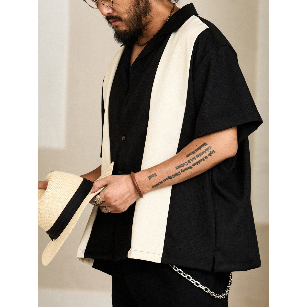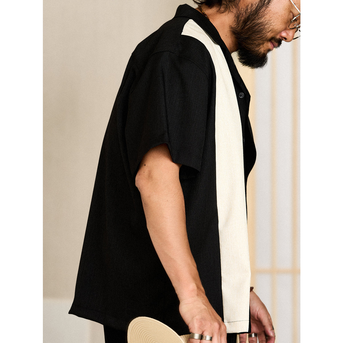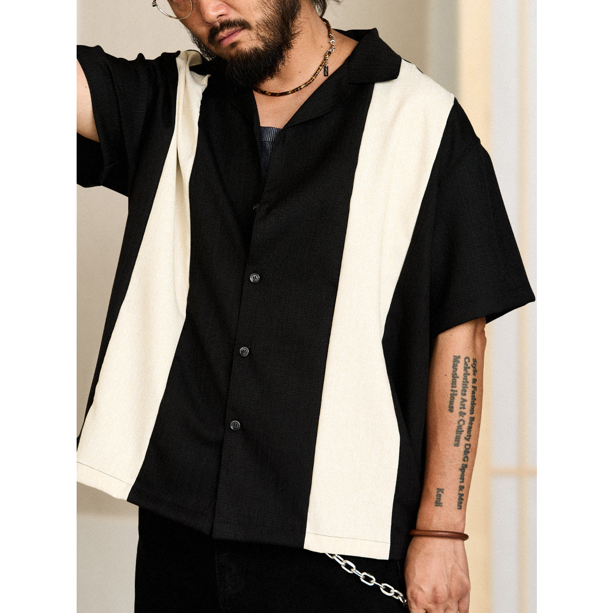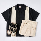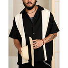 Multi-material combination Cuban collar short sleeve shirt