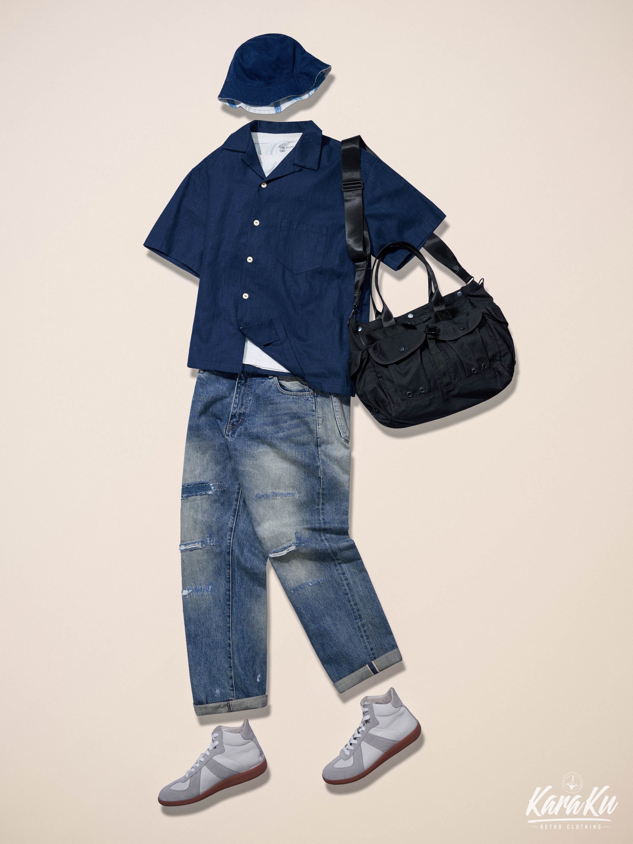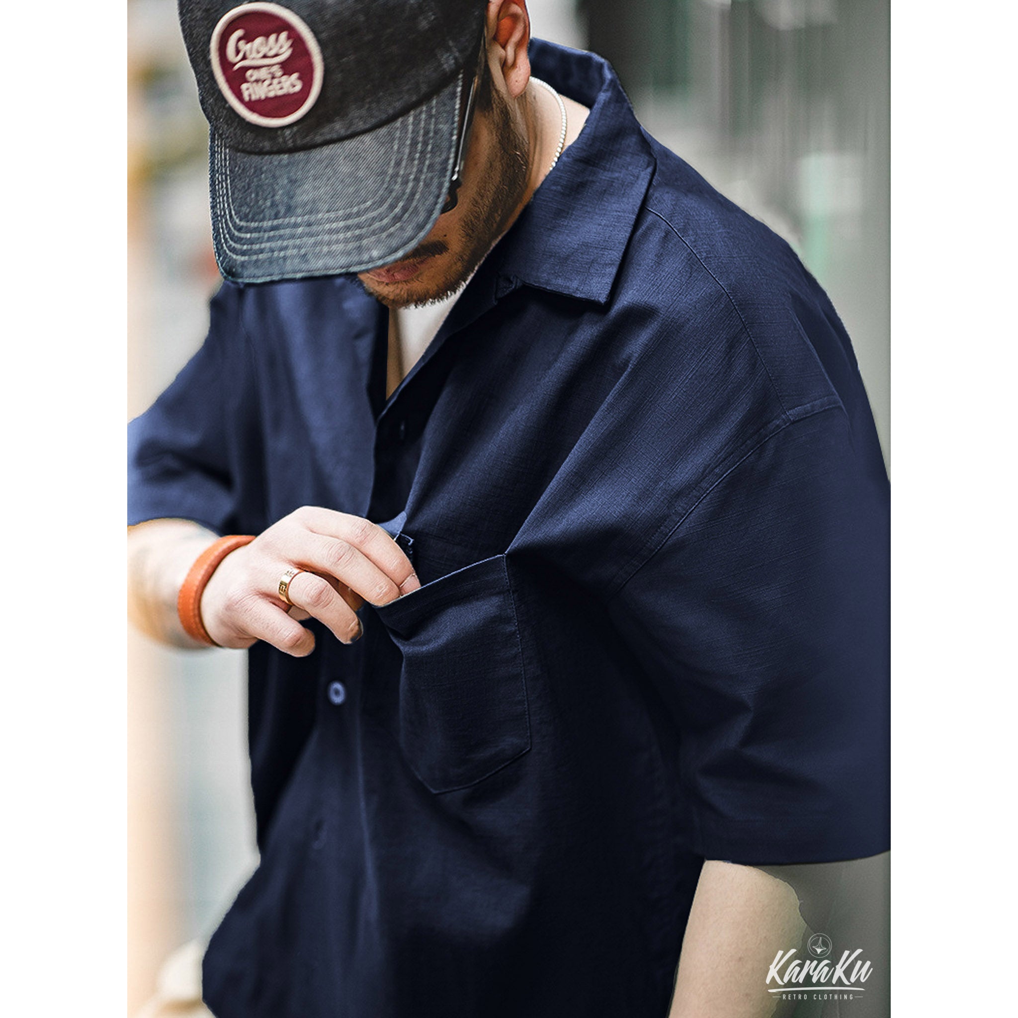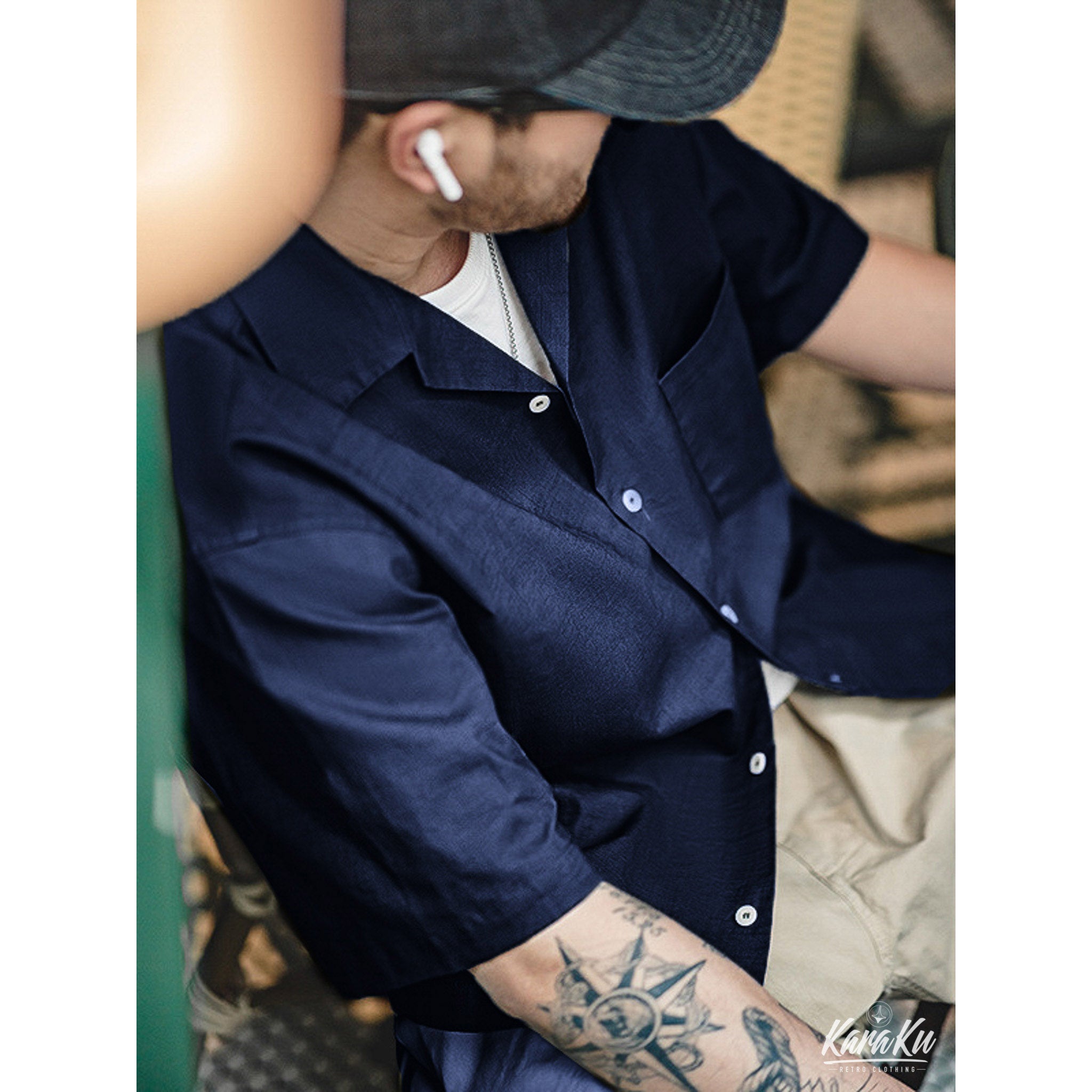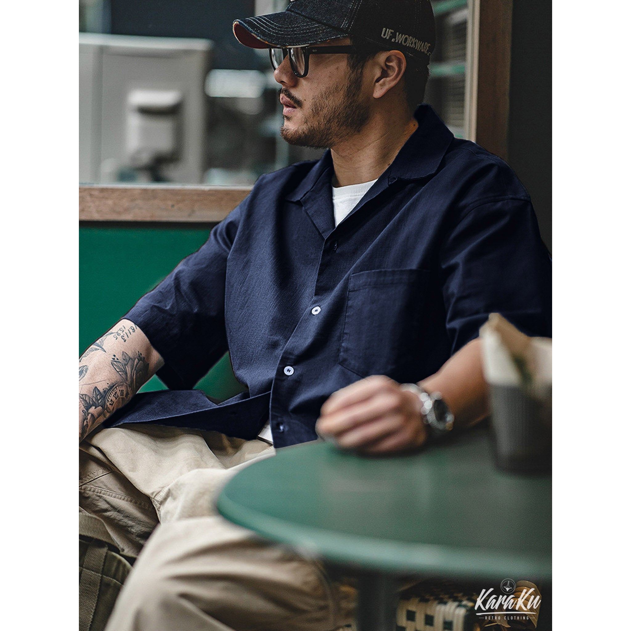 Aizome Drop Shoulder Cotton Linen Cuban Shirt