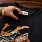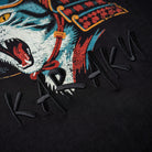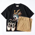 「포효하는 장군 고양이」프린트 & KARAKU 자수 코튼 티셔츠
