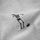 왼쪽 가슴에 골프 클럽을 잡고 스윙하는 모습의 ‘목이 떨어진 해골’ 자수가 있으며, 스윙 동작을 정확히 표현해 다크하면서도 유머러스한 분위기를 자아냅니다.