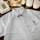 빨간 매듭「골프 스윙 중 목이 떨어진 해골」자수 옥스퍼드 반팔 셔츠