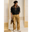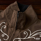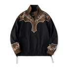 브라운과 블랙의 바이컬러 배색에 아이보리 덩굴무늬 체인 자수가 포인트인 웨스턴 무드의 하프 집업 풀오버. 매직 테이프와 드로우코드로 착용감과 실루엣을 손쉽게 조절할 수 있어, 실용성과 스타일을 모두 갖춘 아이템입니다.