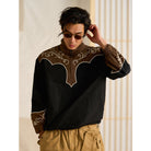 웨스턴 스타일 체인 자수 하프 집업 풀오버 스웨트셔츠
