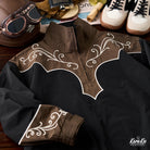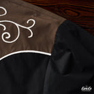 브라운과 블랙의 바이컬러 배색에 아이보리 덩굴무늬 자수가 더해져, 웨스턴 무드가 느껴지는 감각적인 디자인입니다.