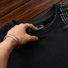 일본 사시코 자수로 표현한 불규칙 자수와 할퀴는 고양이 자수가 돋보이는 스웨트셔츠. 여유로운 실루엣과 편안한 착용감을 선사합니다.