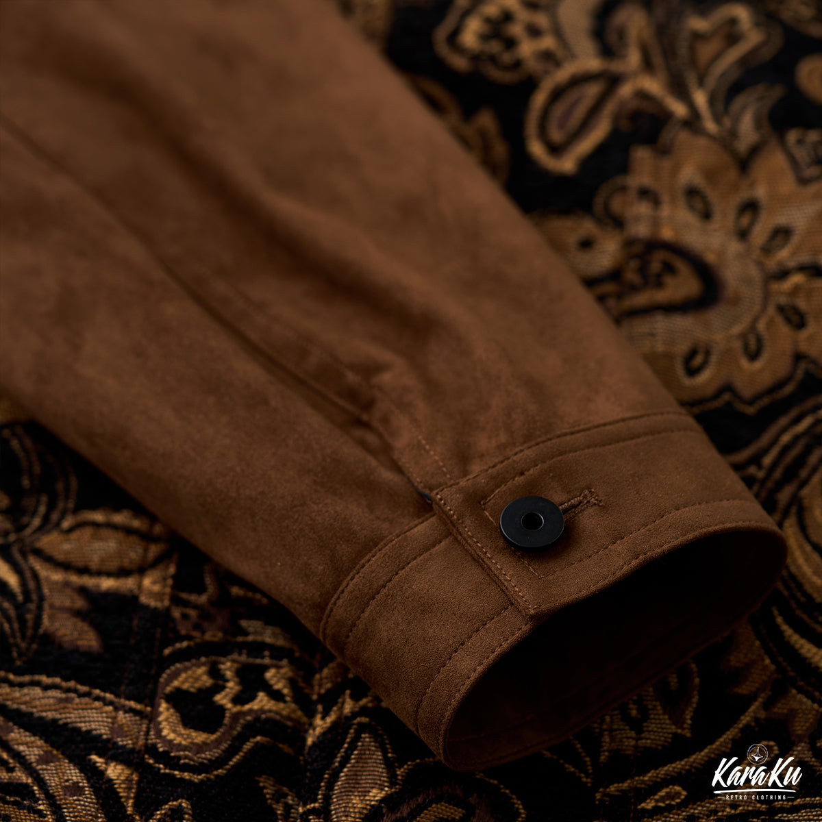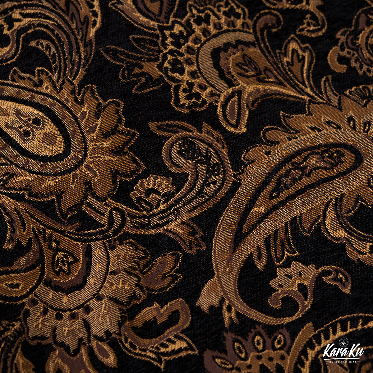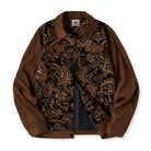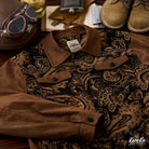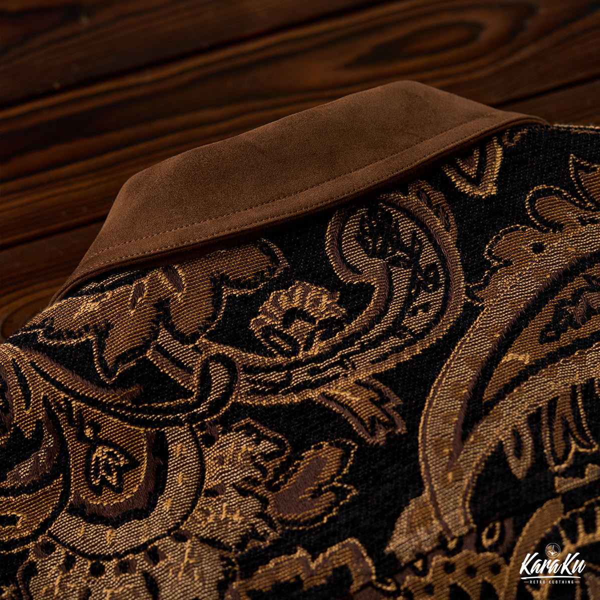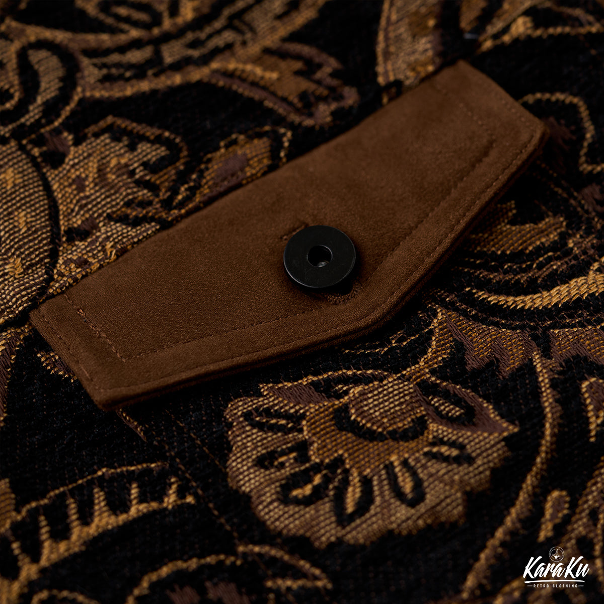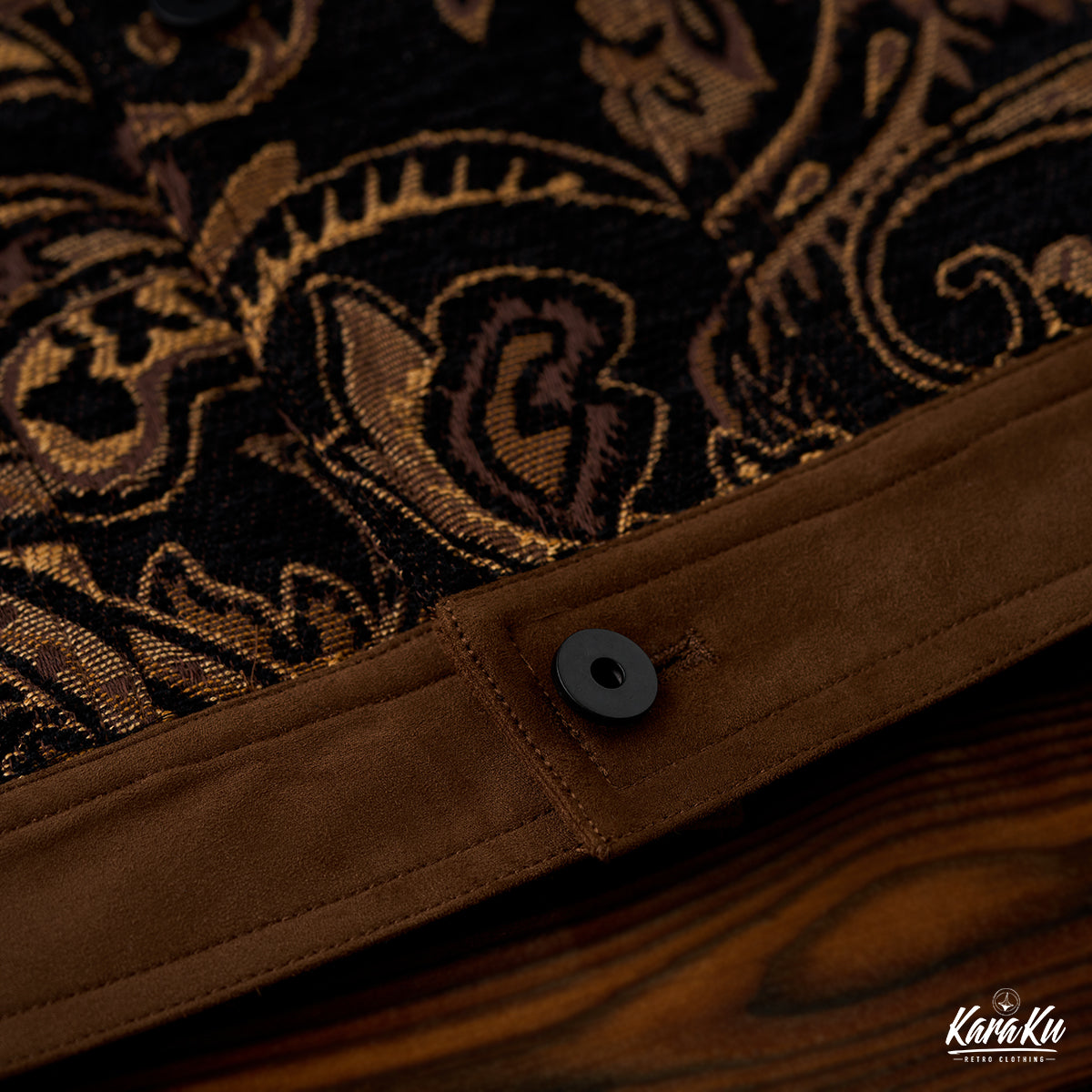 This classic western style paisley jacquard chenille and suede jacket has a luxurious texture and vintage feel that goes well with a variety of styles.