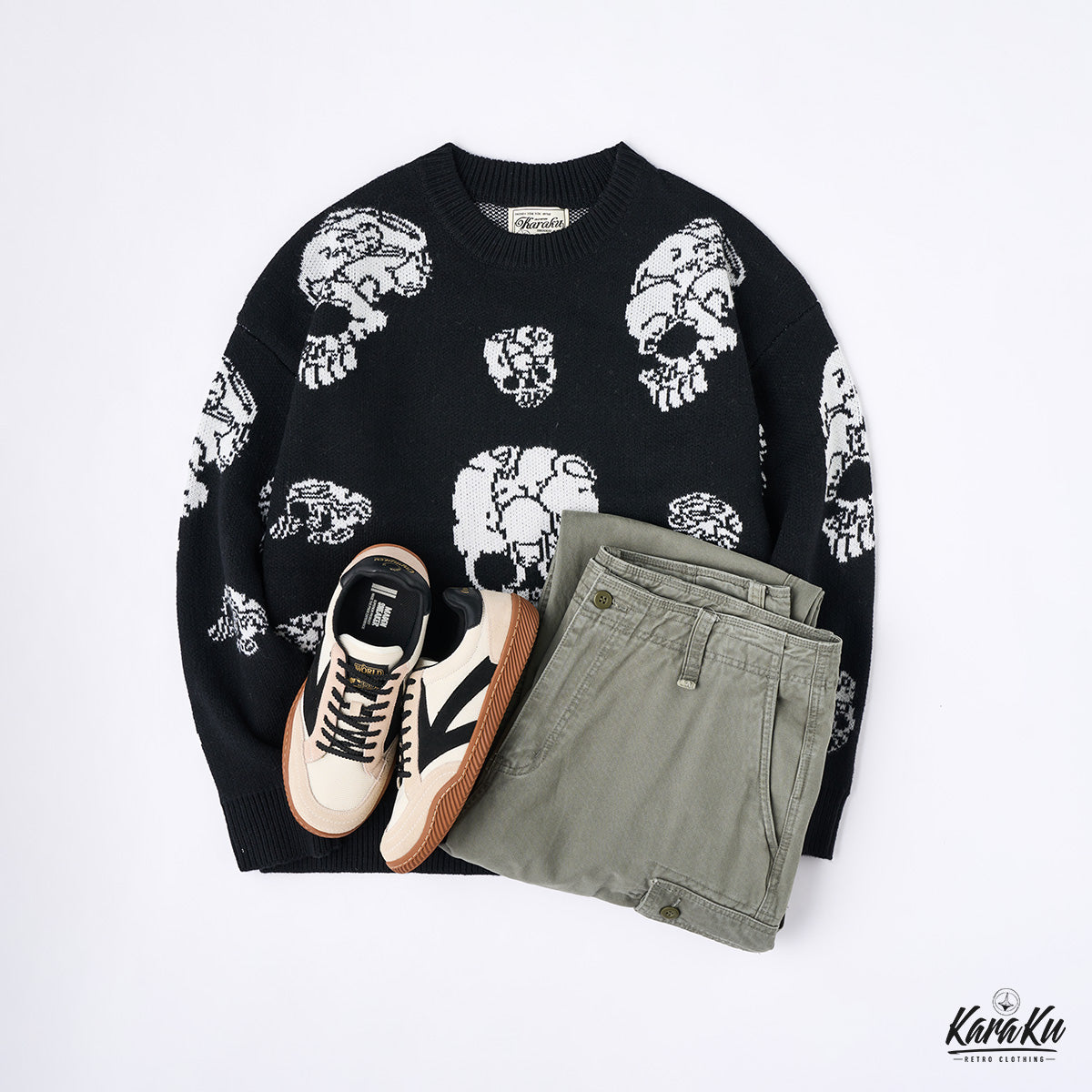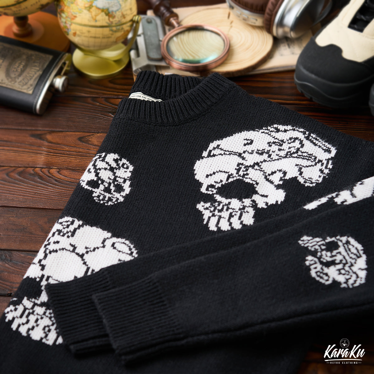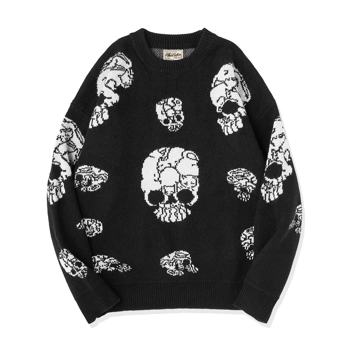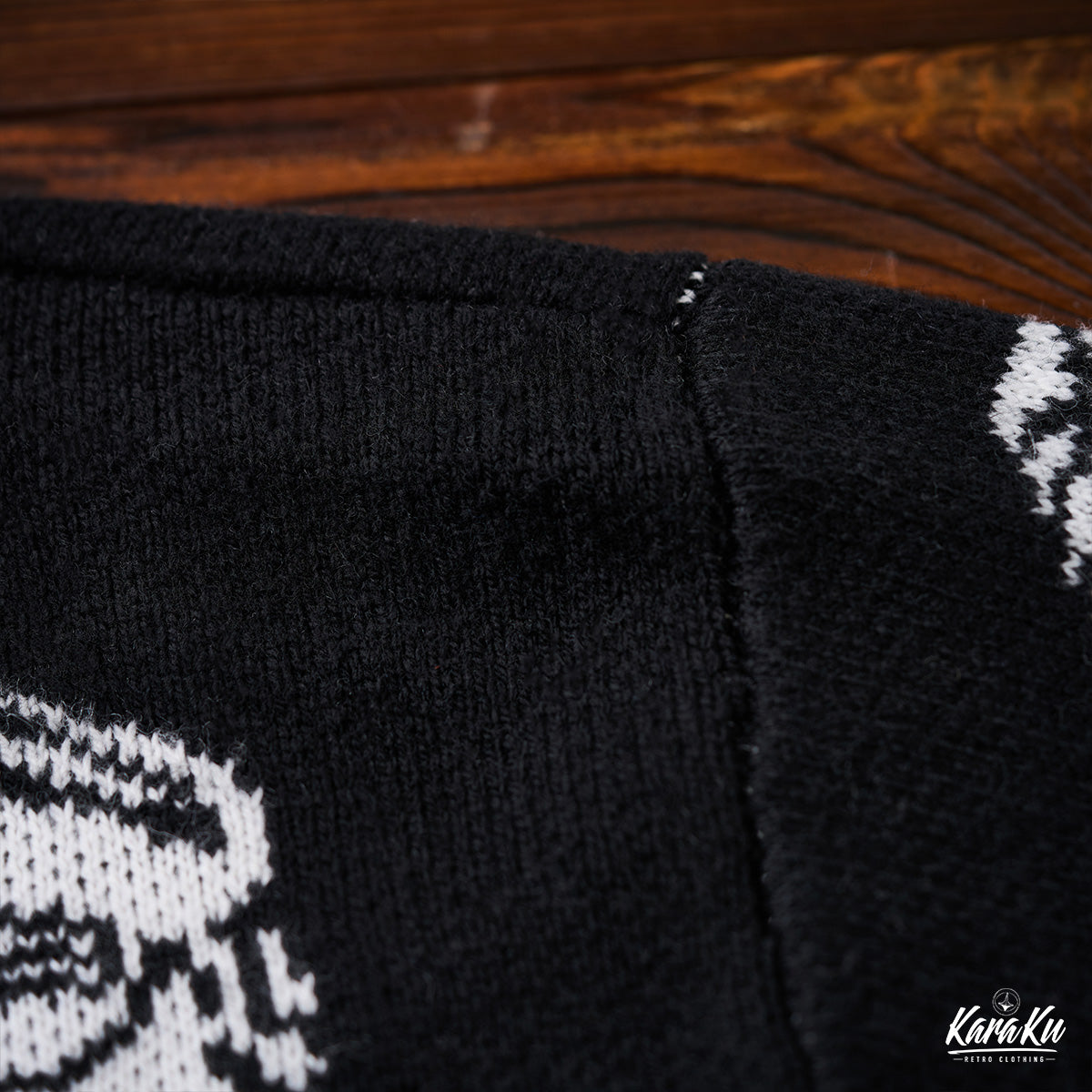 "Hallucination, Cat and Skull" Ukiyo-e style jacquard knit sweater