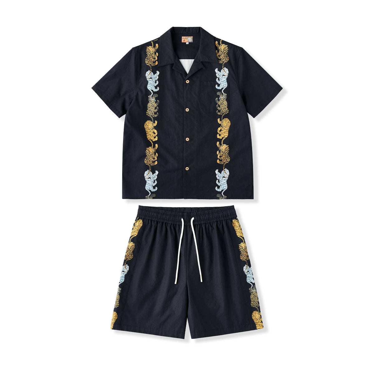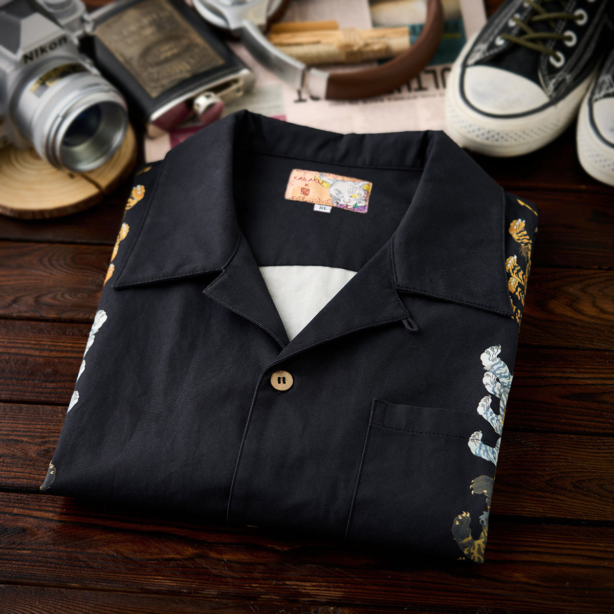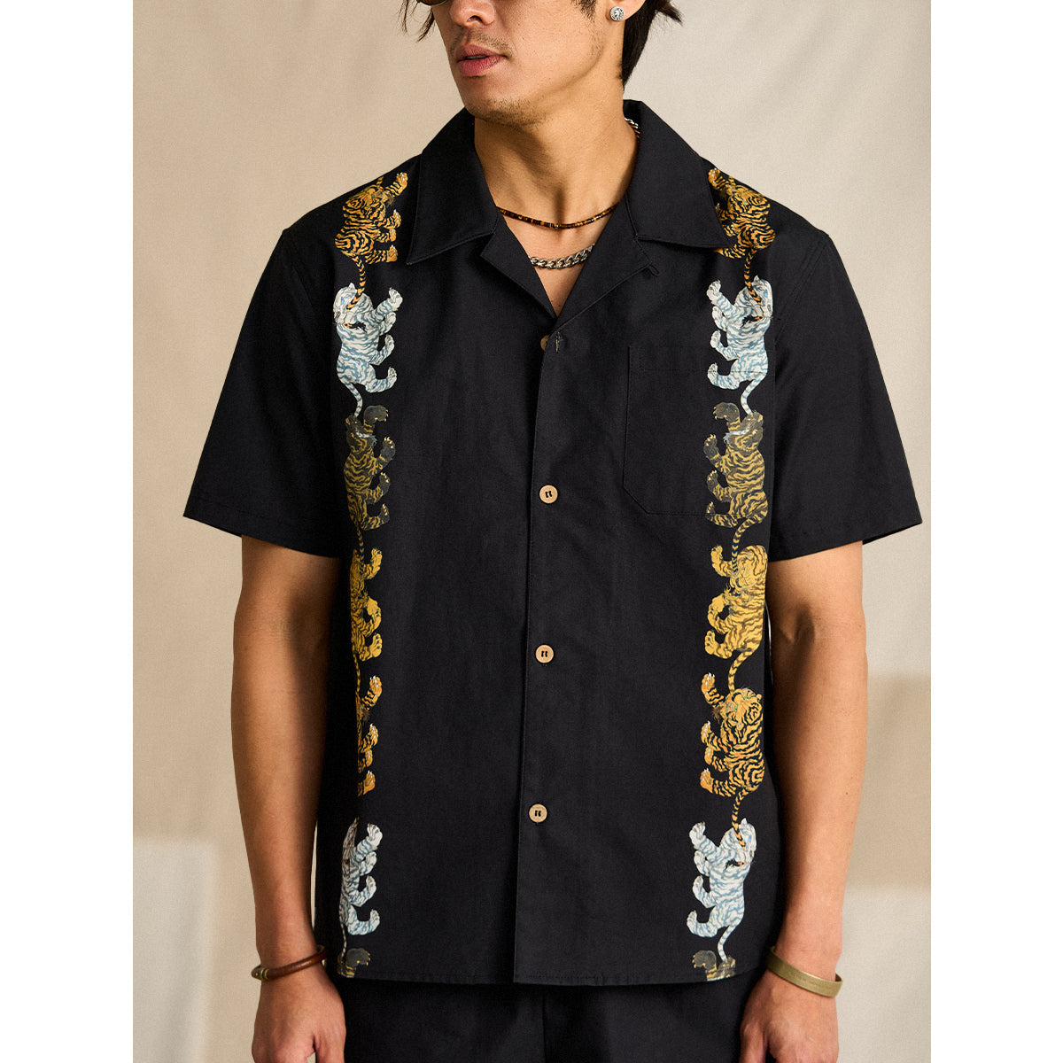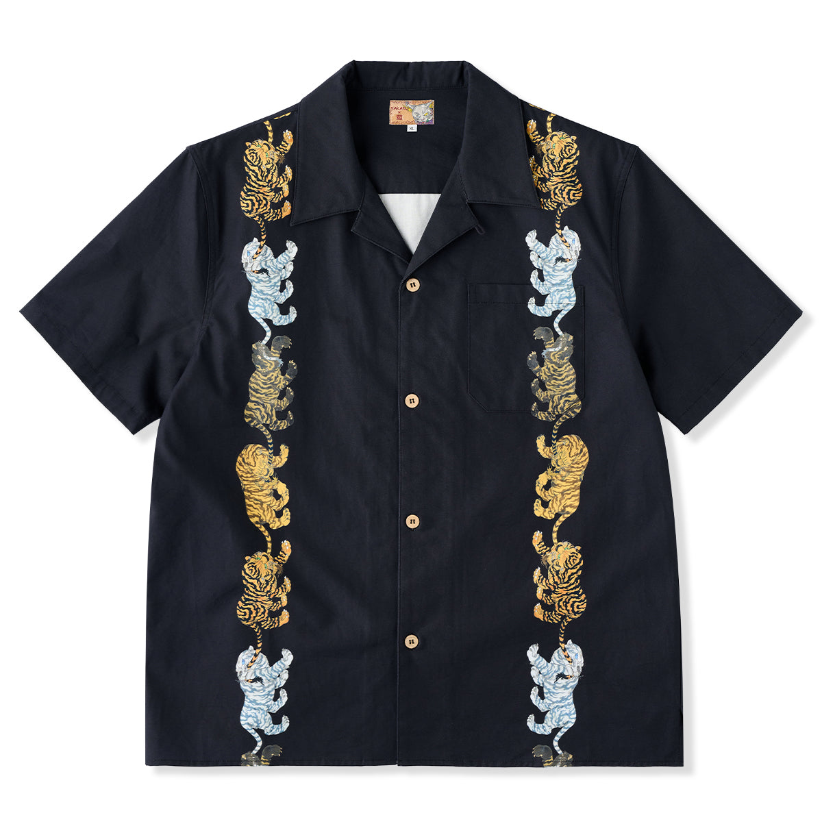 KARAKU x Yasato Ishiguro "Three Tigers" Vertical Print Aloha Shirt