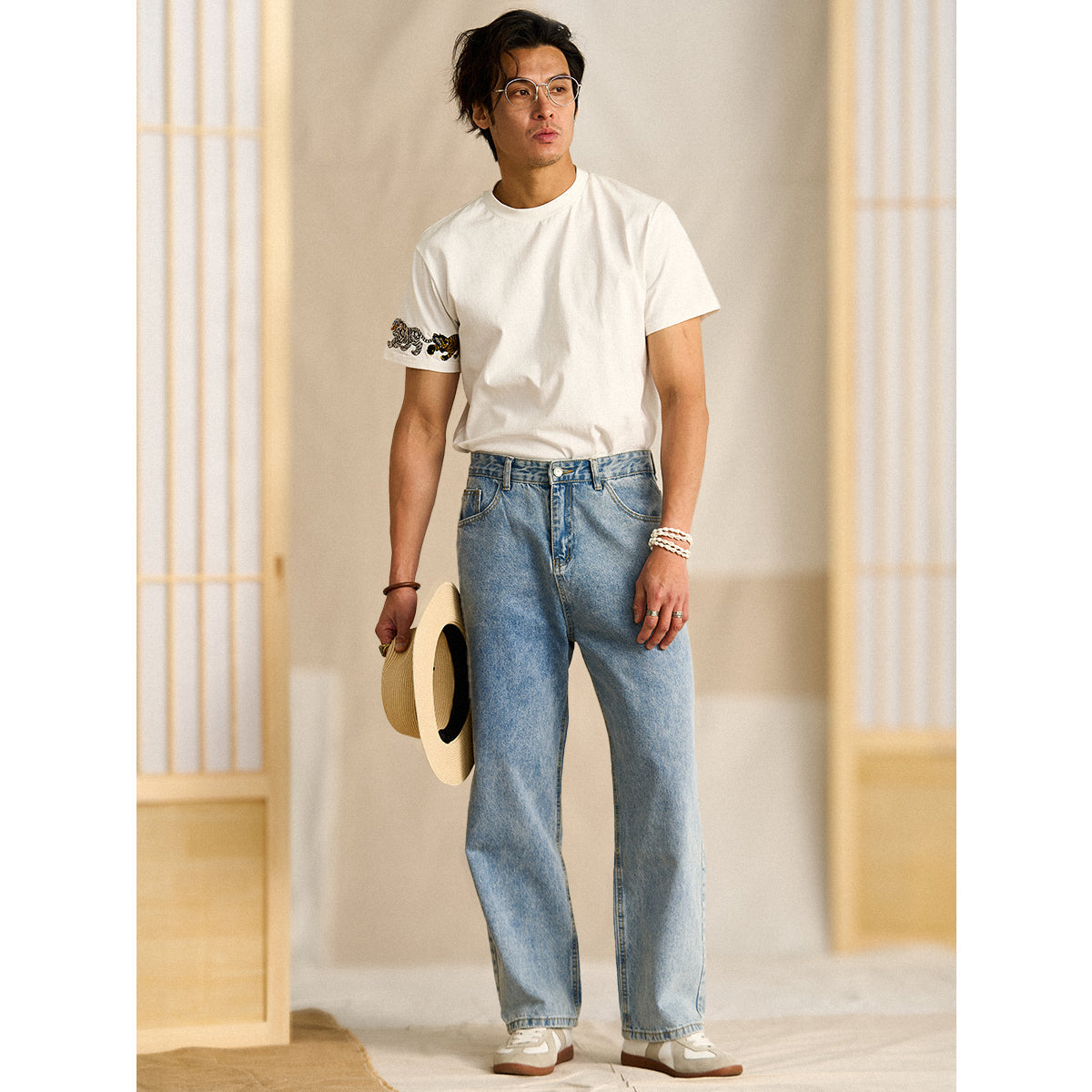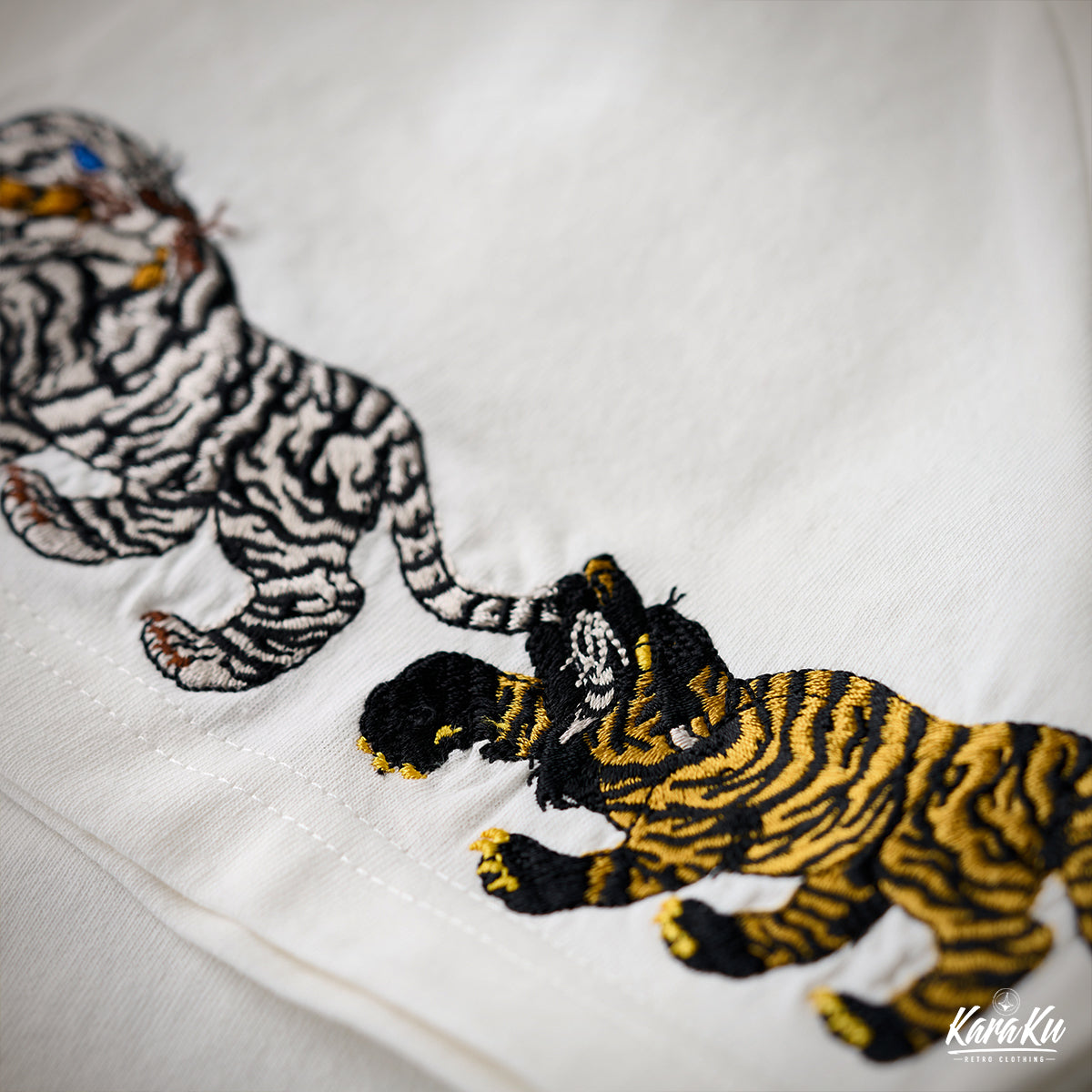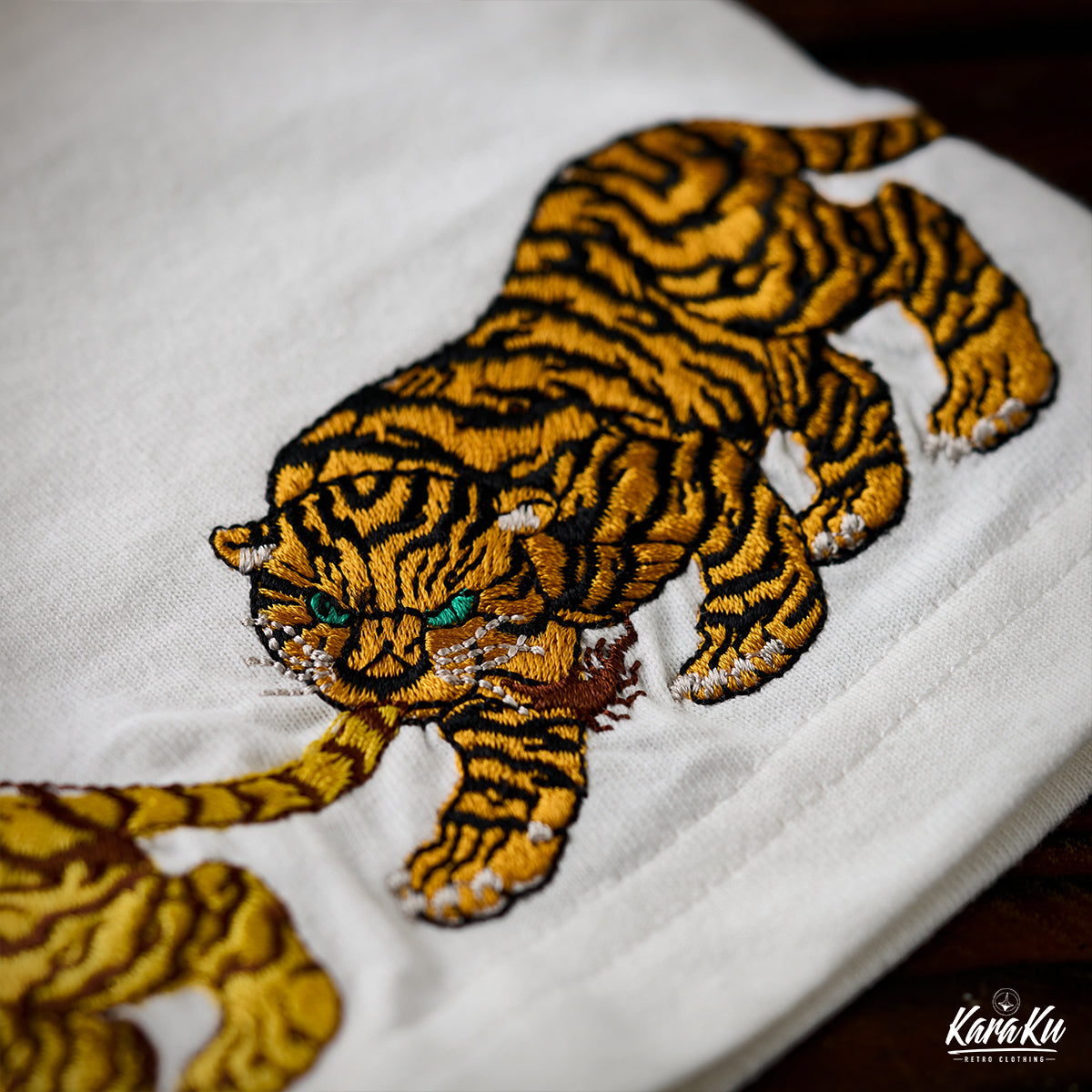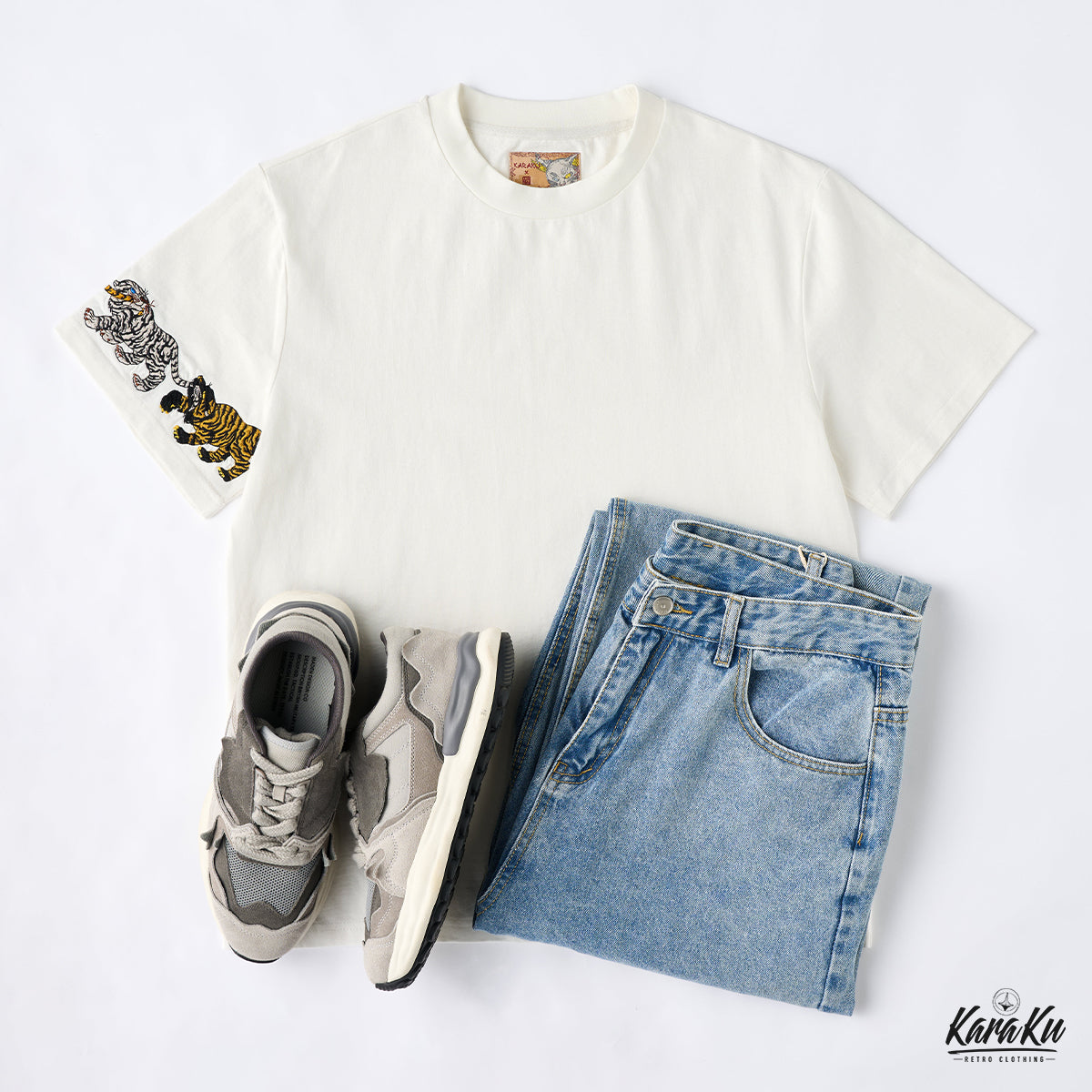 KARAKU x Yasato Ishiguro "Tail-wagging Tiger Procession" Sleeve Embroidered Cotton T-shirt