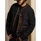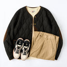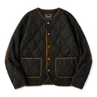 【사전예약】코듀로이 패치 배색 퀼팅 피치스킨 페이크 레이어드 패딩 자켓