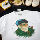 「붕대를 감고 파이프를 문 자화상」디지털 유화 프린트 코튼 티셔츠