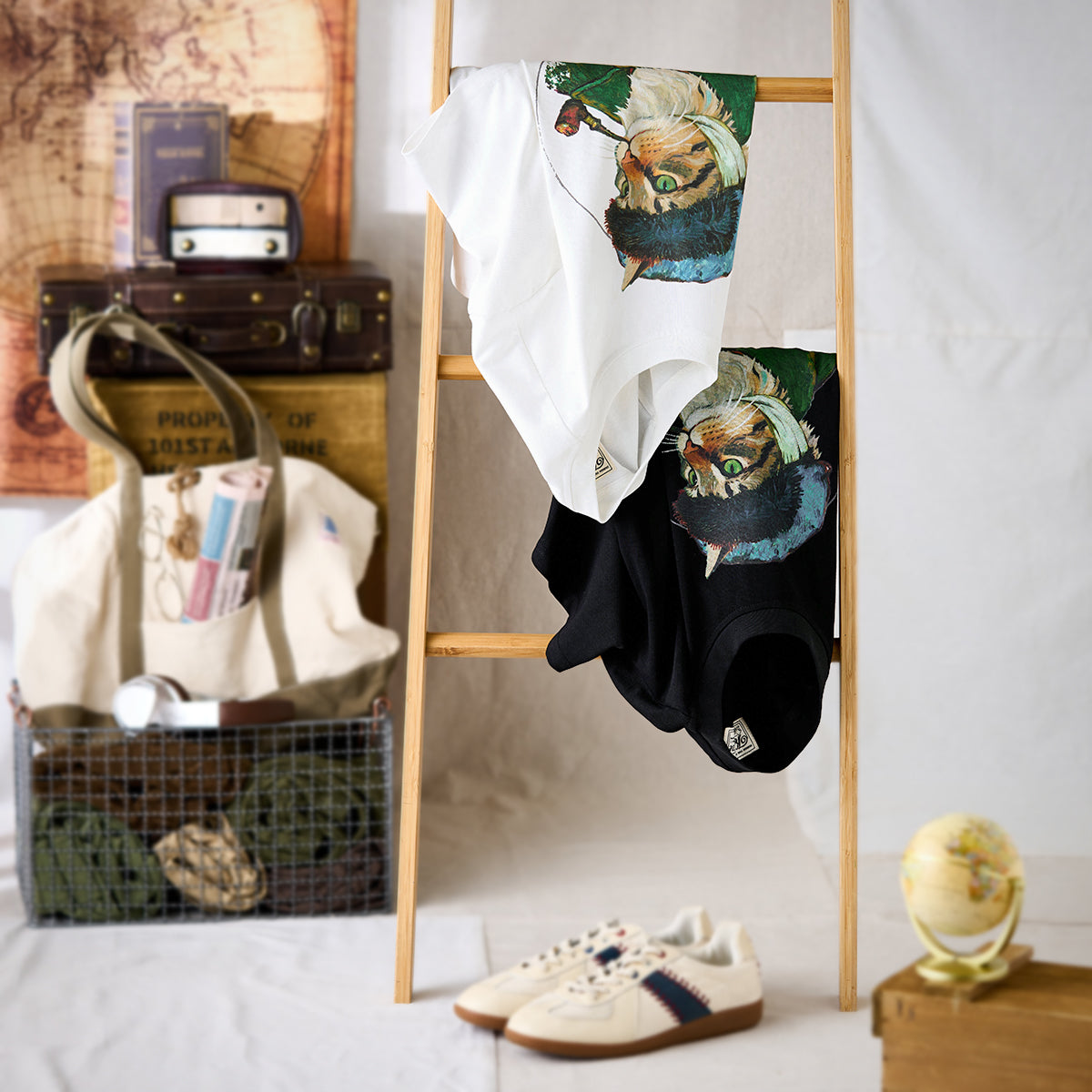 심플하지만 강렬한 패러디 감성으로 예술 팬과 고양이 애호가 모두의 마음을 사로잡습니다. 캐주얼 스타일에 완벽하게 어울리며, 일상에서는 캔버스 스니커즈와 함께 편안하게 연출할 수 있습니다