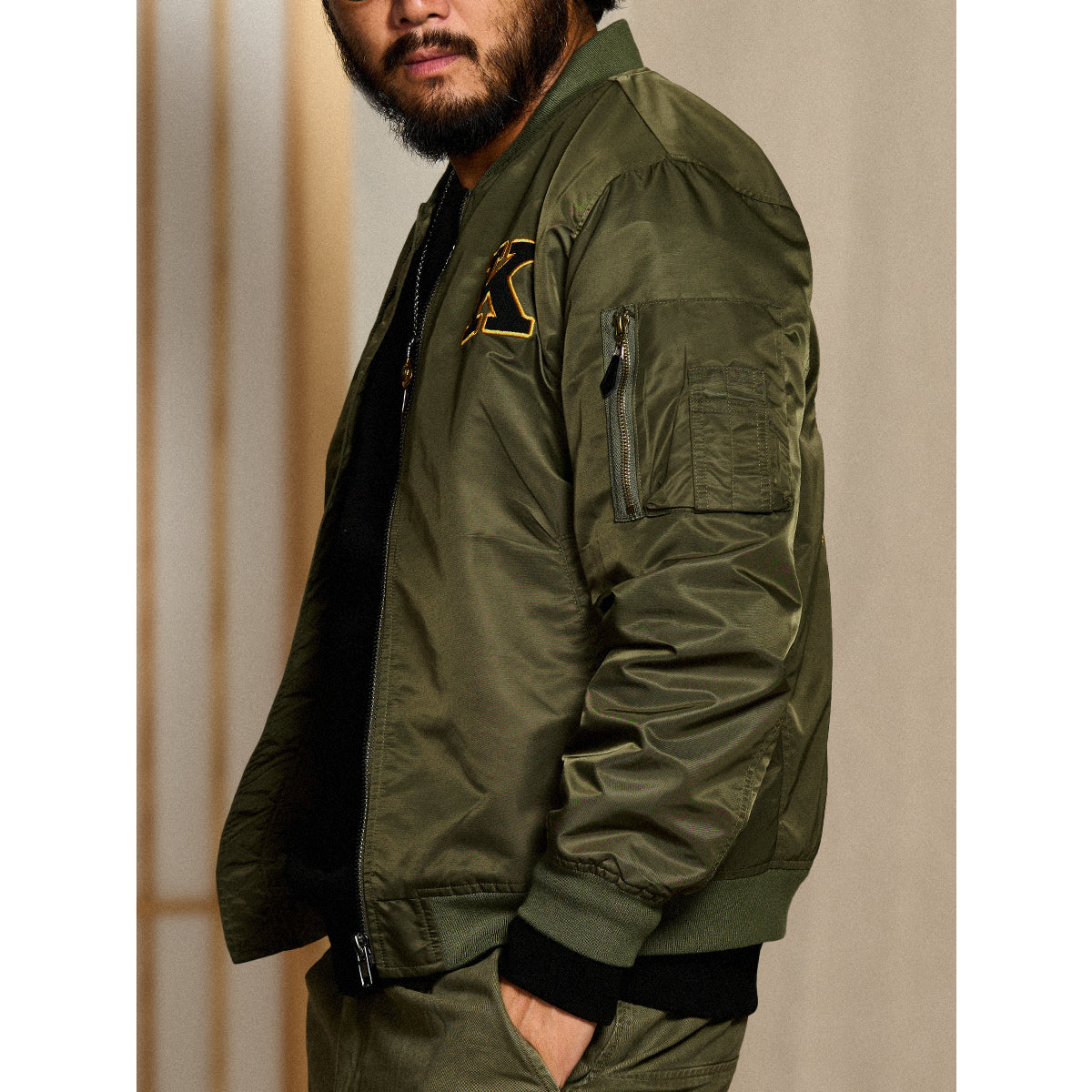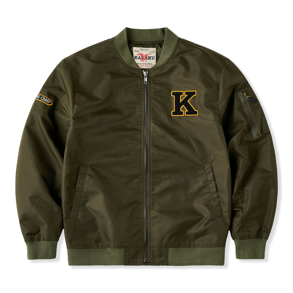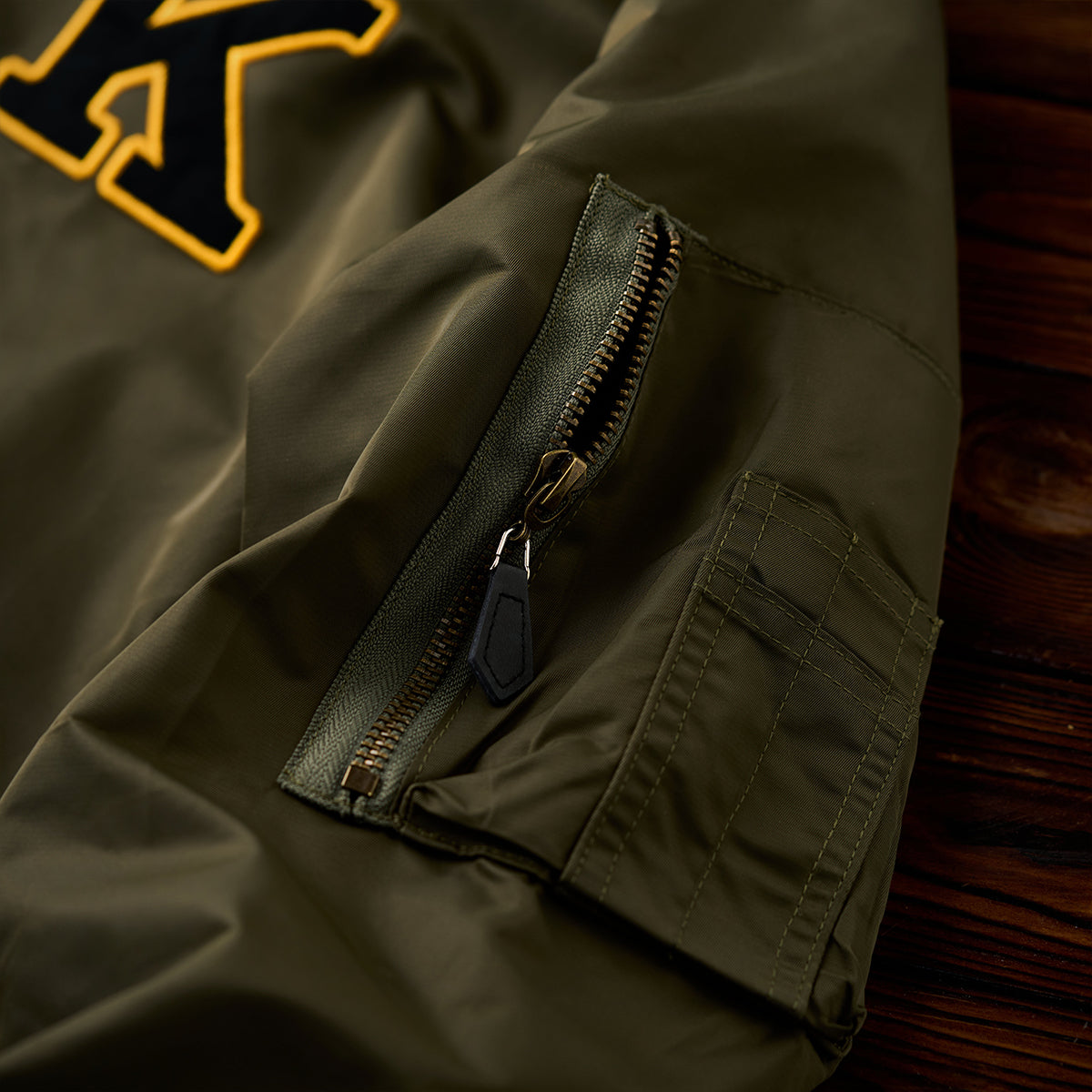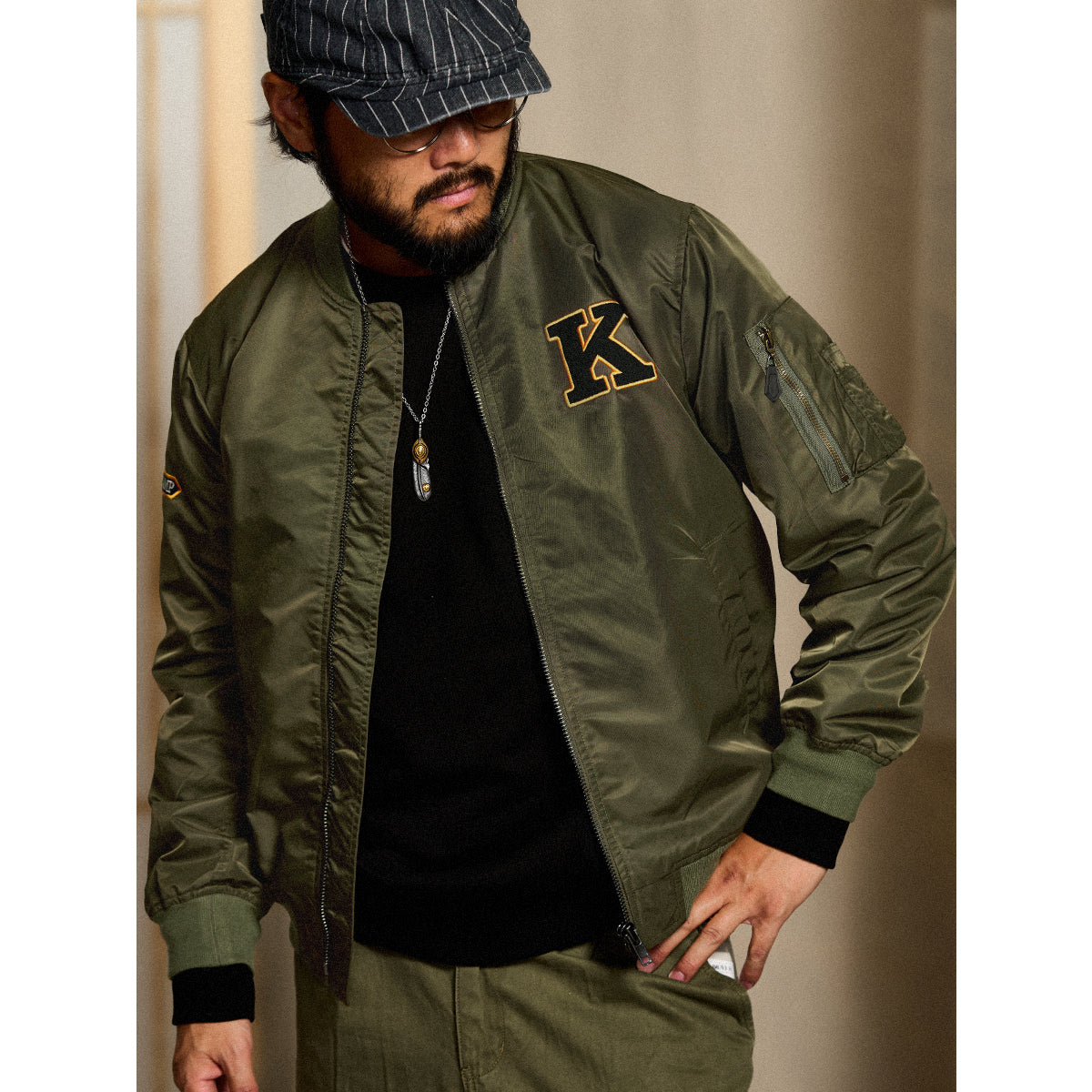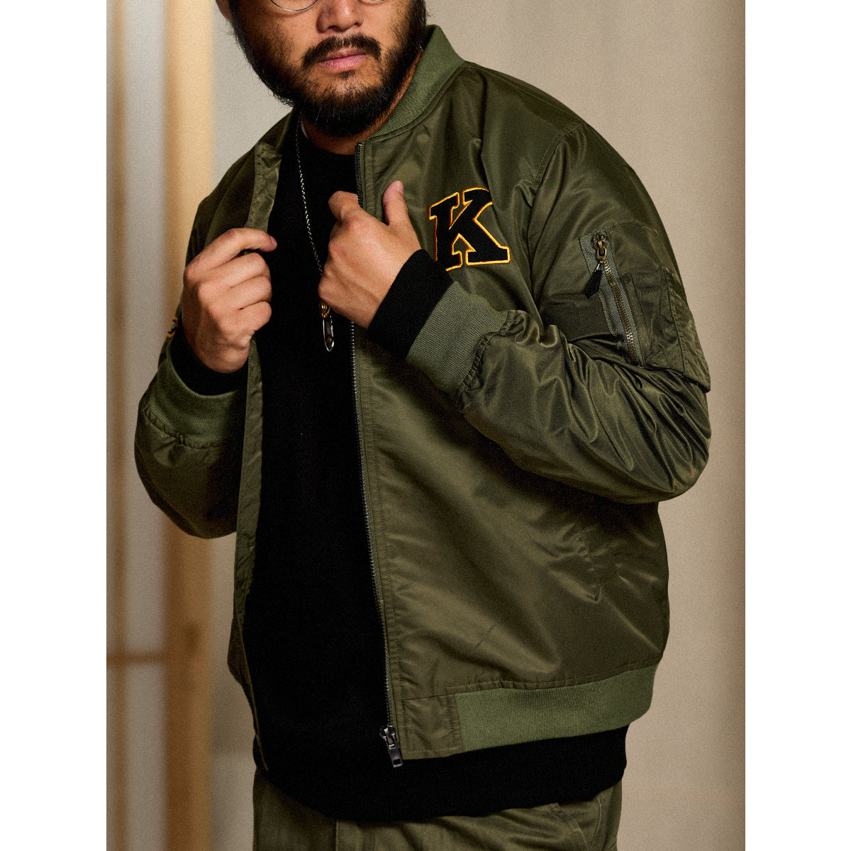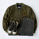 등판의 ‘인디언 추장 고양이’ 자수와 영문 로고로 개성을 살린 플라이트 자켓으로, 짧은 기장과 리브 처리된 밑단·소매가 경쾌한 실루엣을 연출합니다.