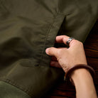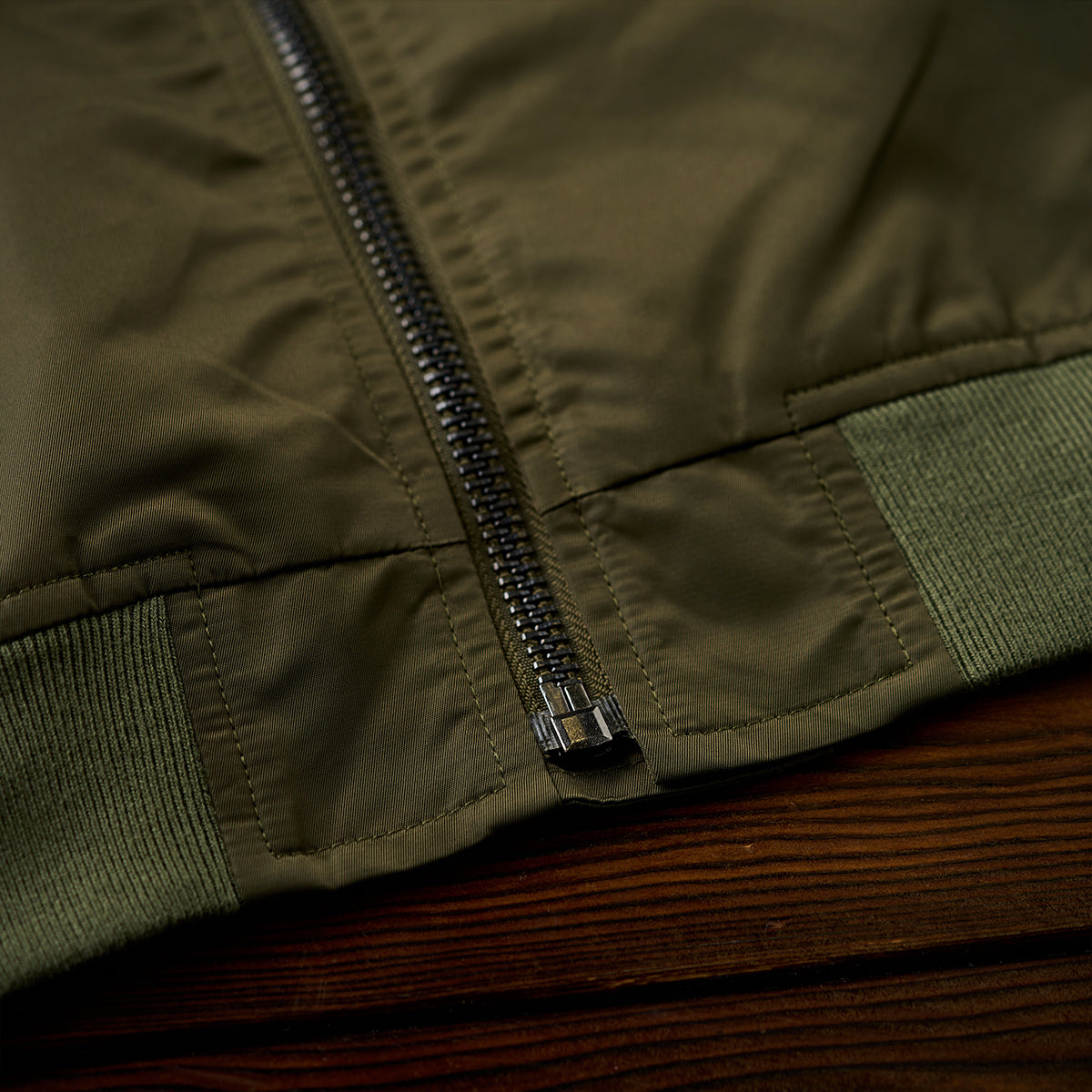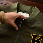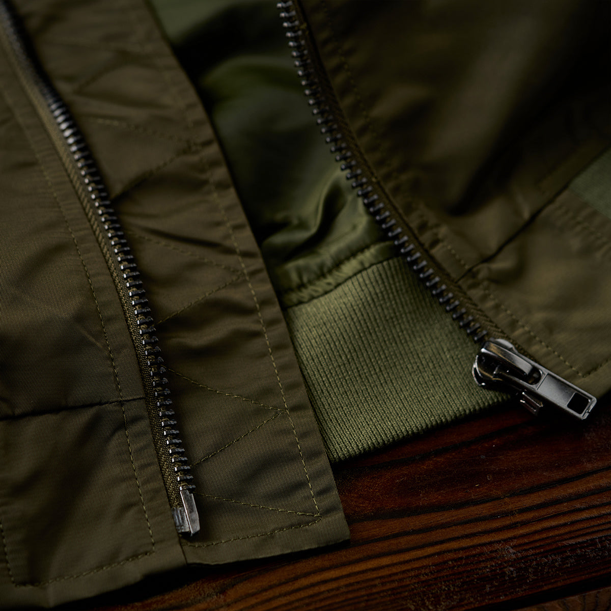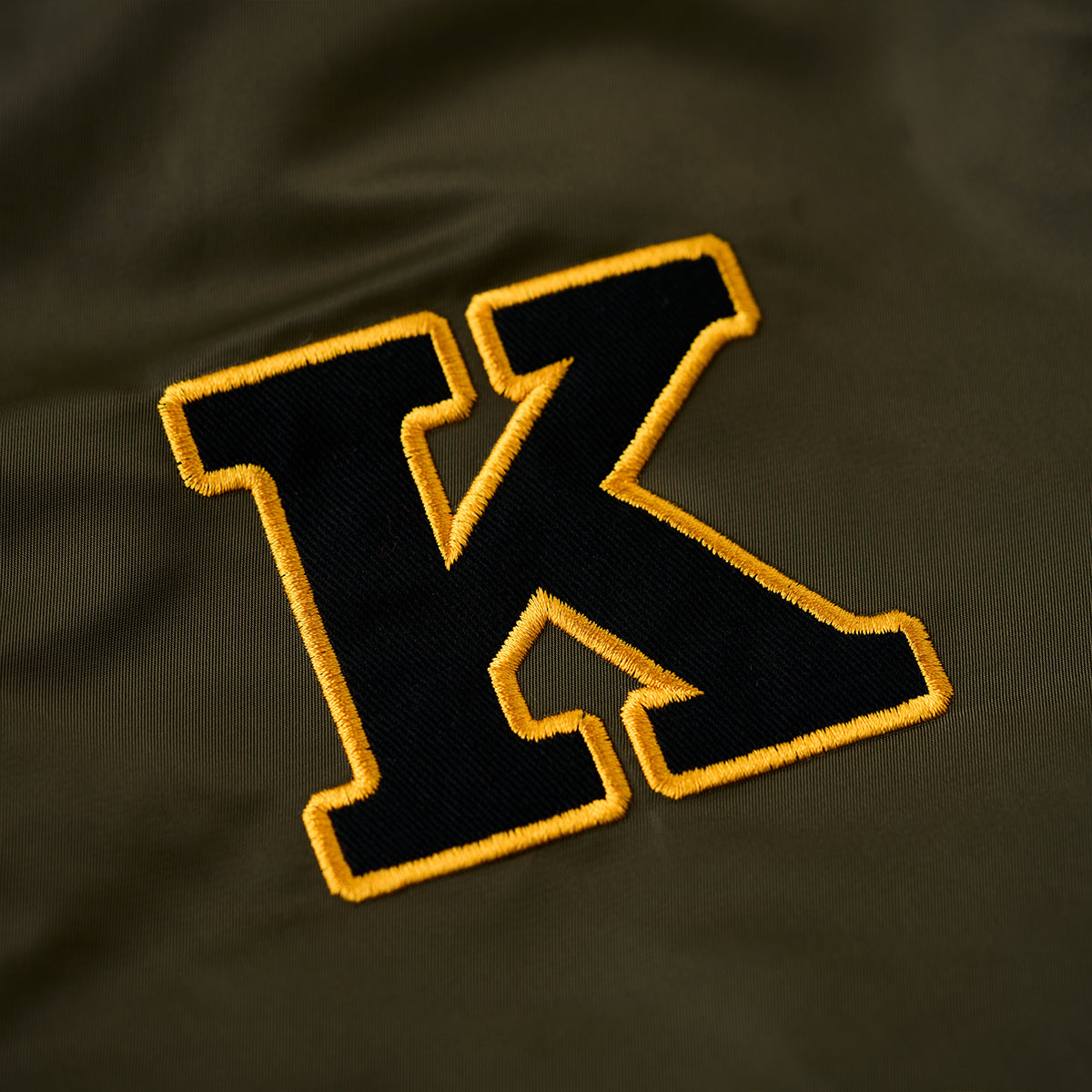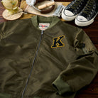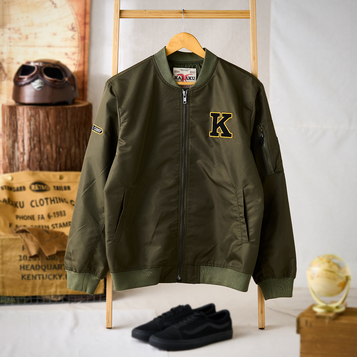 등판의 ‘인디언 추장 고양이’ 자수와 영문 로고로 개성을 살린 플라이트 자켓으로, 짧은 기장과 리브 처리된 밑단·소매가 경쾌한 실루엣을 연출합니다.