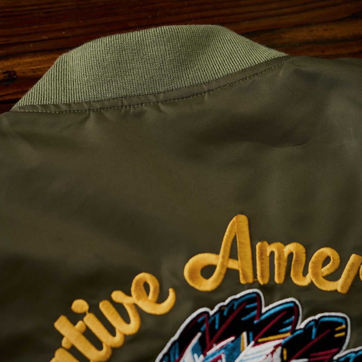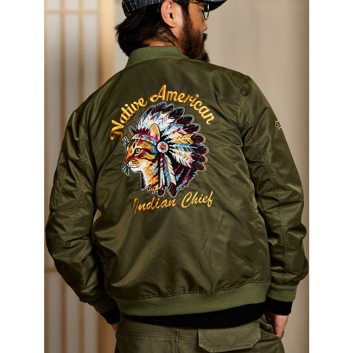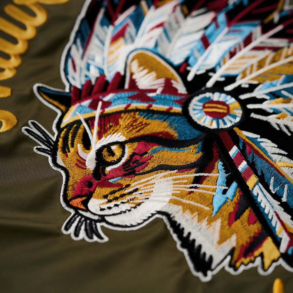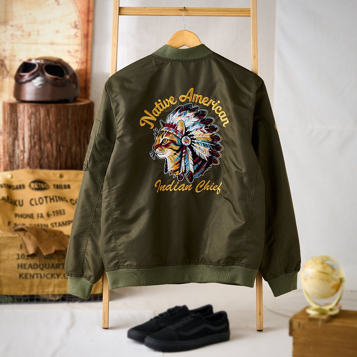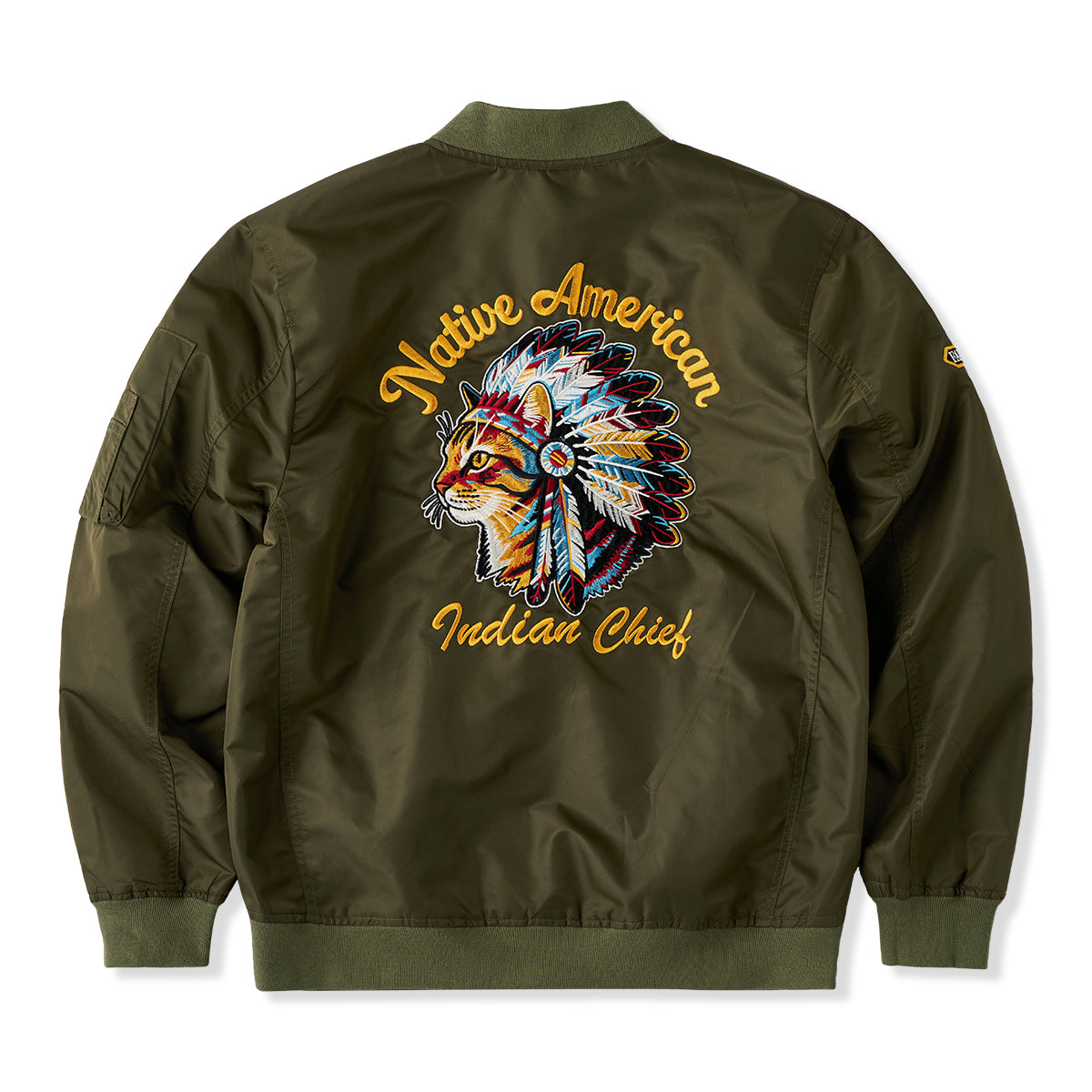 「인디언 추장 고양이」뒷면 자수 견장 장착 플라이트 자켓