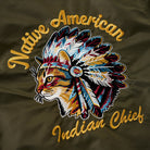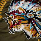 등판의 ‘추장 고양이’ 자수와 “Native American Indian Chief(북미 원주민 추장)” 영문 로고가 돋보이는 독창적이고 유머러스한 디자인입니다.