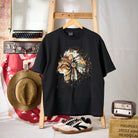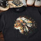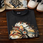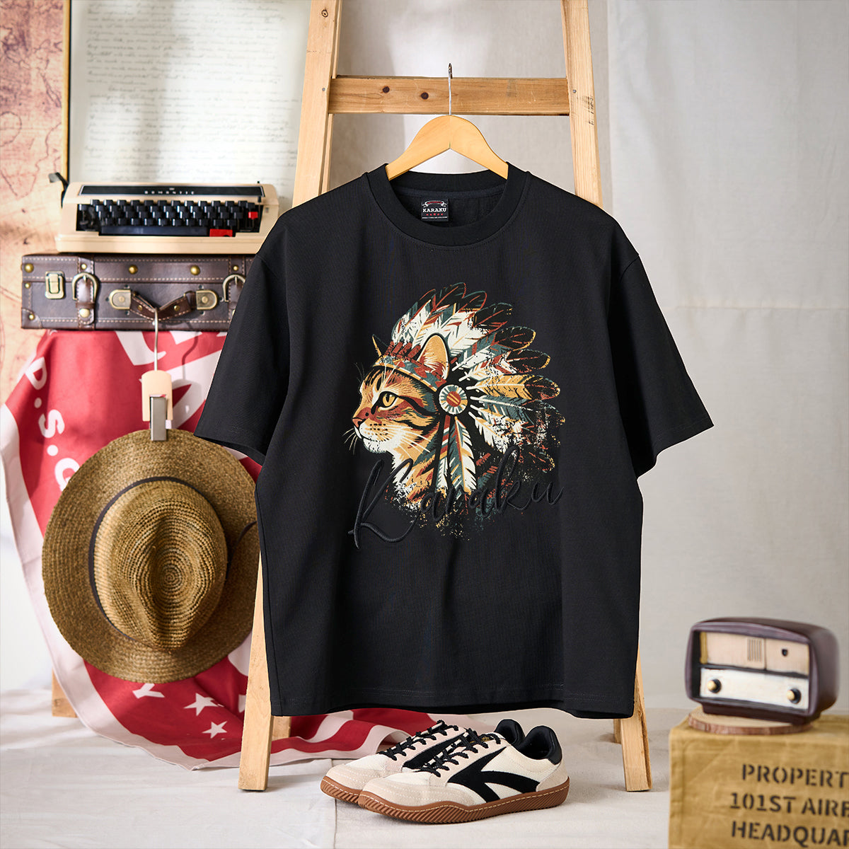 유머러스한 인디언 추장 고양이 프린트와 고급 코튼 소재가 돋보이는, 편안하면서도 스타일리시한 티셔츠입니다.