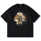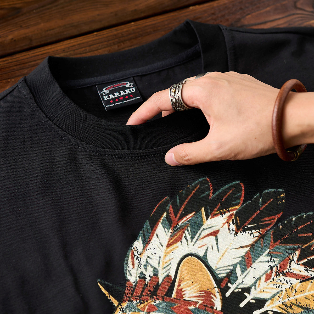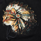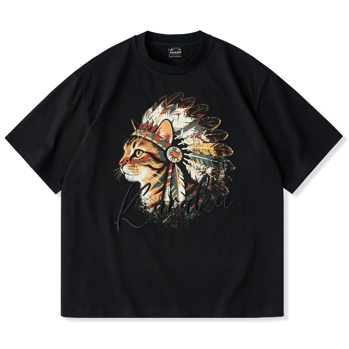 「인디언 추장 고양이」프린트 및 Karaku 자수 면 티셔츠
