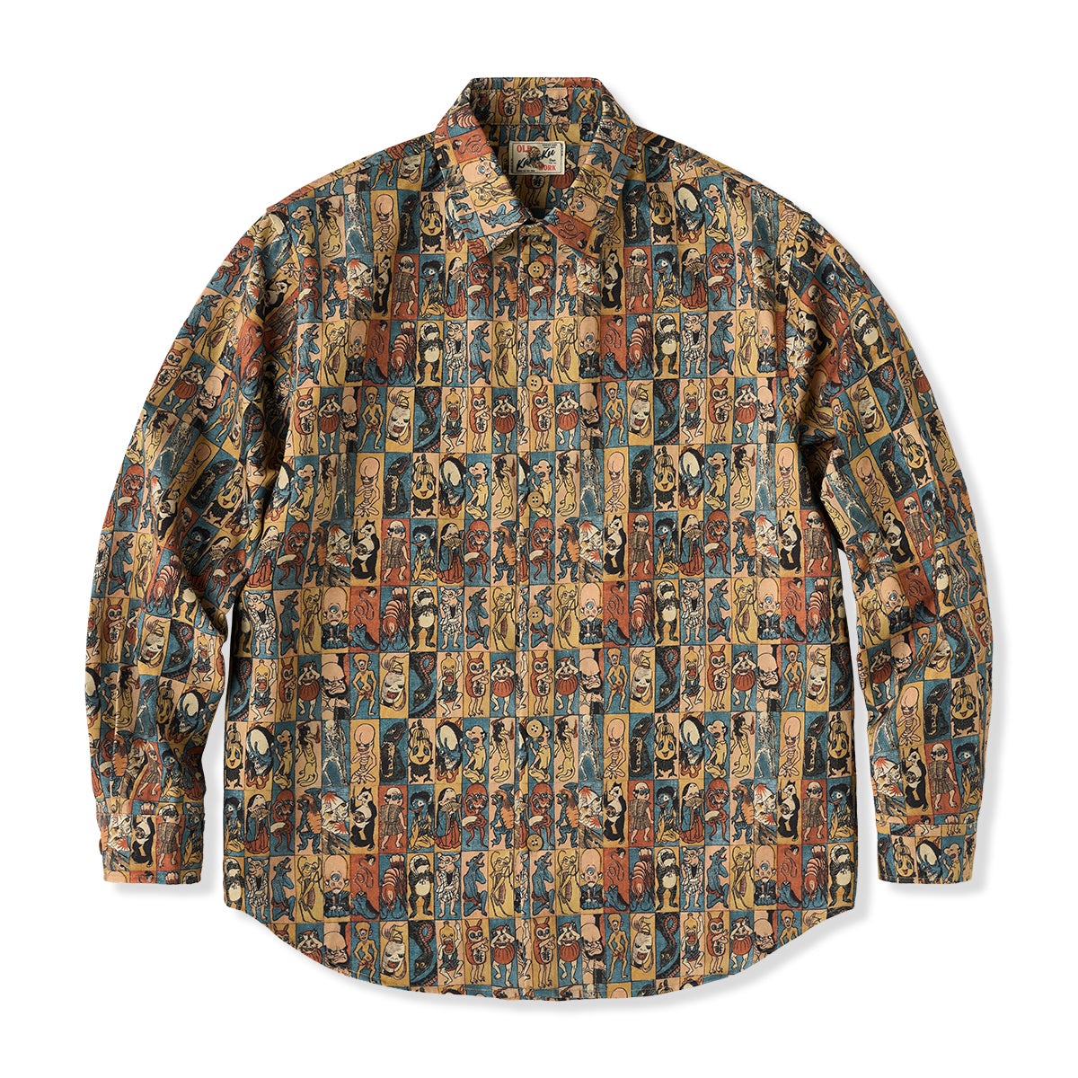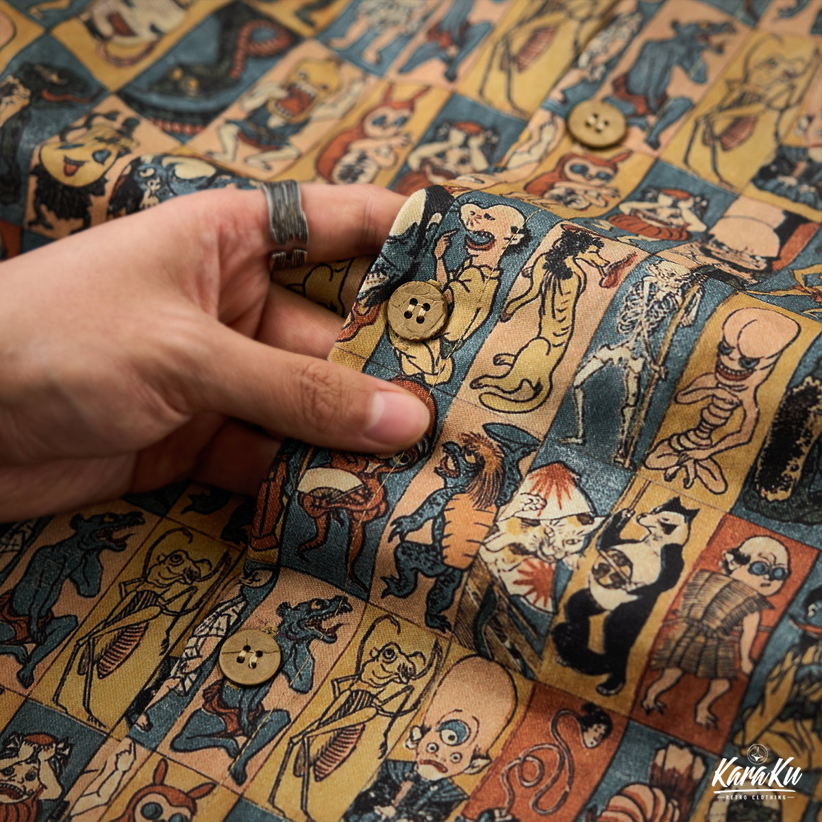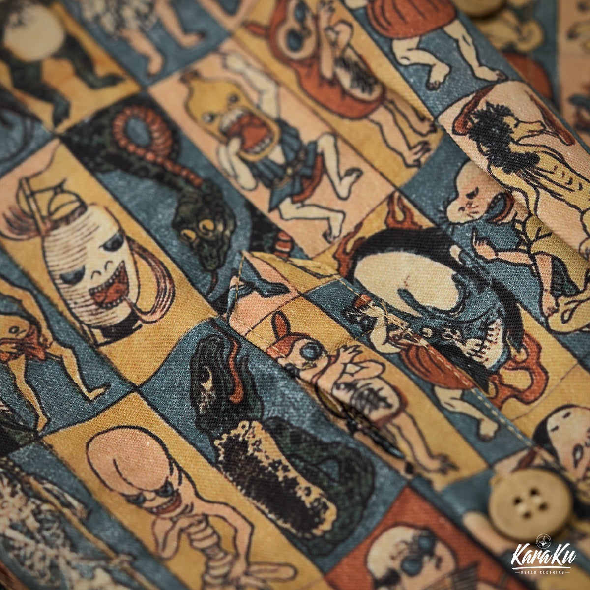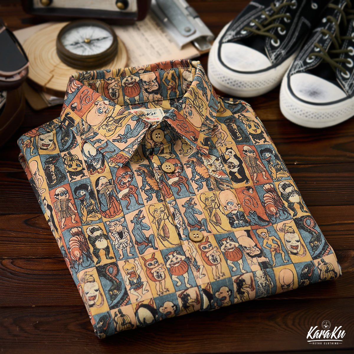 Woodblock Print "Yokai Encyclopedia" Ukiyo-e Cotton Long Sleeve Shirt