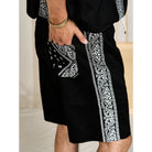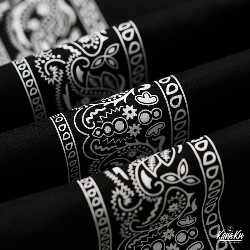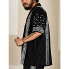 The design is filled with a pattern inspired by petal-shaped plants in a paisley print. The rich drape and relaxed silhouette are very trendy.