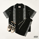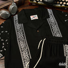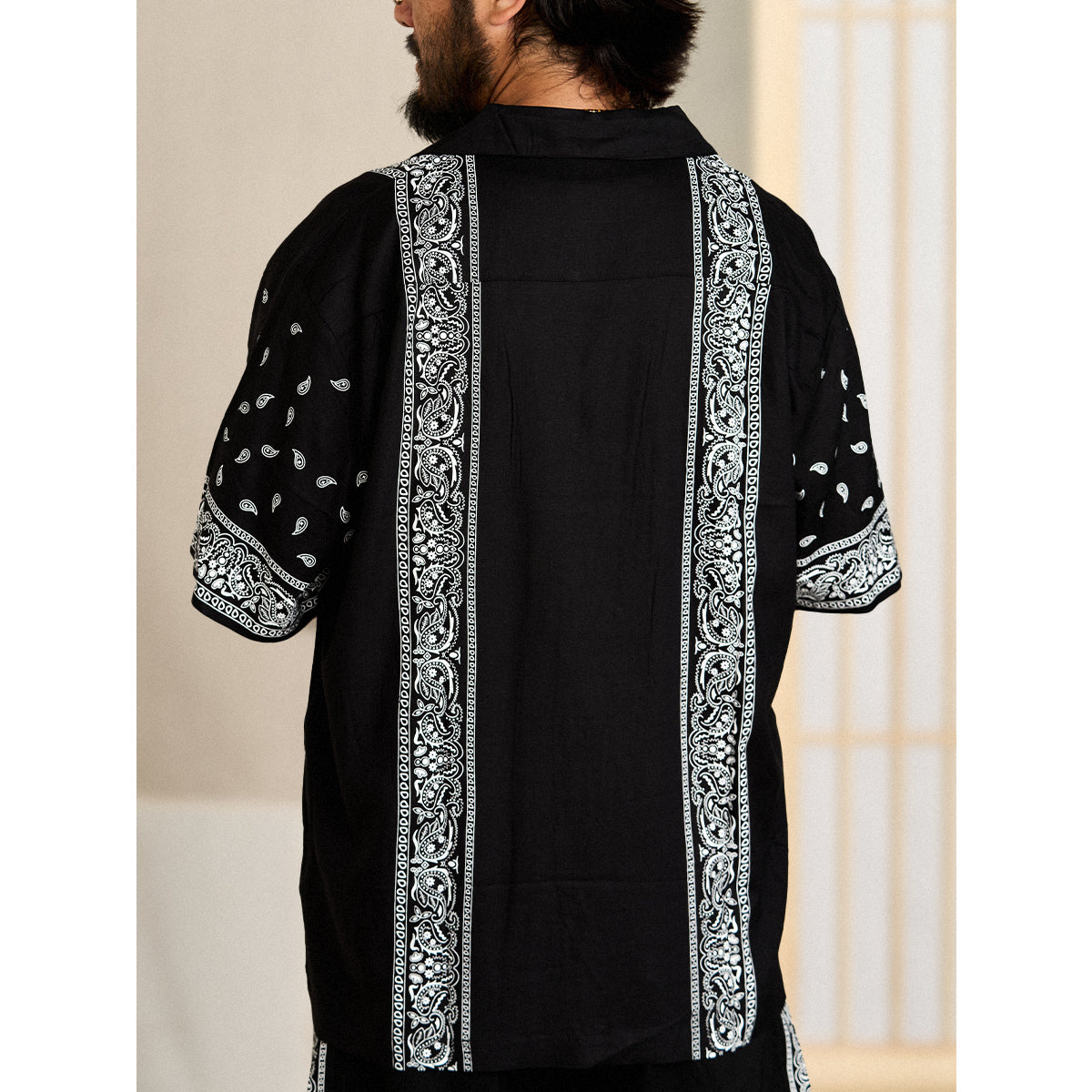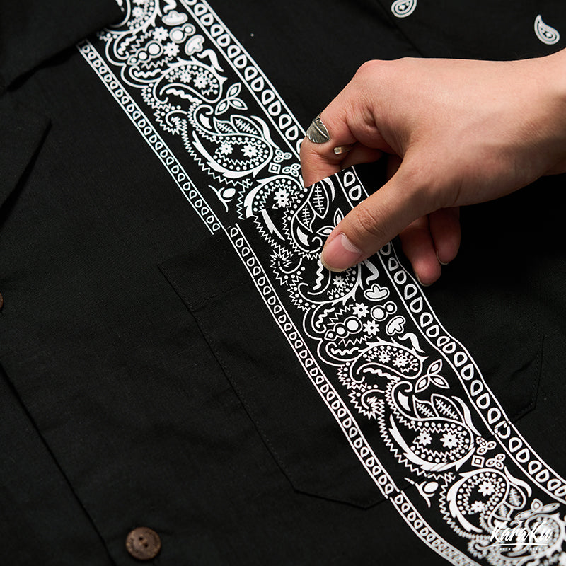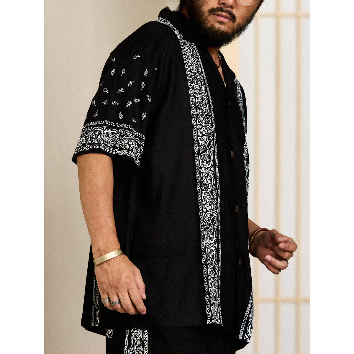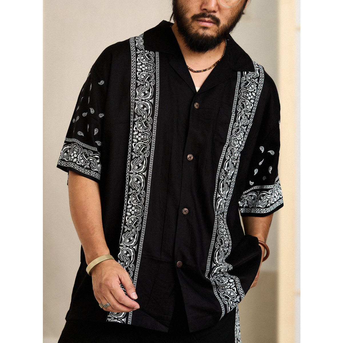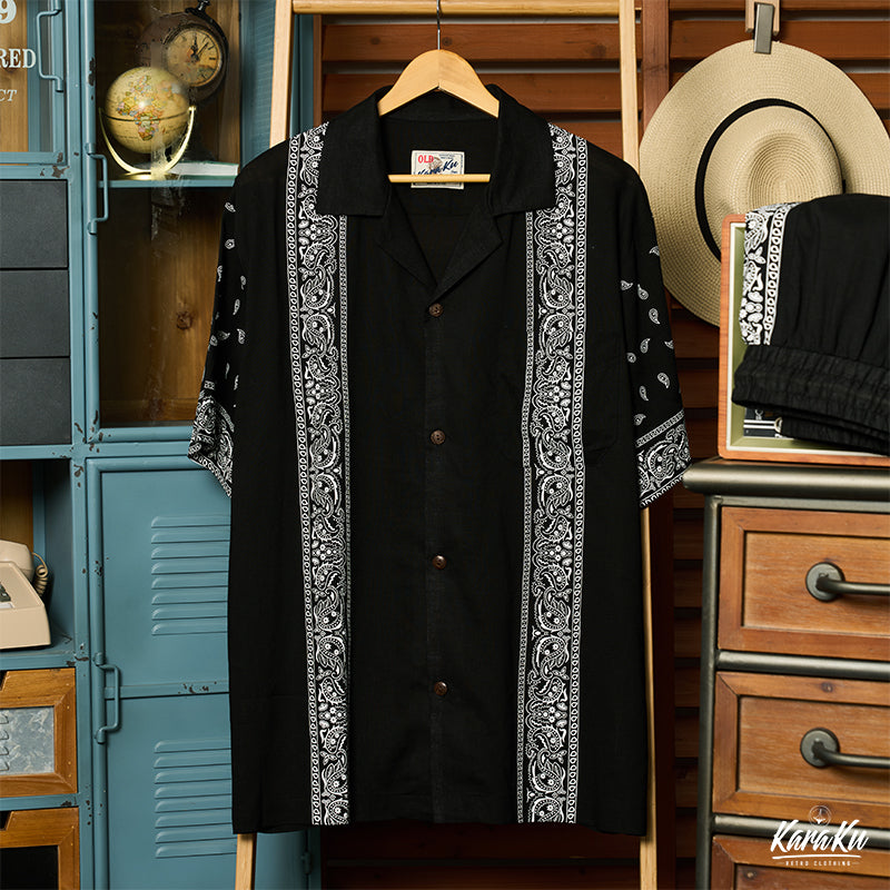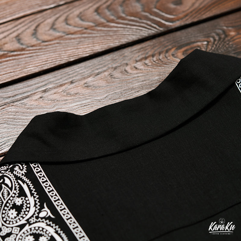 The top features a sophisticated Cuban collar that adds three-dimensionality to the outfit, and the sleeves are cut with space for easy movement. There is a flap pocket on the left chest to prevent your small items from falling.