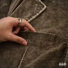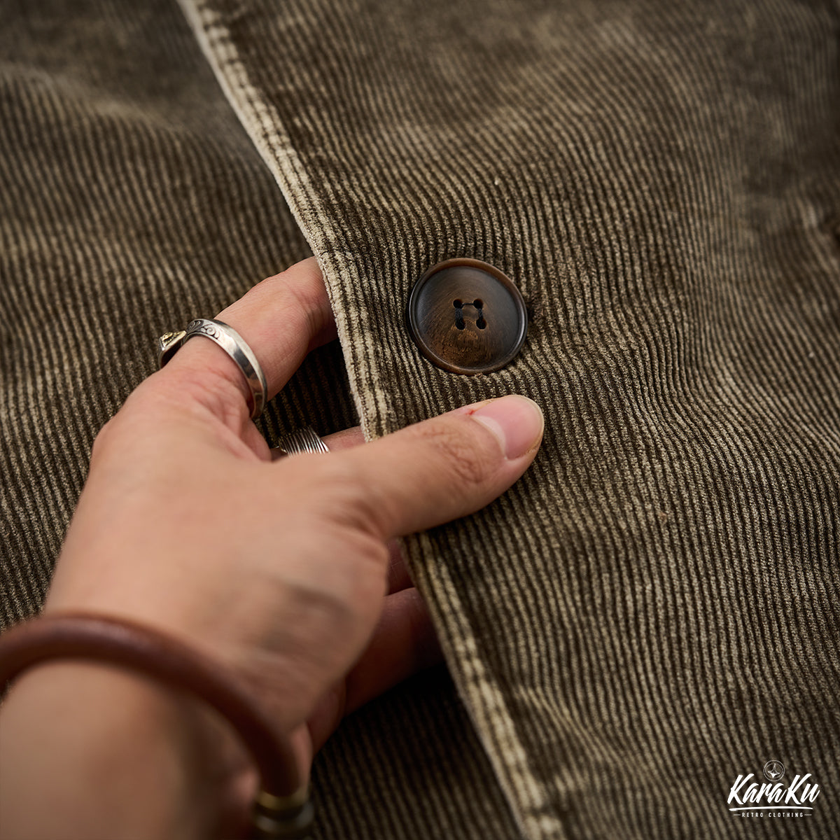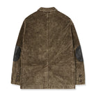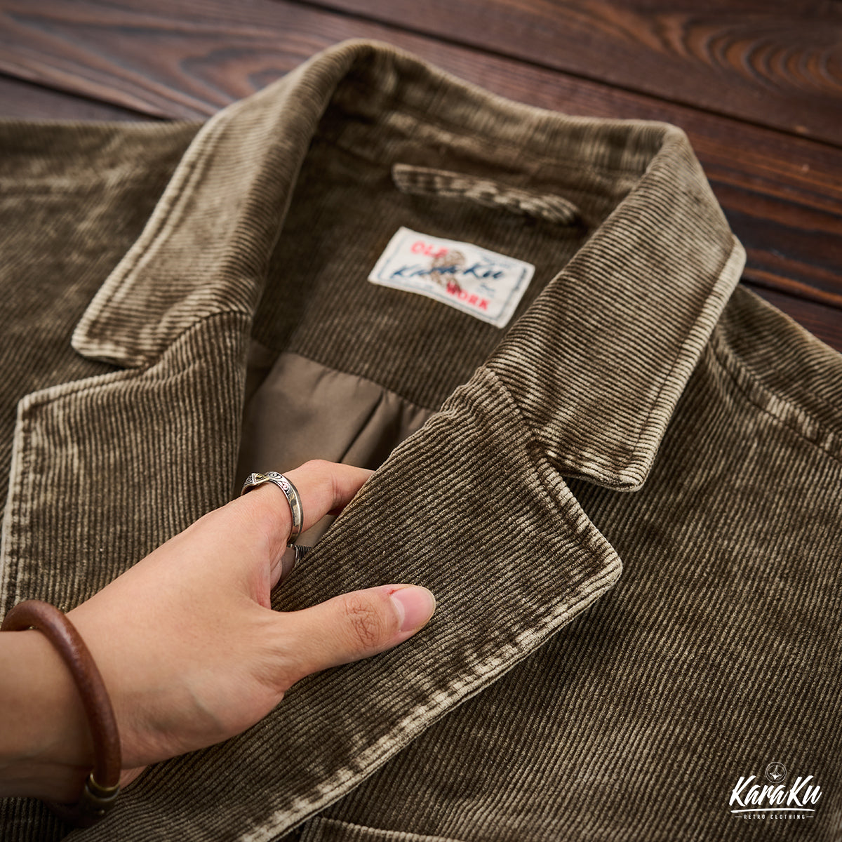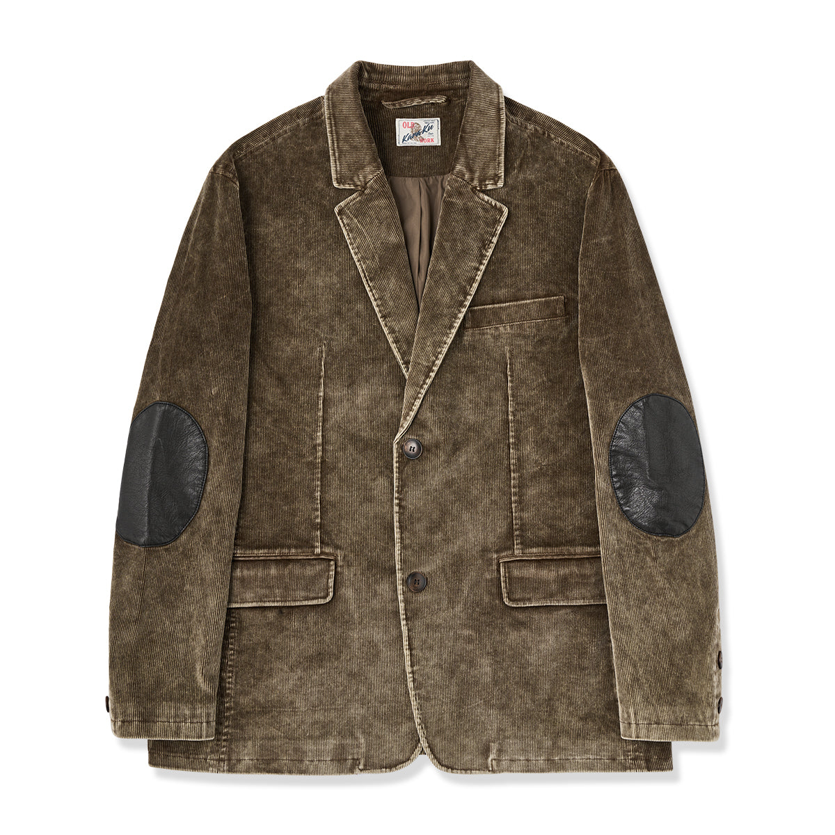 The washed corduroy tailored jacket has a luxurious feel, featuring leather patches and a simple design. It is suitable for fall and winter, and can be worn with both casual and semi-formal styles.
