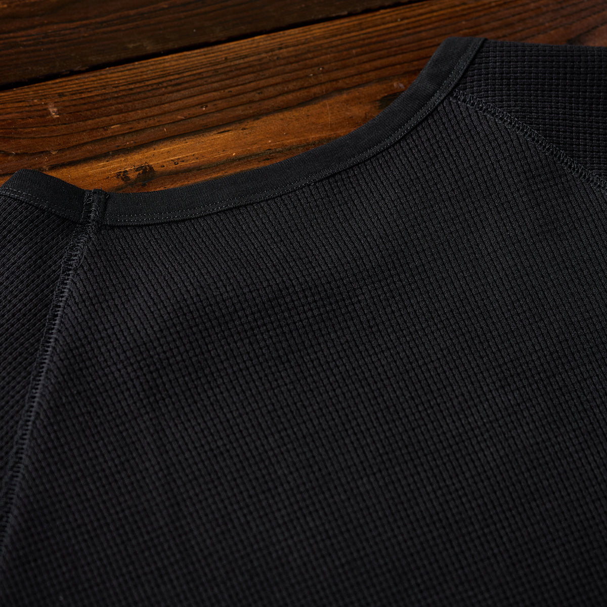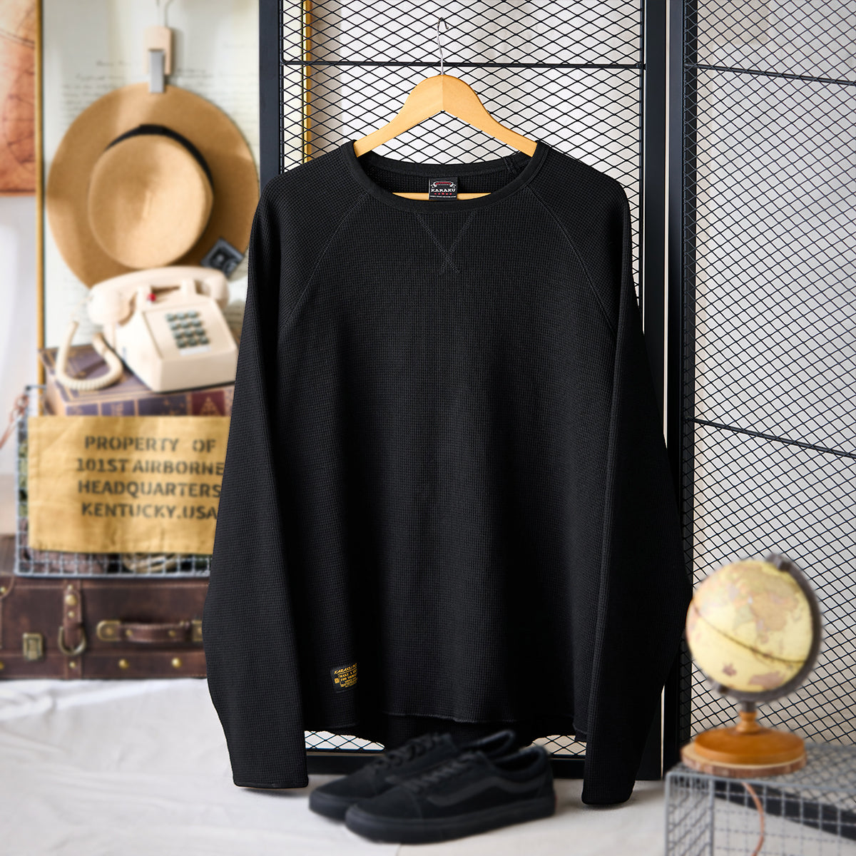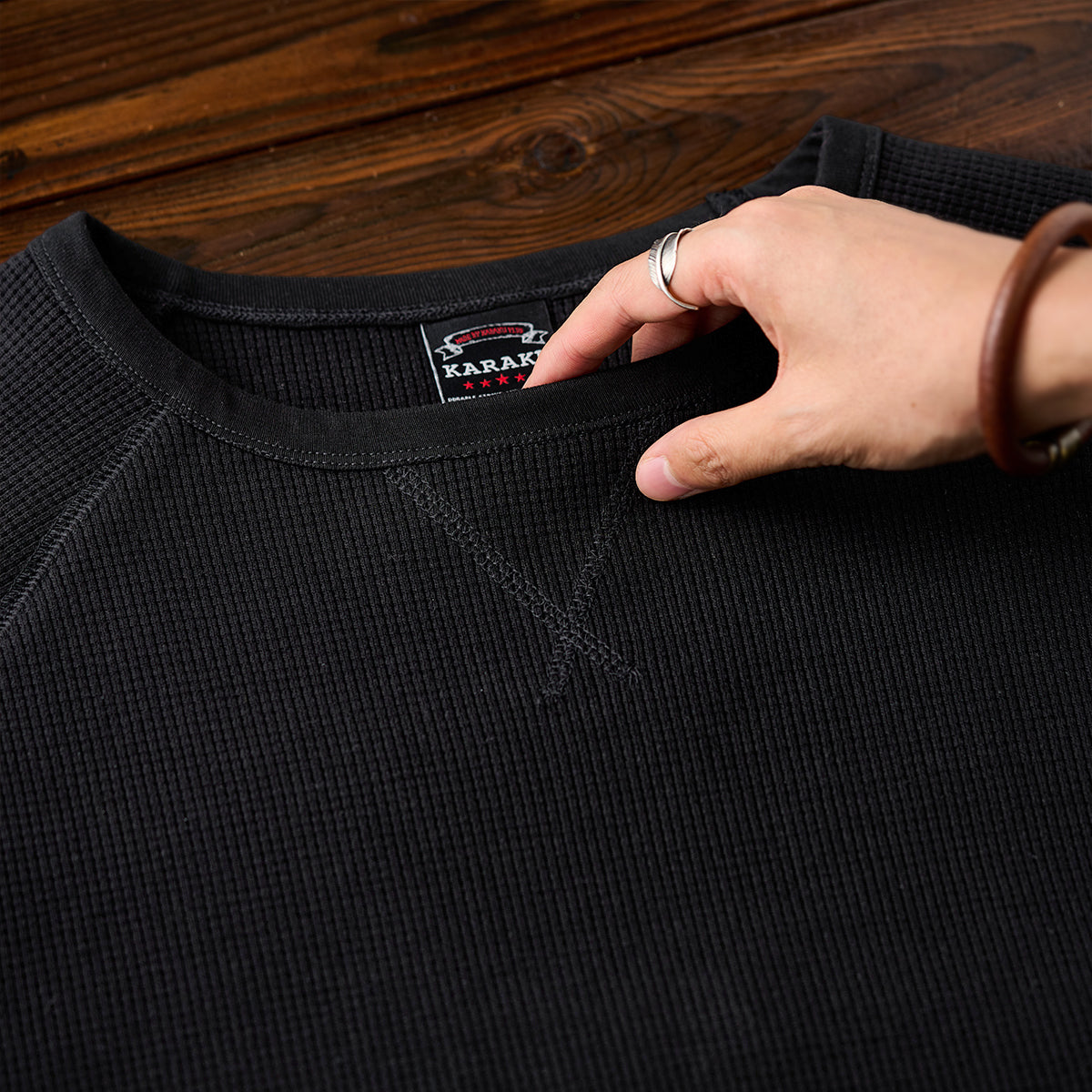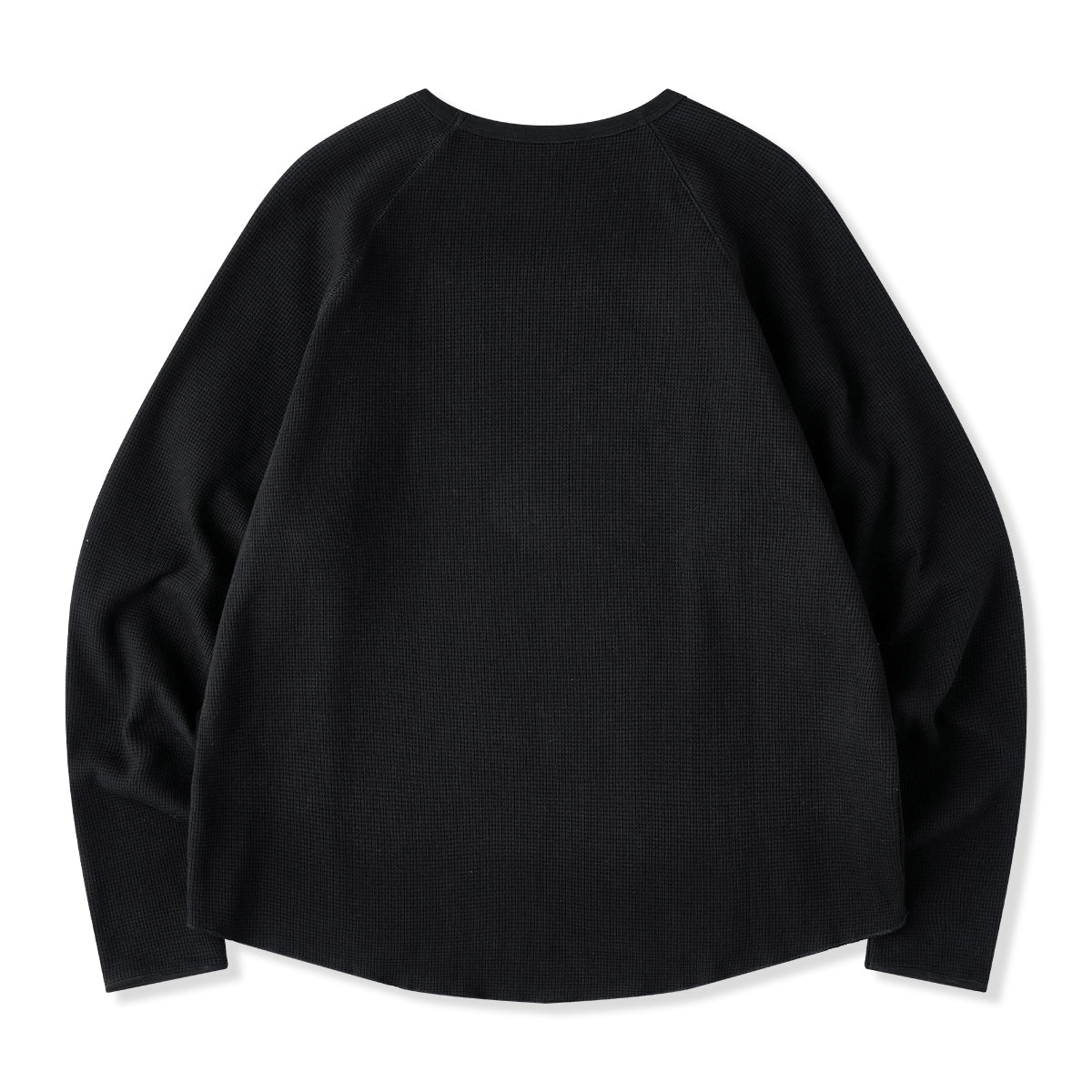 V 거셋 와플 래글런 슬리브 롱 티셔츠