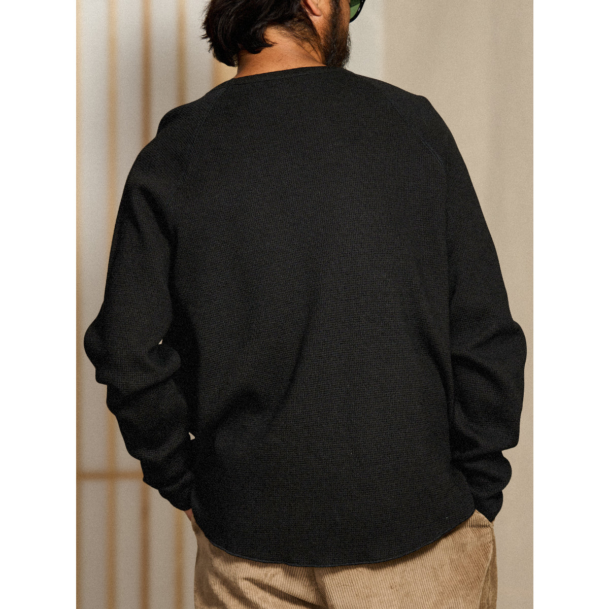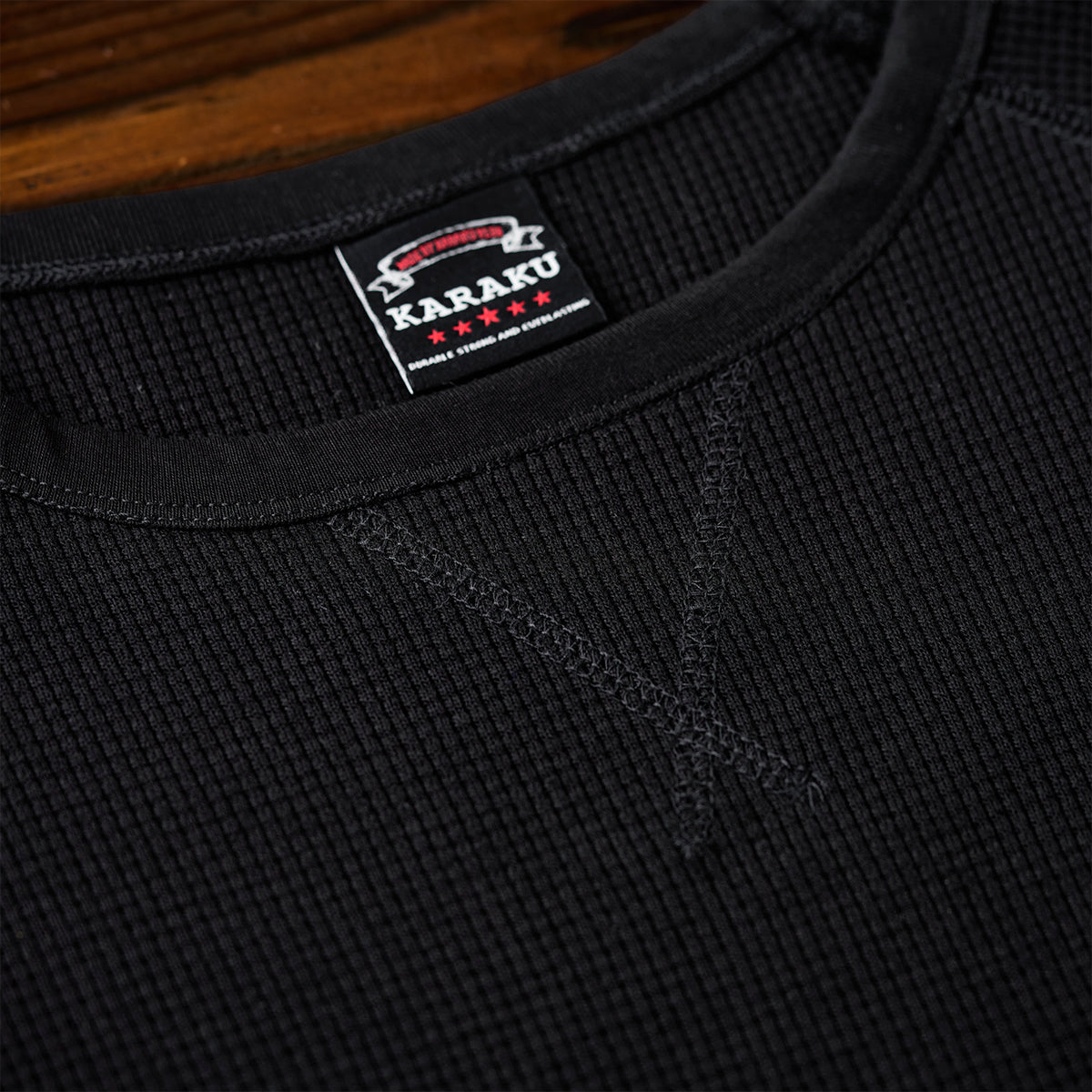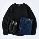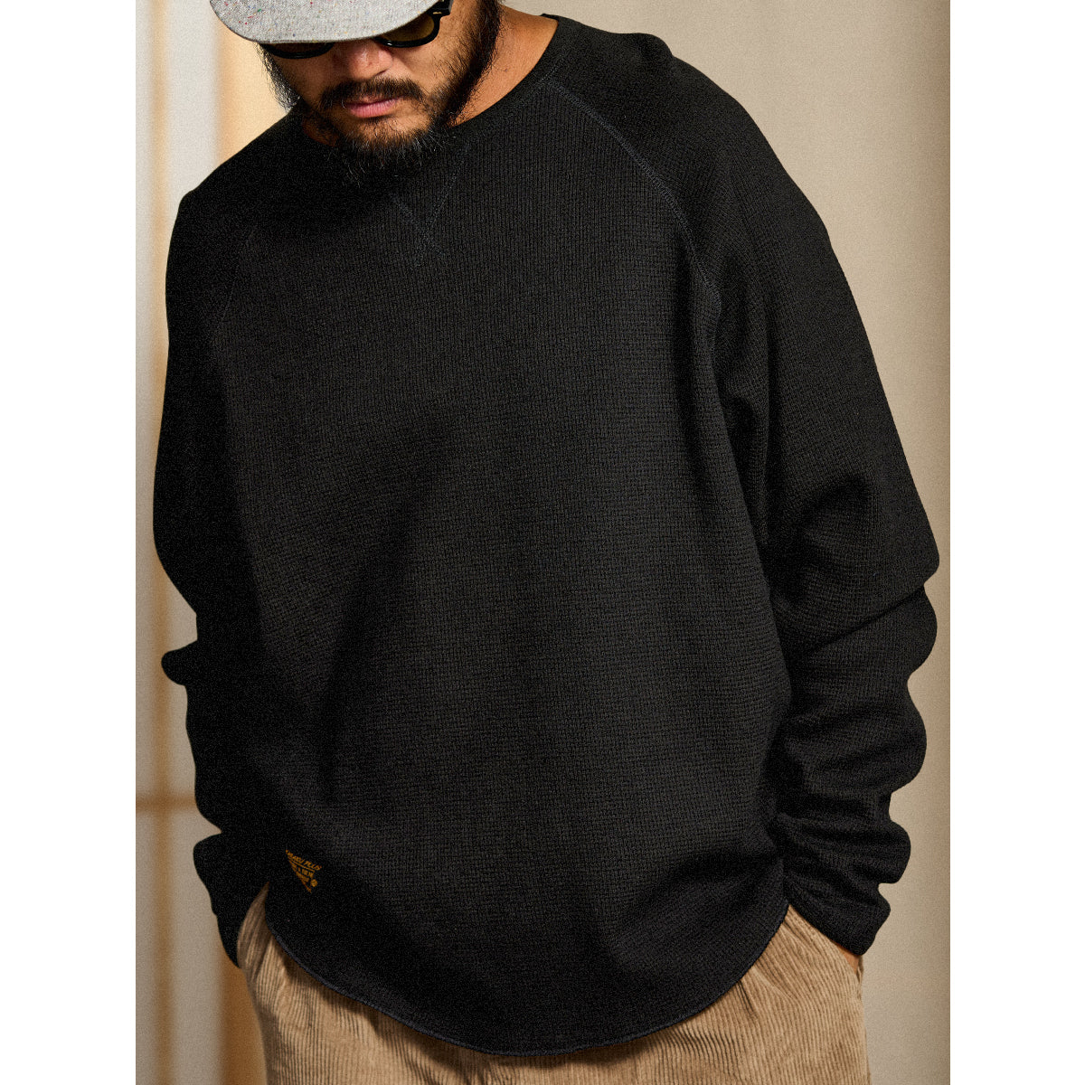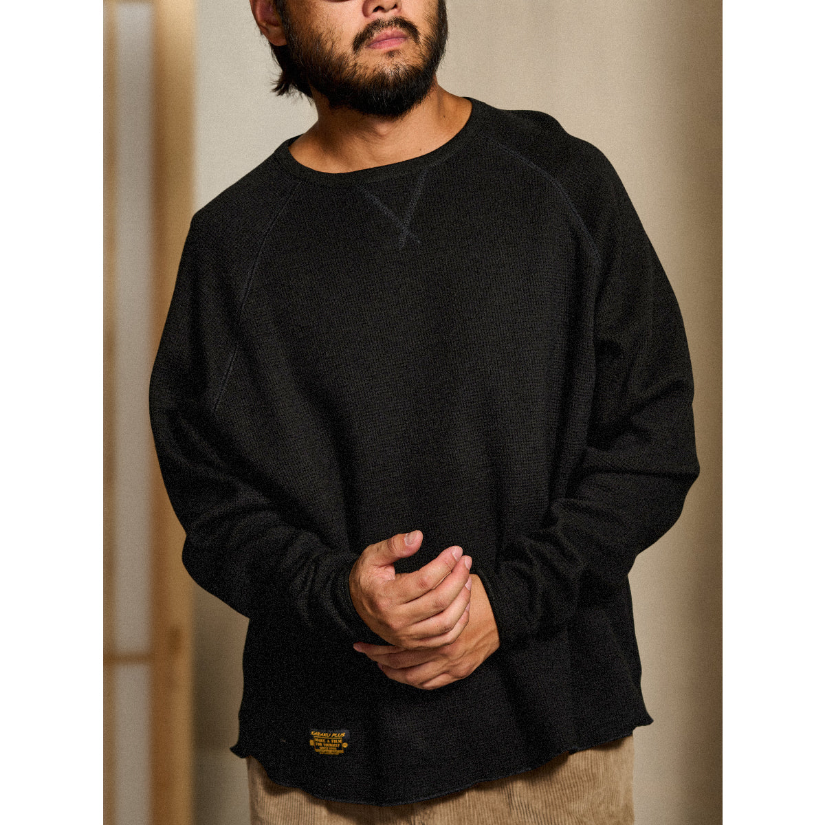 V 거셋 와플 래글런 슬리브 롱 티셔츠