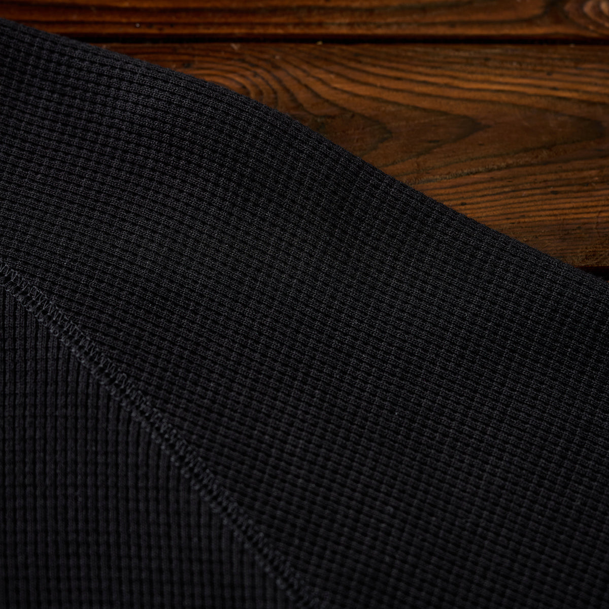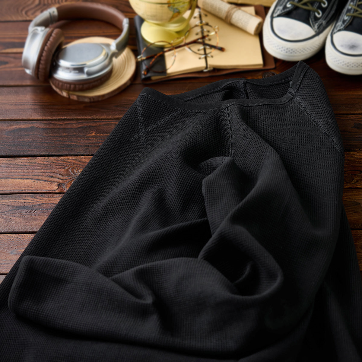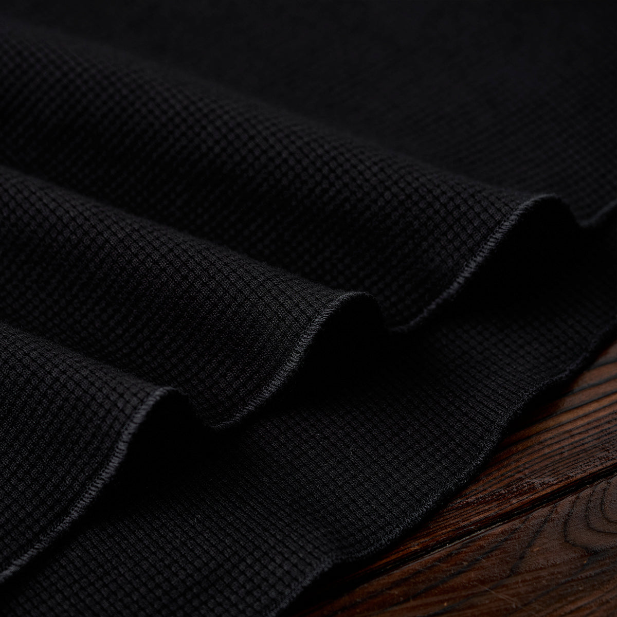 표면이 울퉁불퉁하고 촘촘한 질감의 와플 원단으로 독특한 입체감과 부드러운 촉감을 제공하며, 통기성이 뛰어나 편안하고 쾌적하게 착용할 수 있습니다.