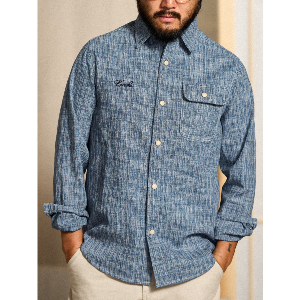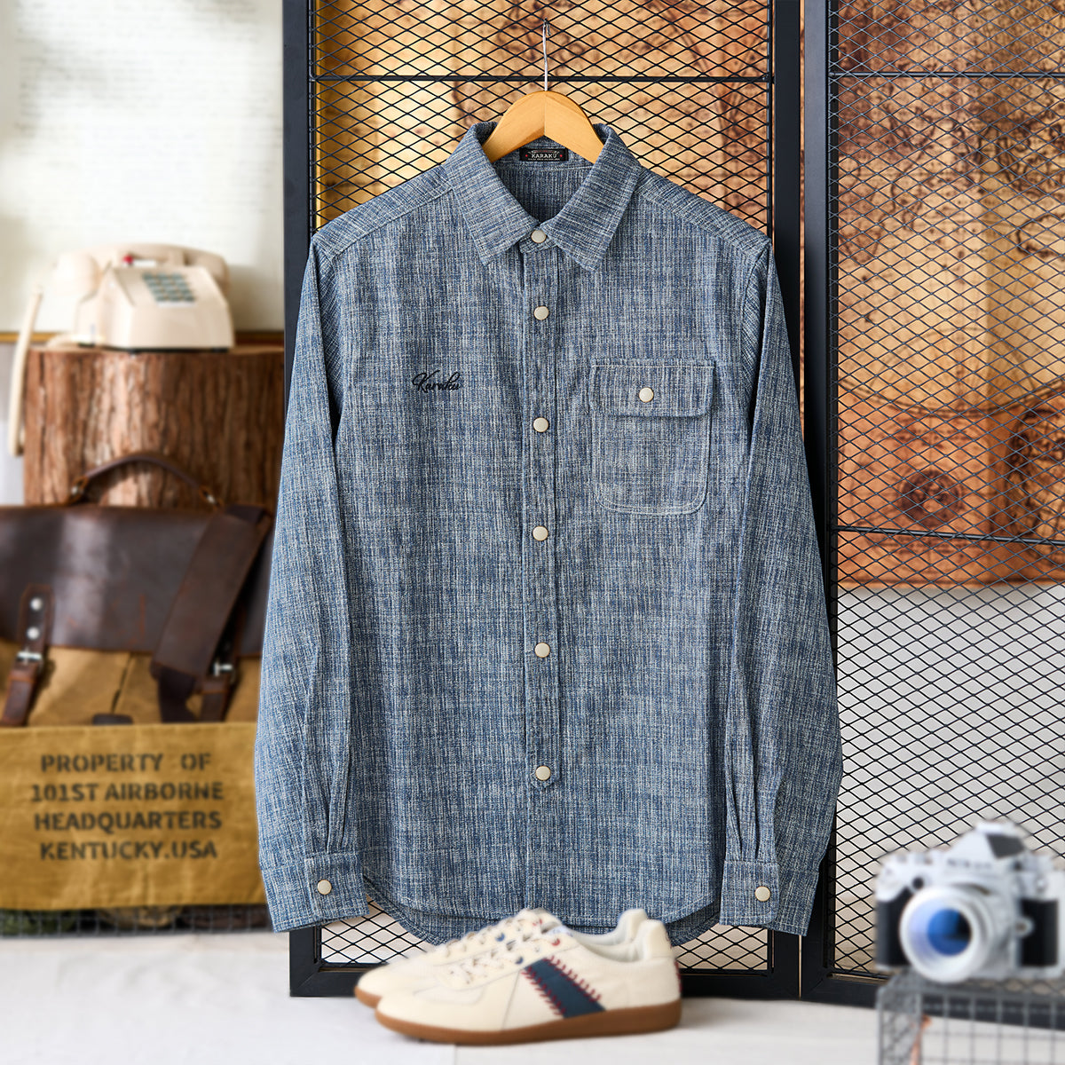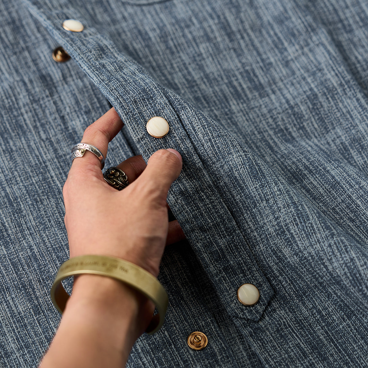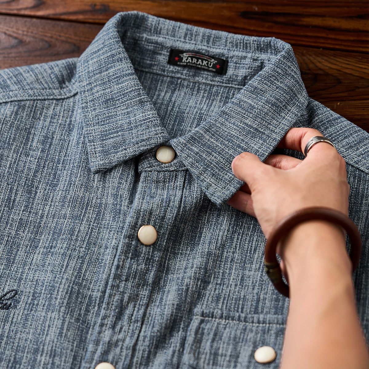 진주 단추「Karaku」자수 선염 워크 셔츠