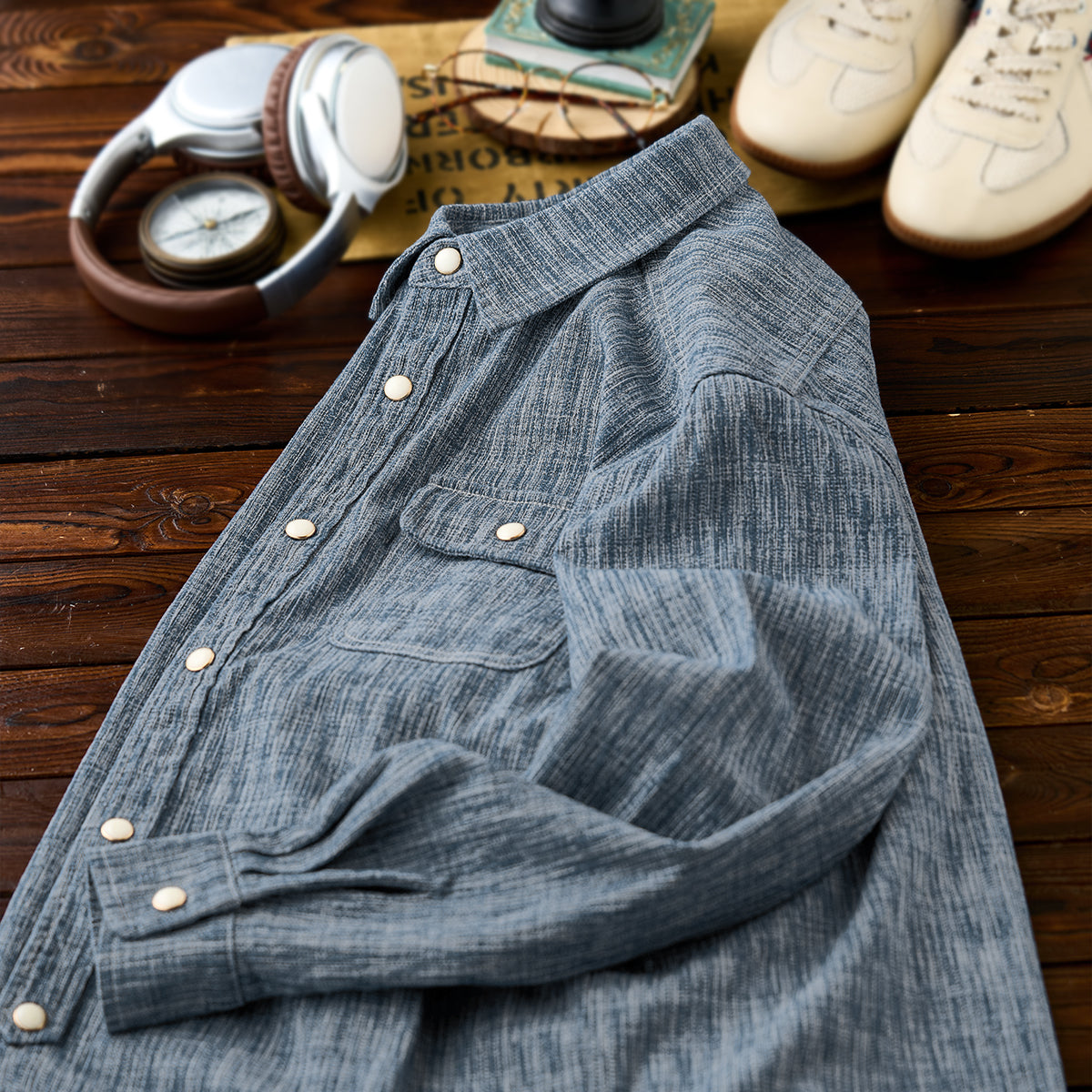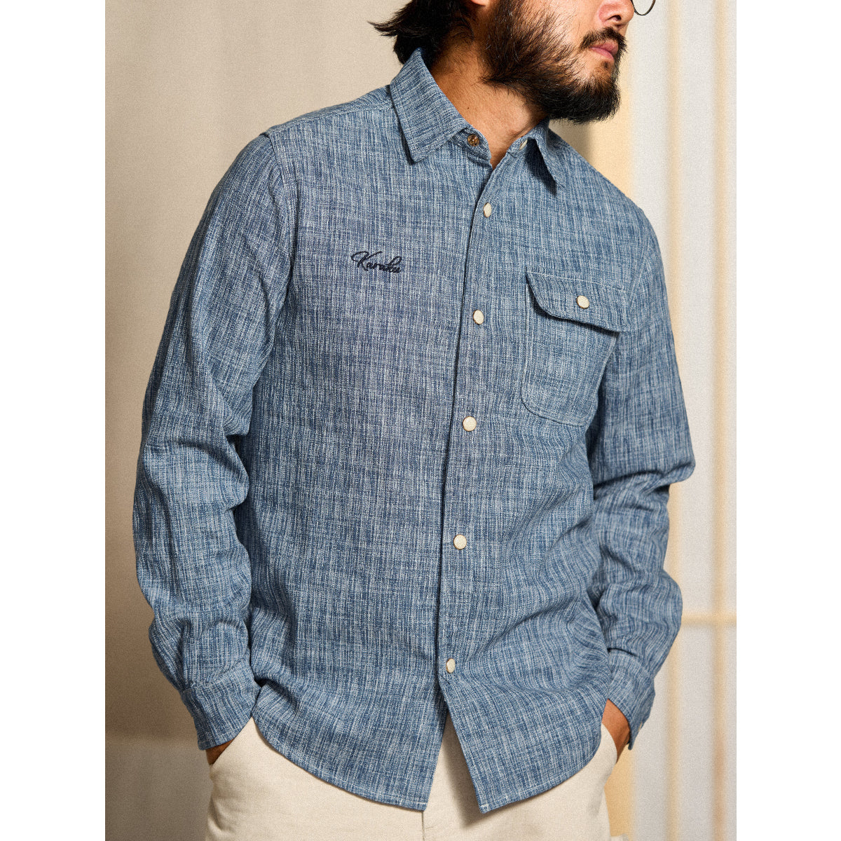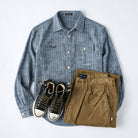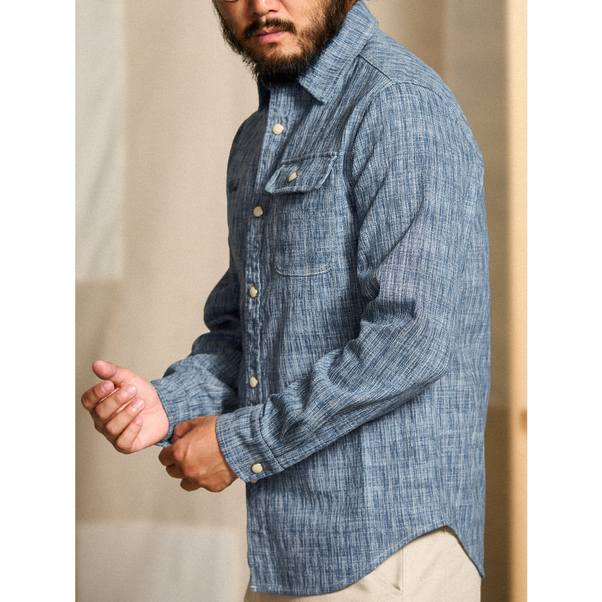 진주 단추「Karaku」자수 선염 워크 셔츠