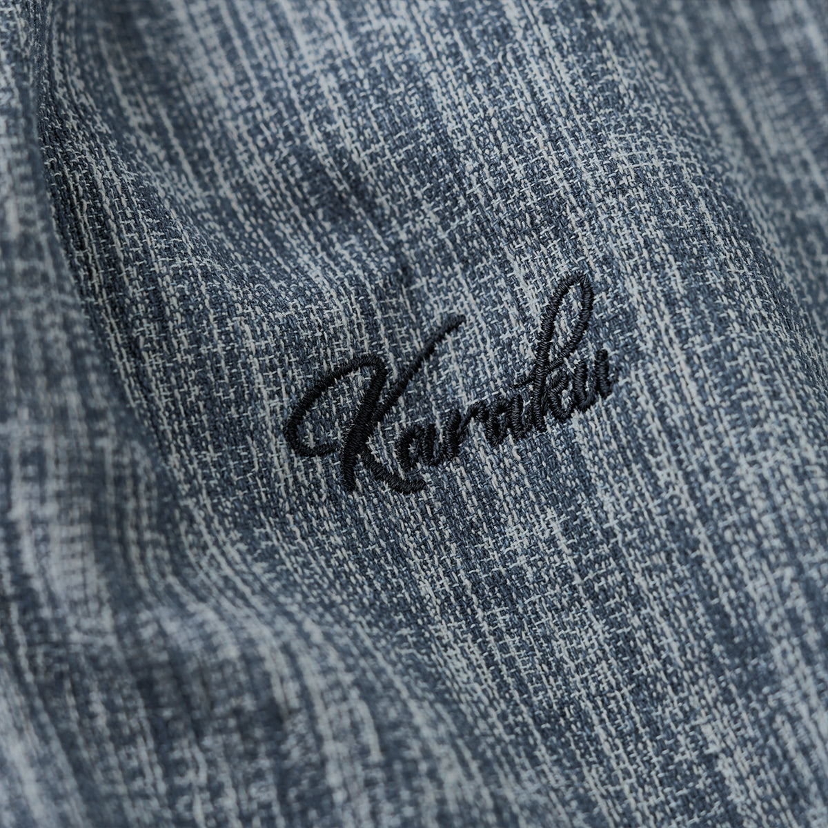 전통적인 워크웨어에 현대적인 감성을 더하고, 선염 원단과 ‘karaku’ 자수·진주모양 단추로 빈티지와 고급스러움을 동시에 구현했습니다.