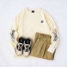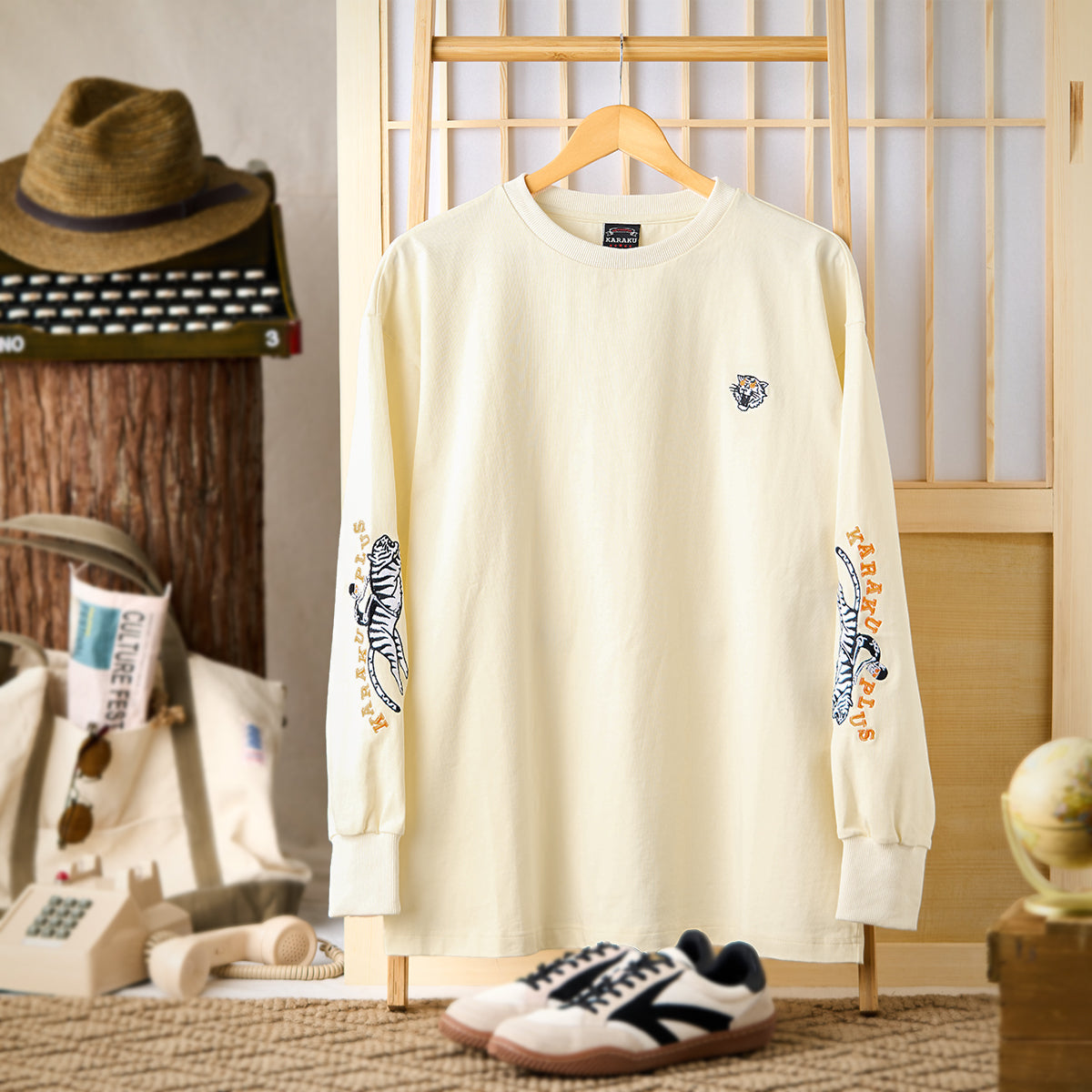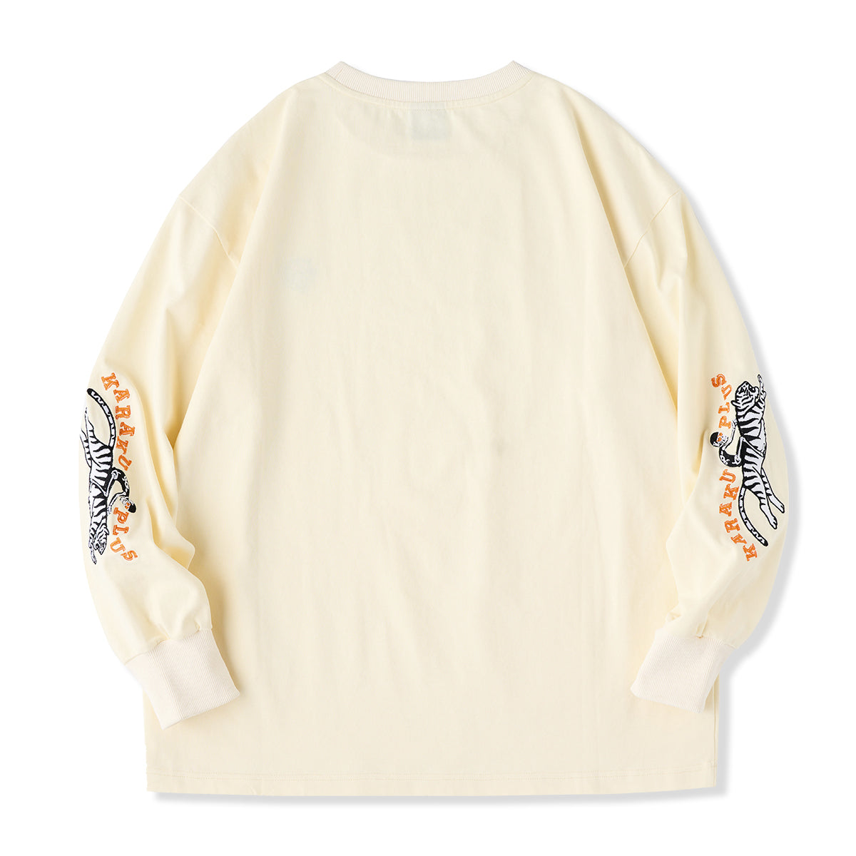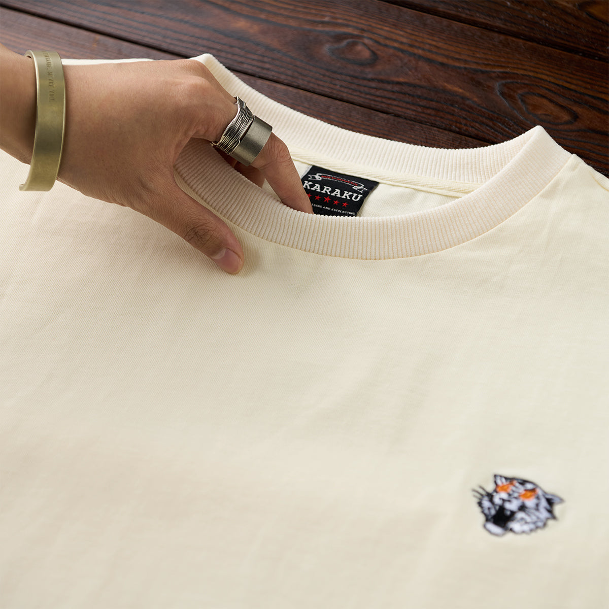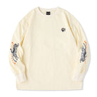 "Roaring Tiger and Skull Rider" Embroidered Cotton Long T-Shirt